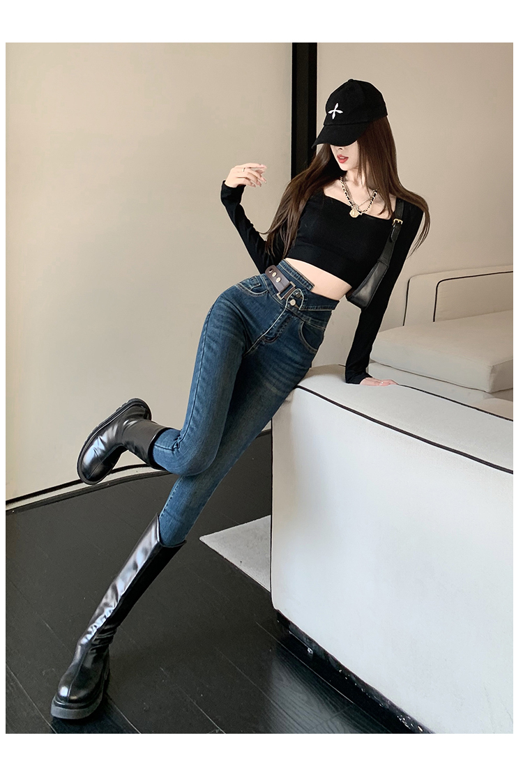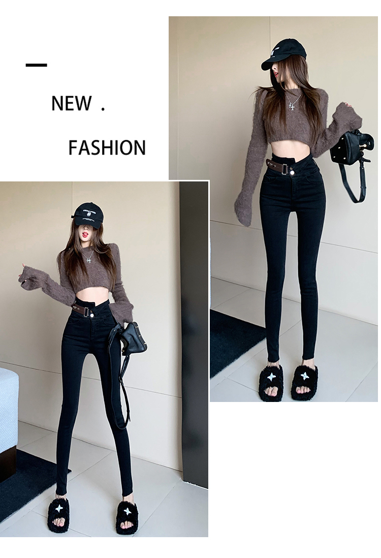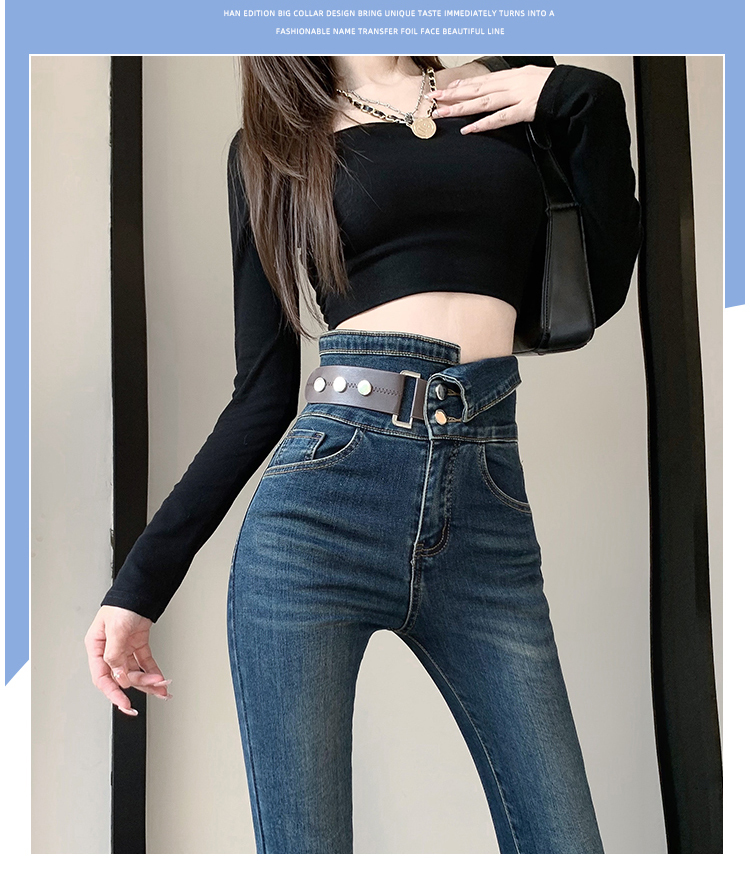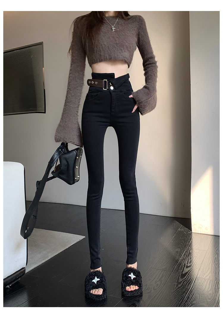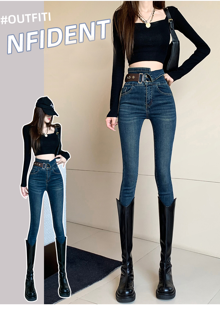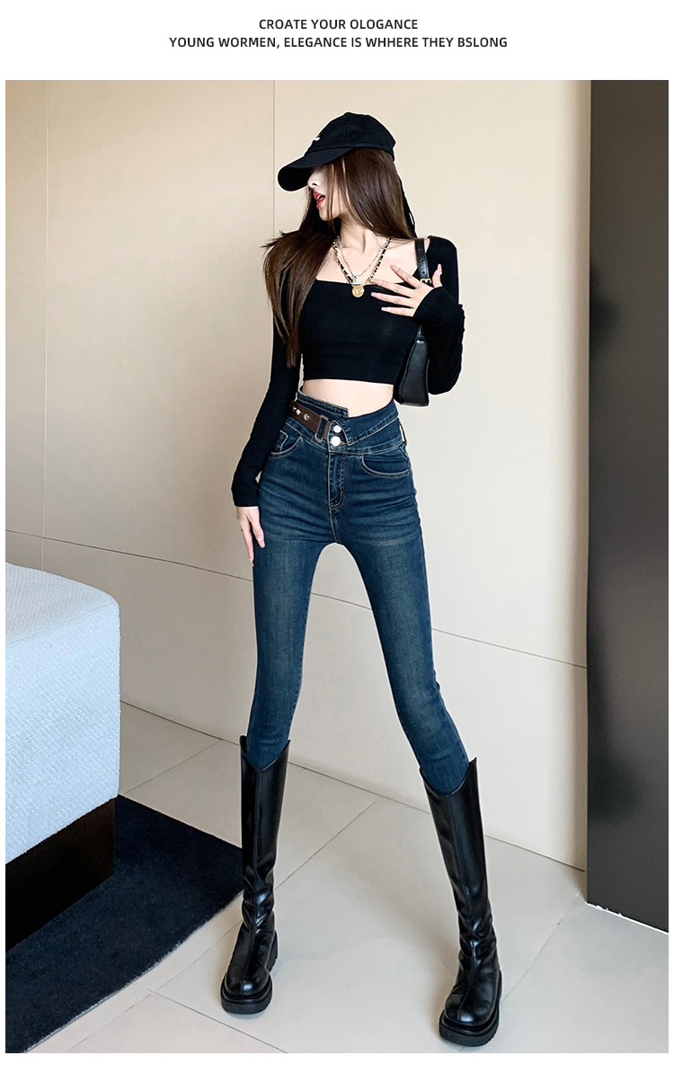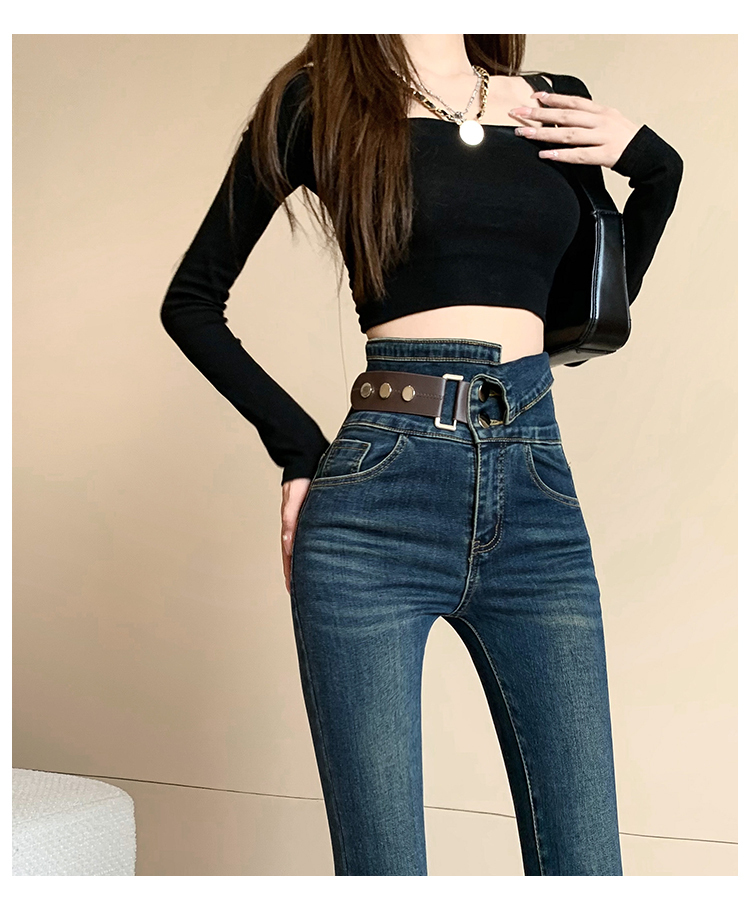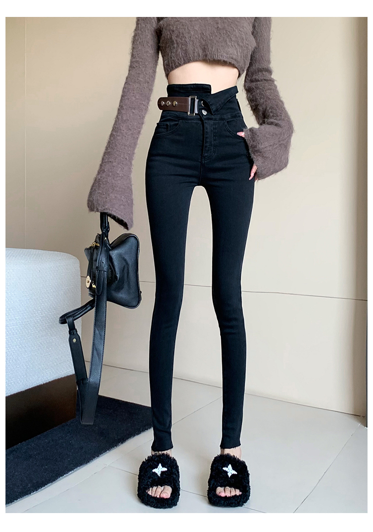 限量特惠|舒適百搭拼接皮帶造型牛仔褲-2色(02M2483)