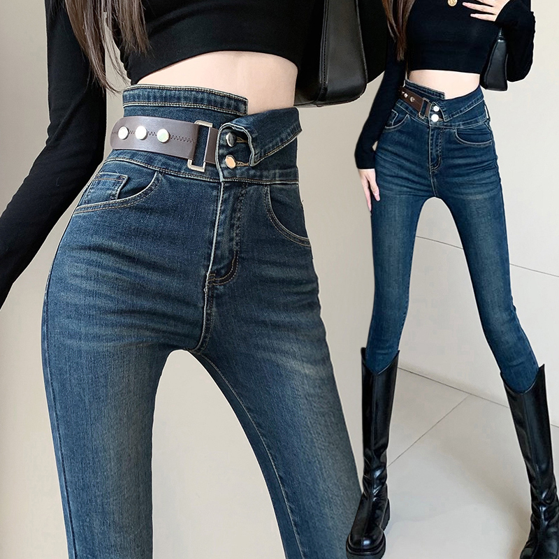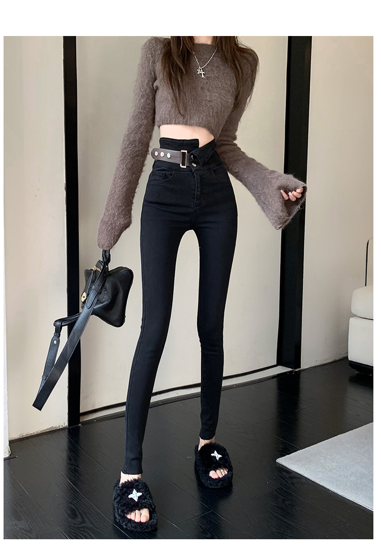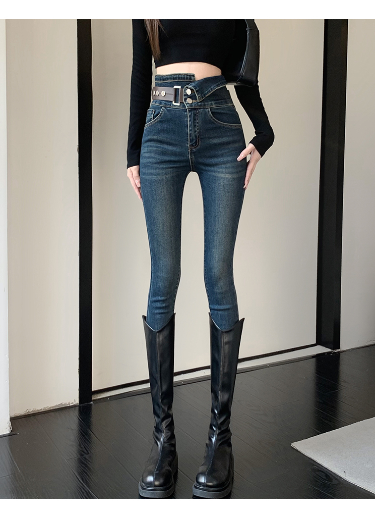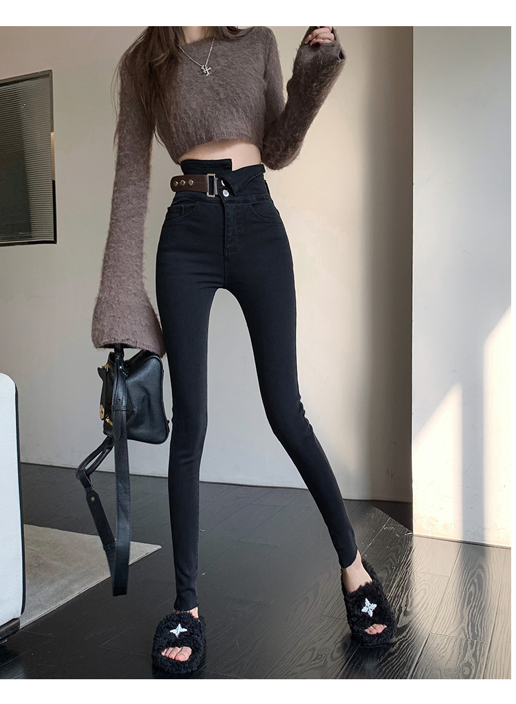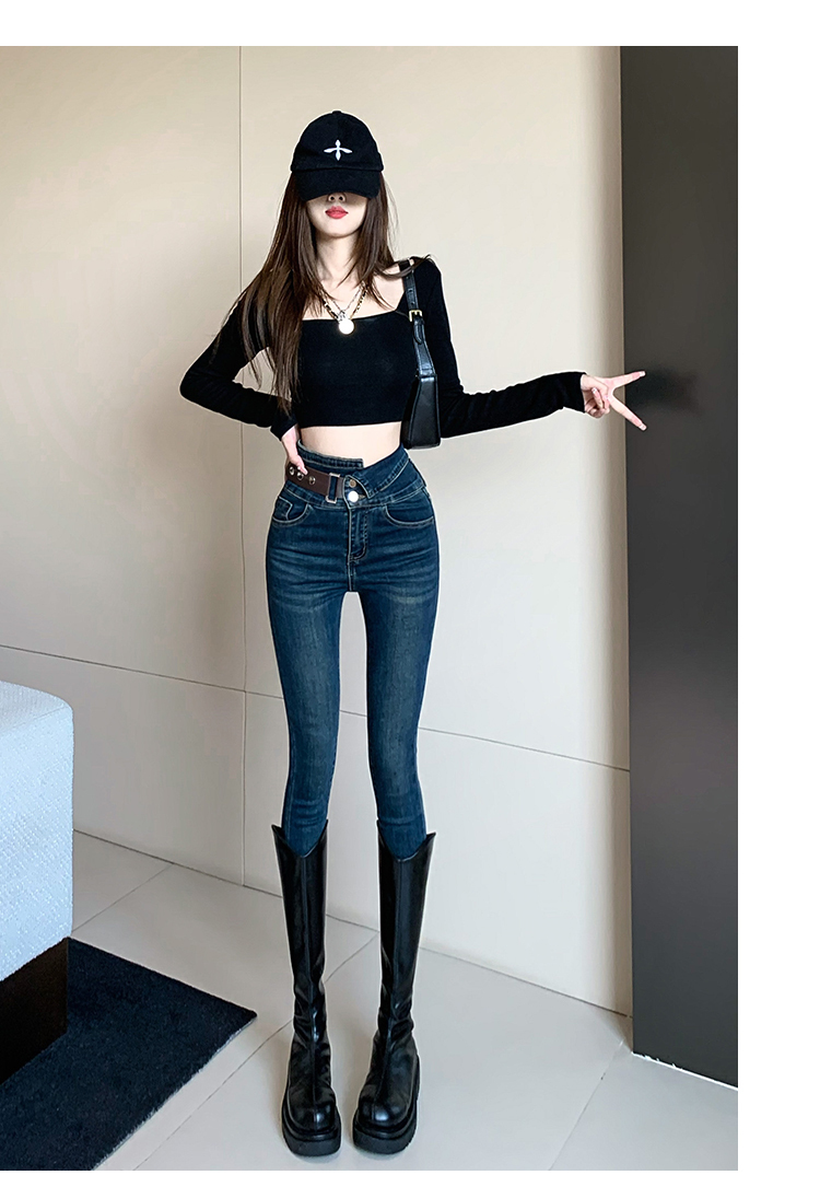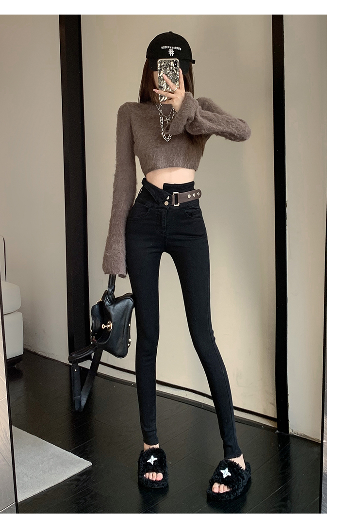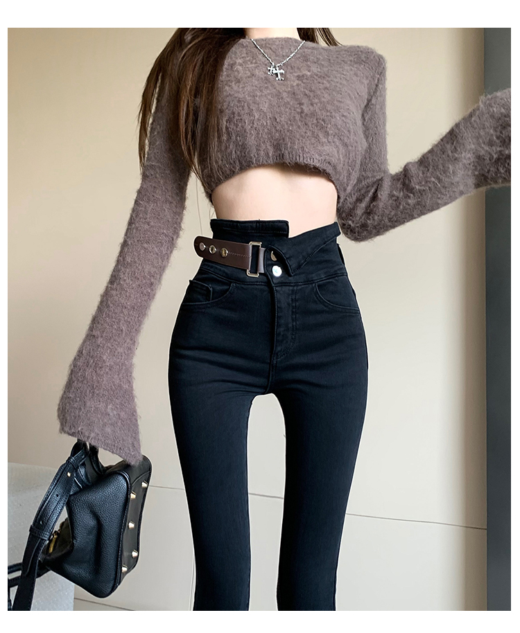 限量特惠|舒適百搭拼接皮帶造型牛仔褲-2色(02M2483)