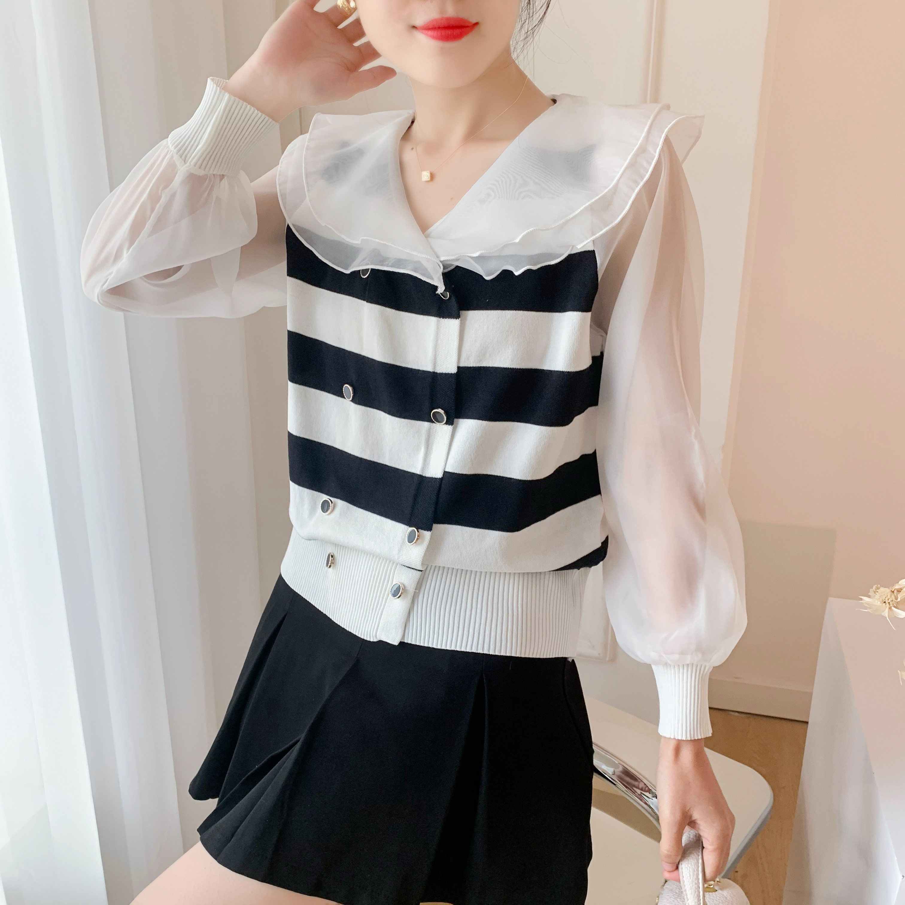 🔺面料:雪紡+針織+歐根紗