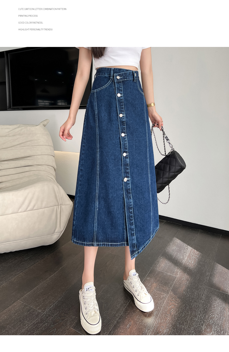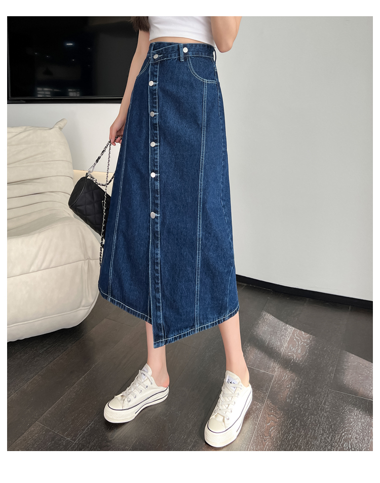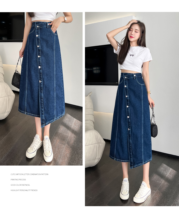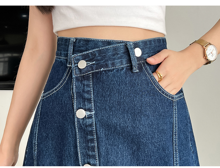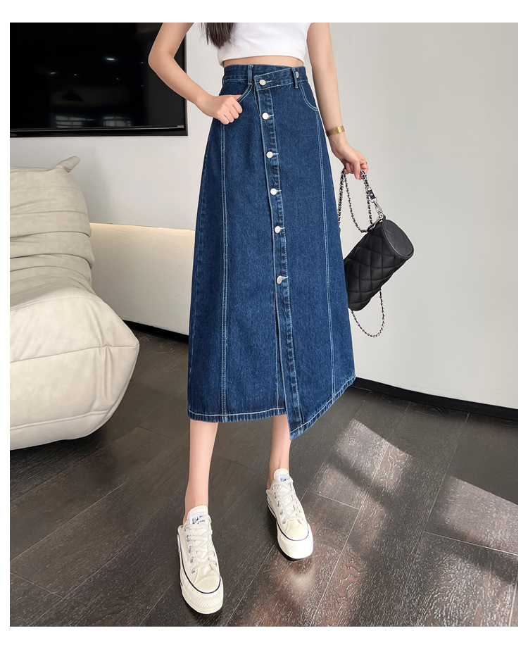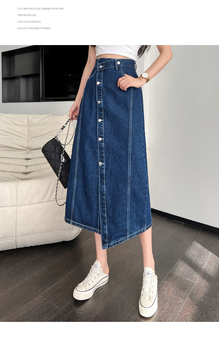 限量特惠|個性舒適單排釦不規則A字牛仔裙(02M2501)