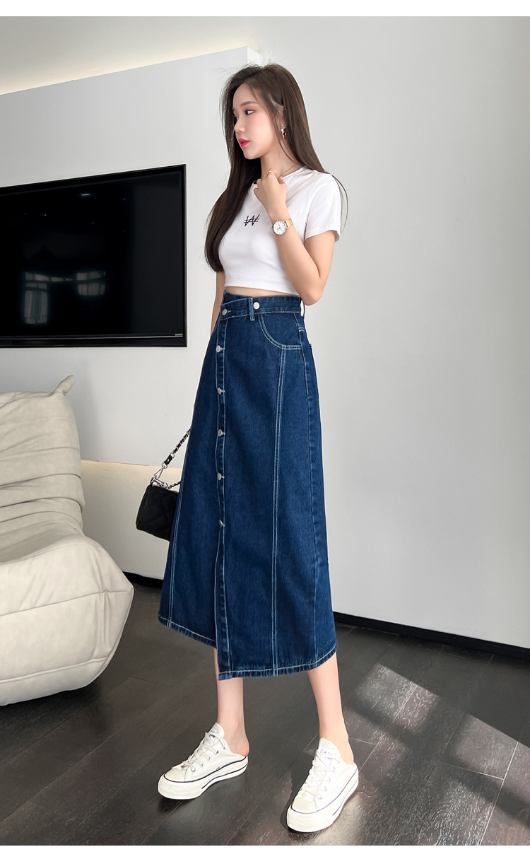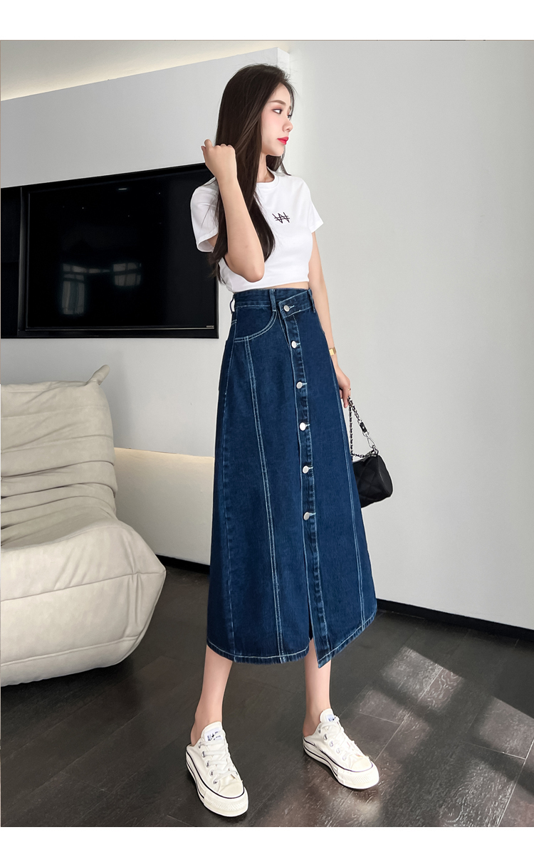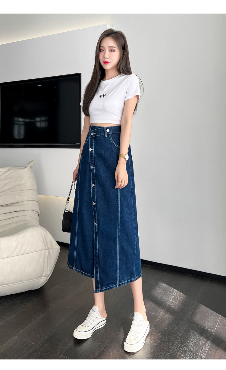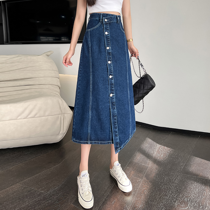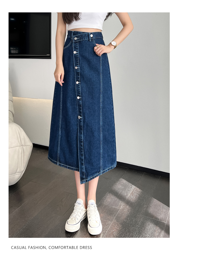 限量特惠|個性舒適單排釦不規則A字牛仔裙(02M2501)