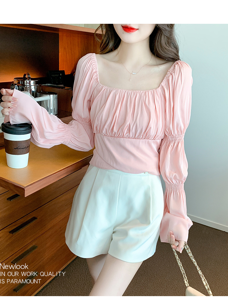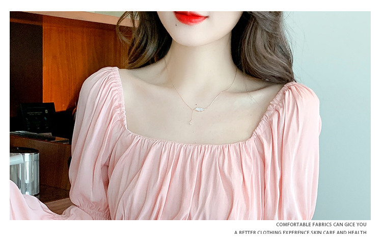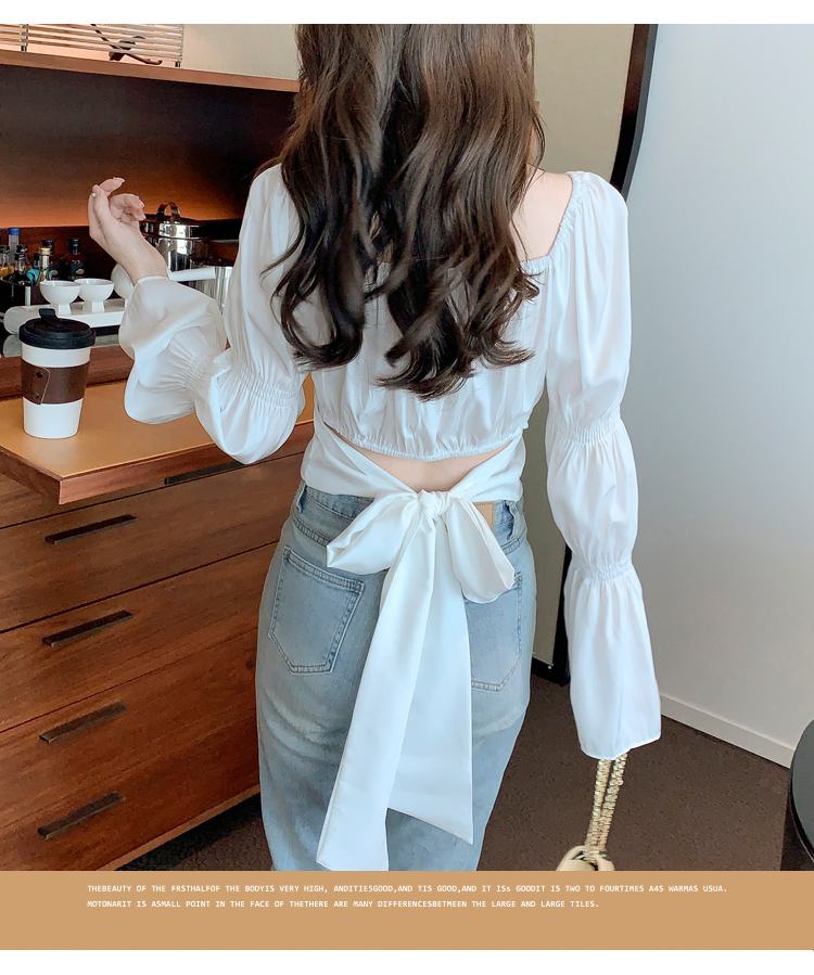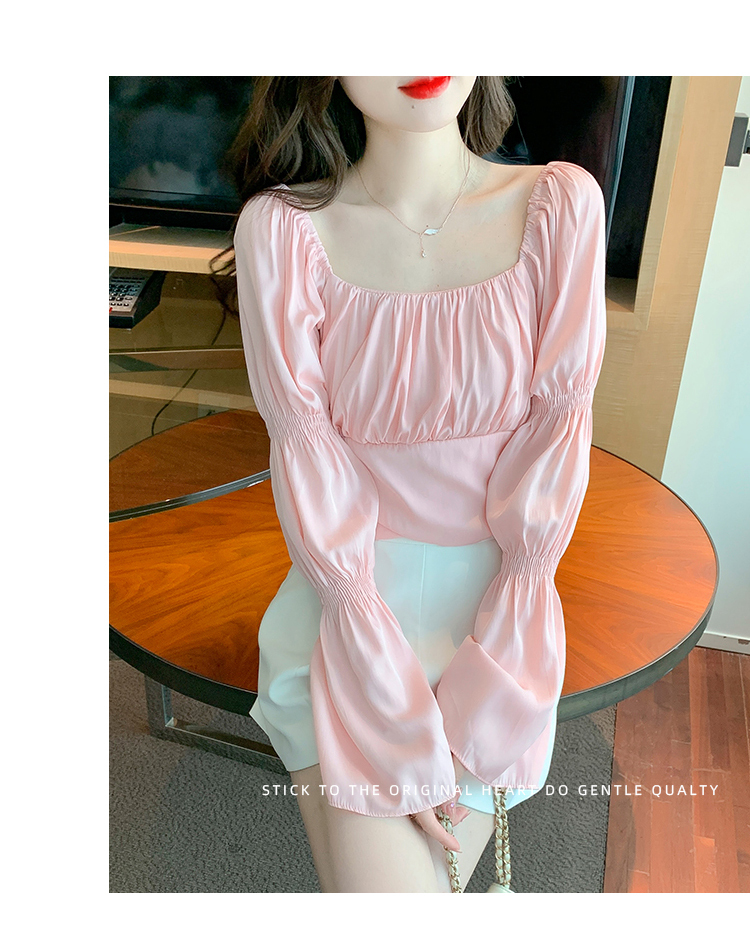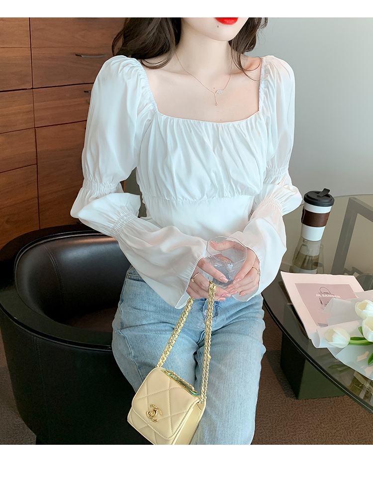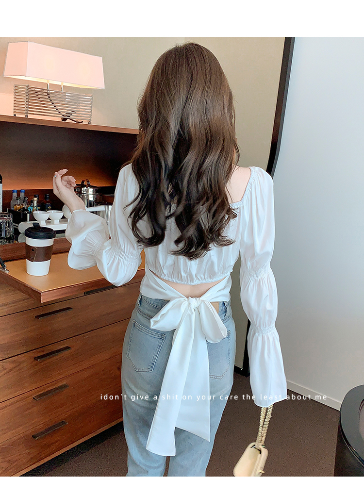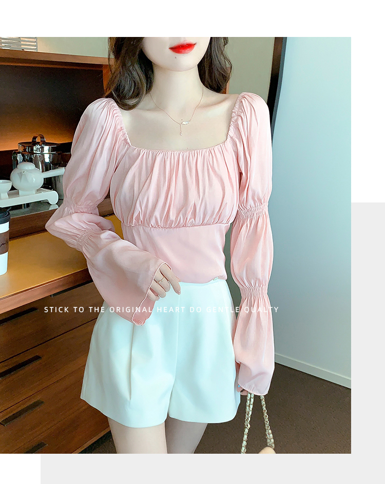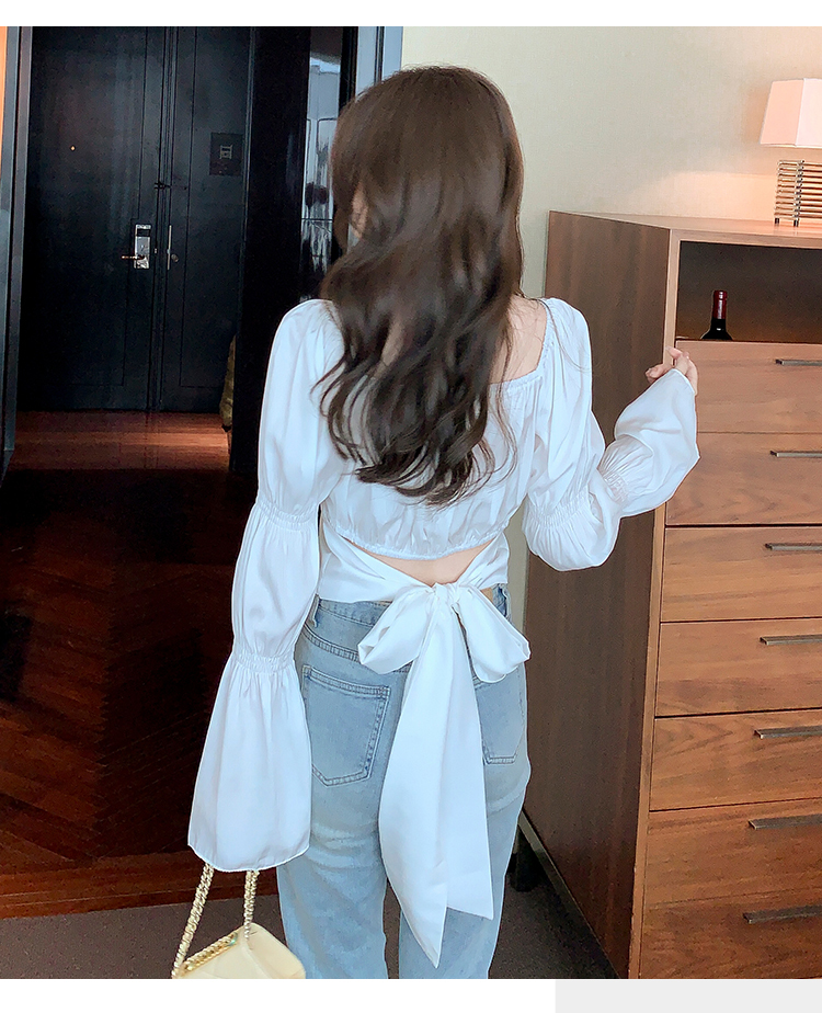 限量特惠|微性感方領褶皺後背綁帶雪紡衫-2色(02M2505)