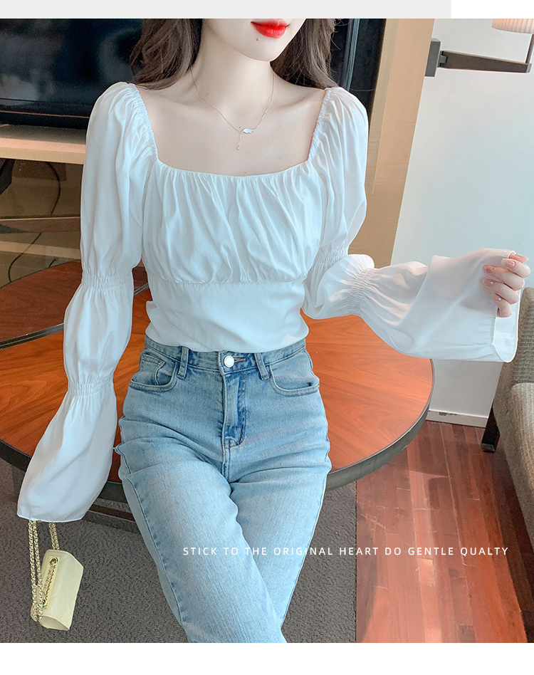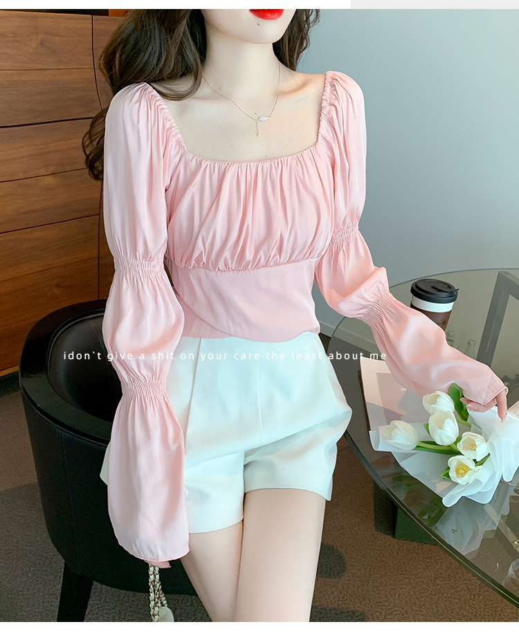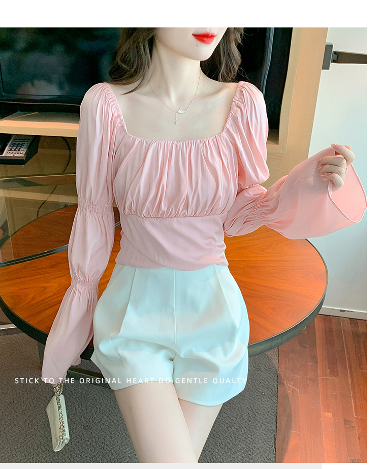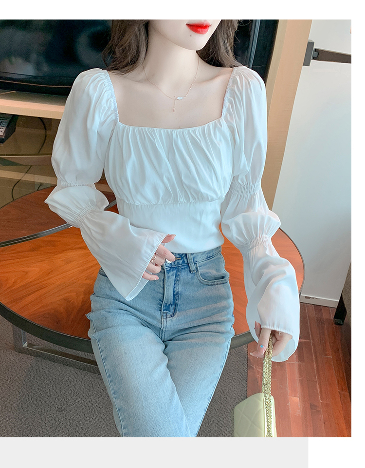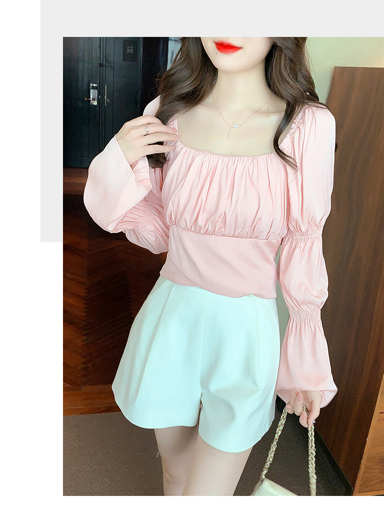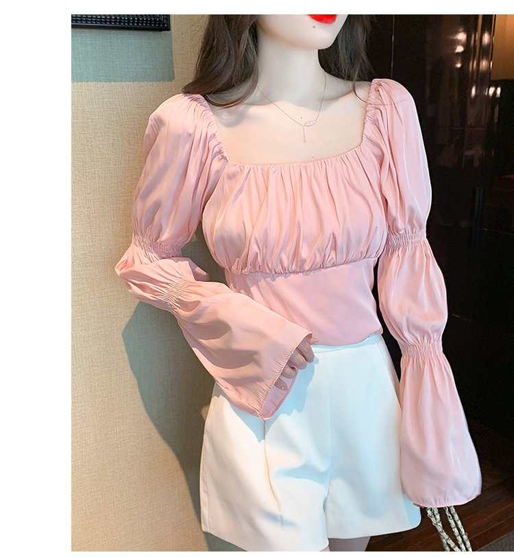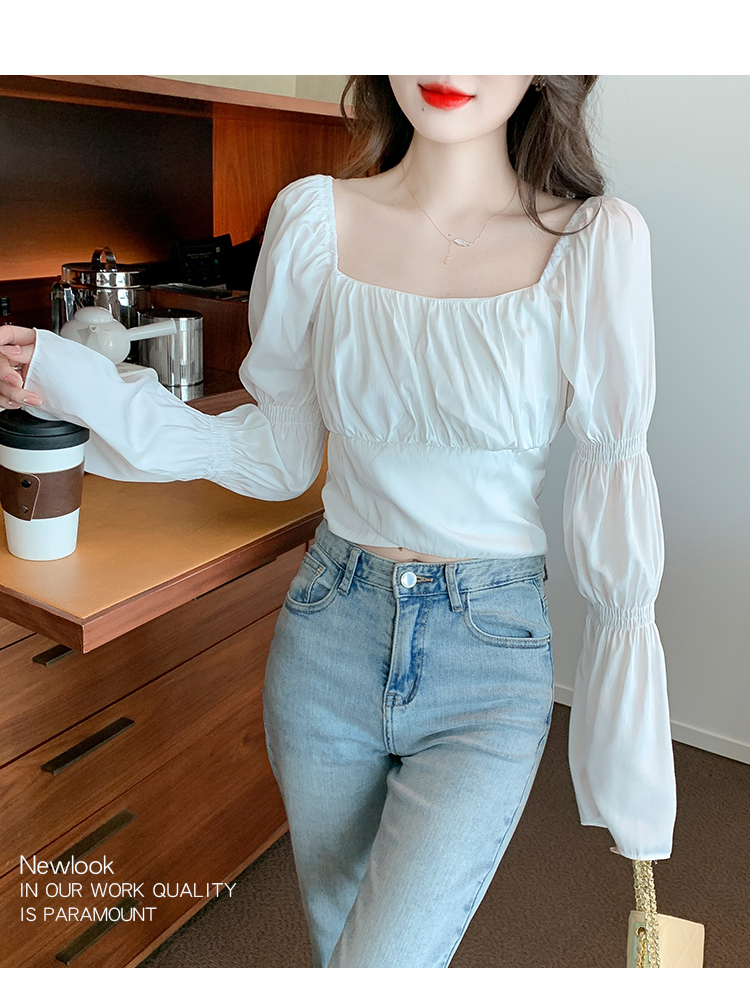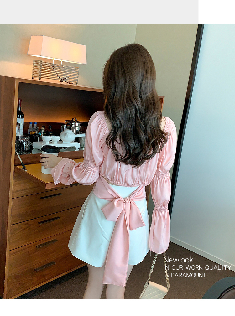 限量特惠|微性感方領褶皺後背綁帶雪紡衫-2色(02M2505)