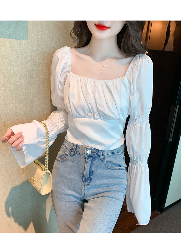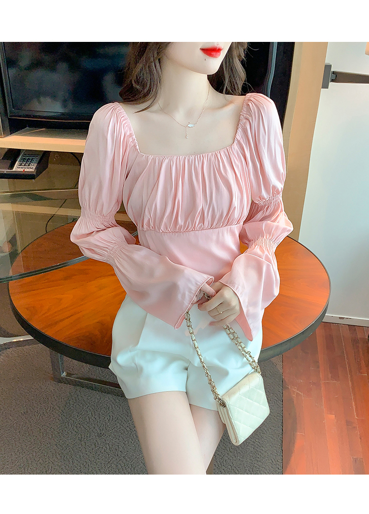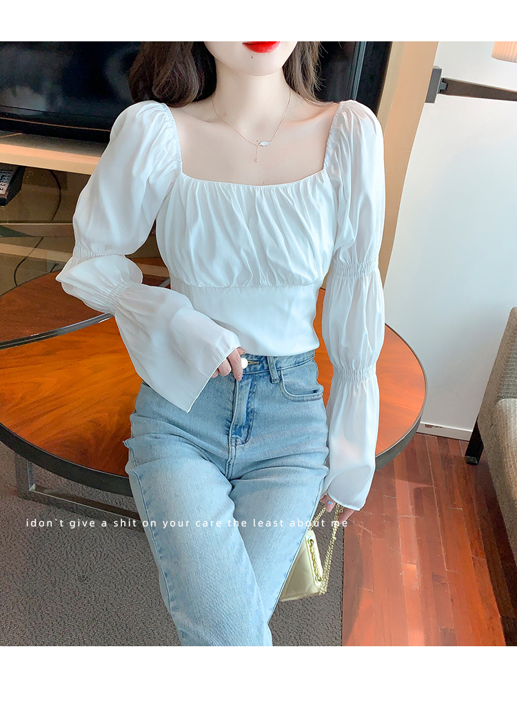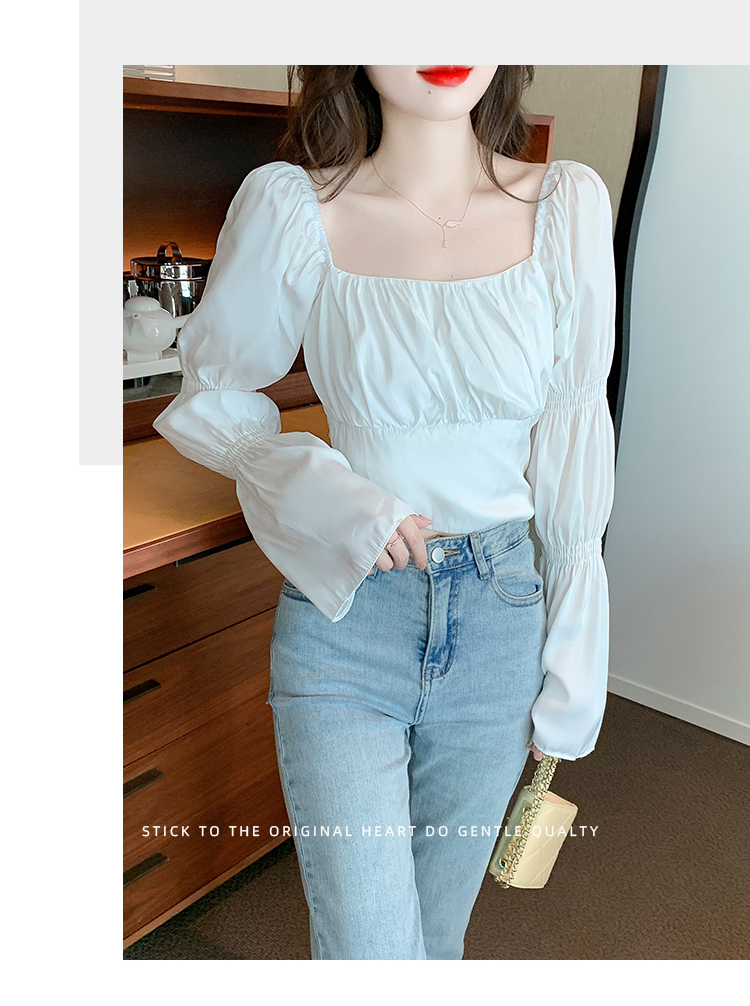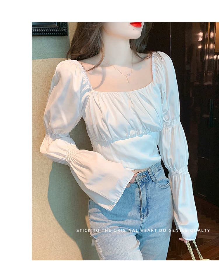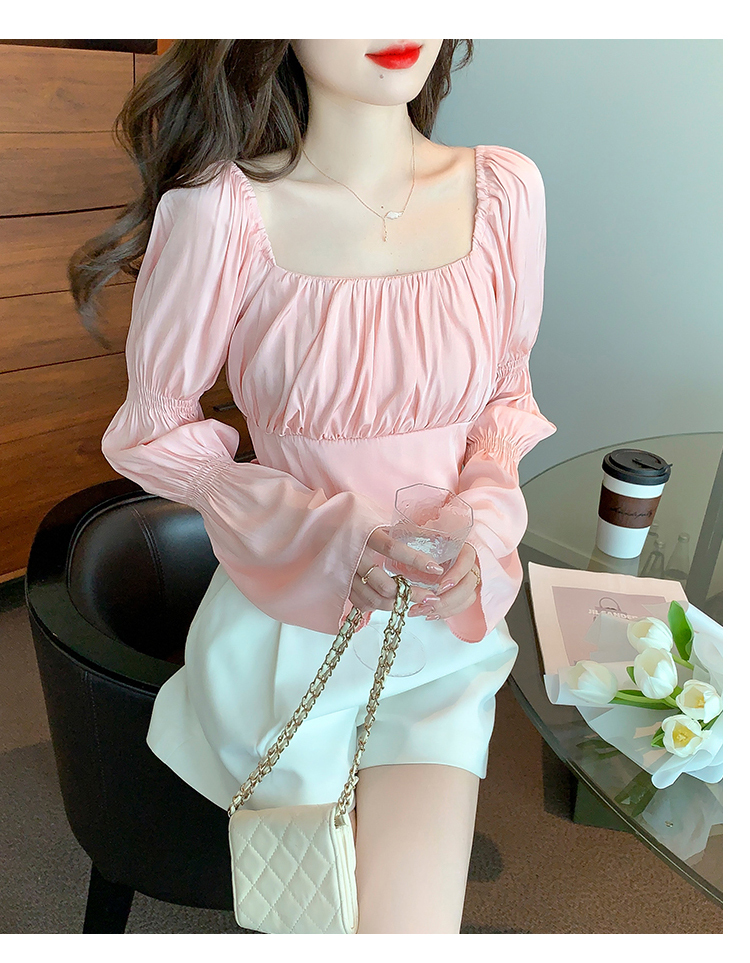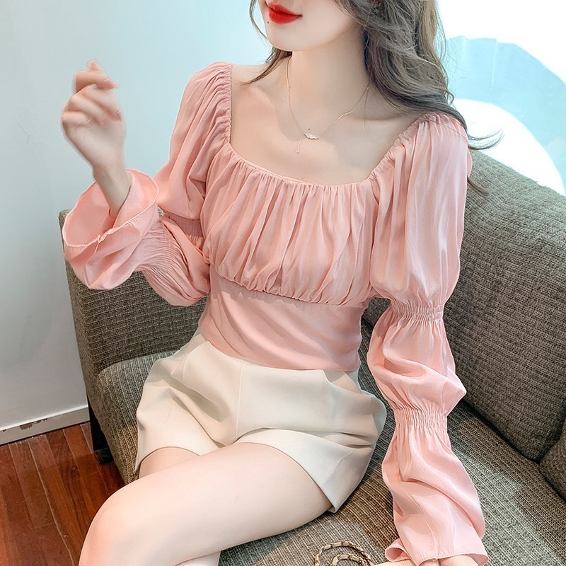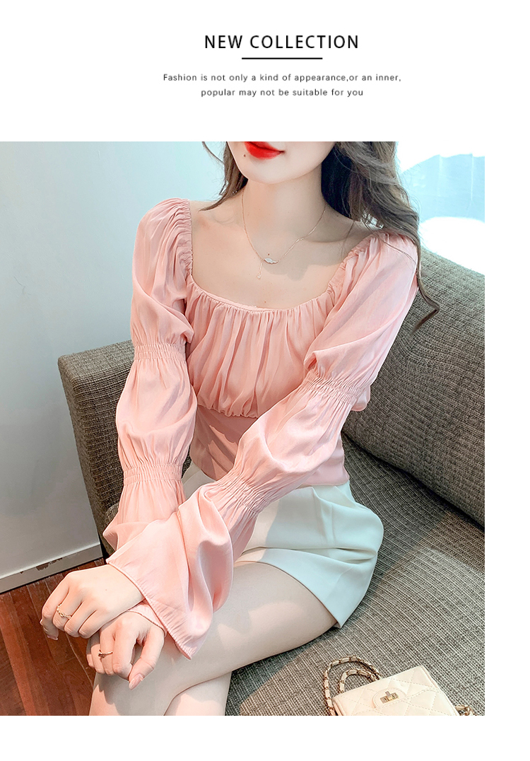 限量特惠|微性感方領褶皺後背綁帶雪紡衫-2色(02M2505)