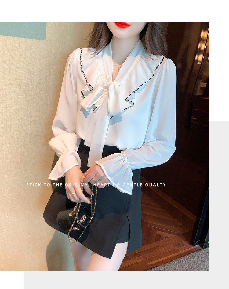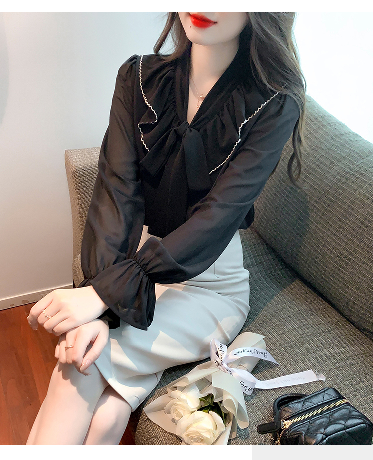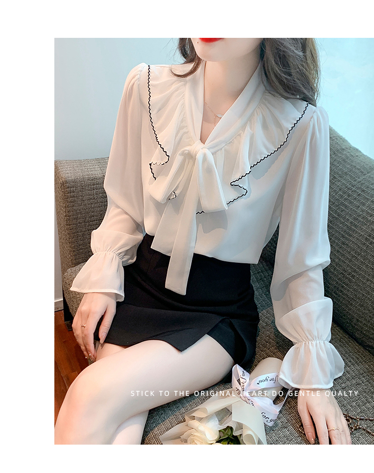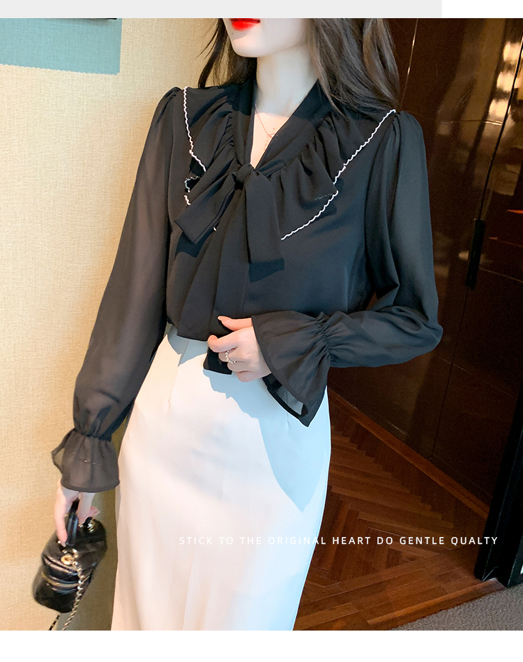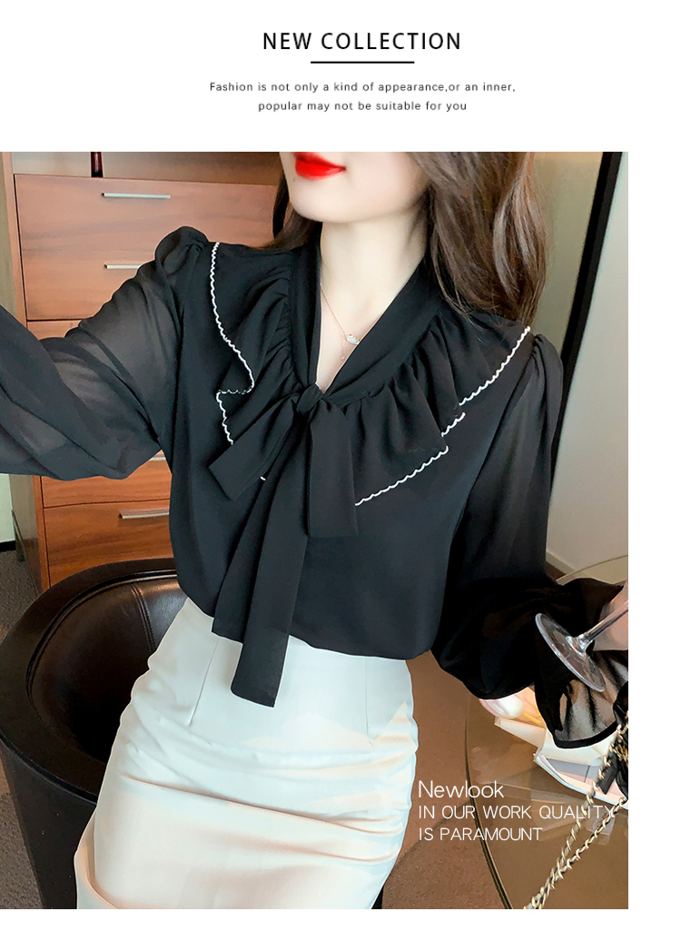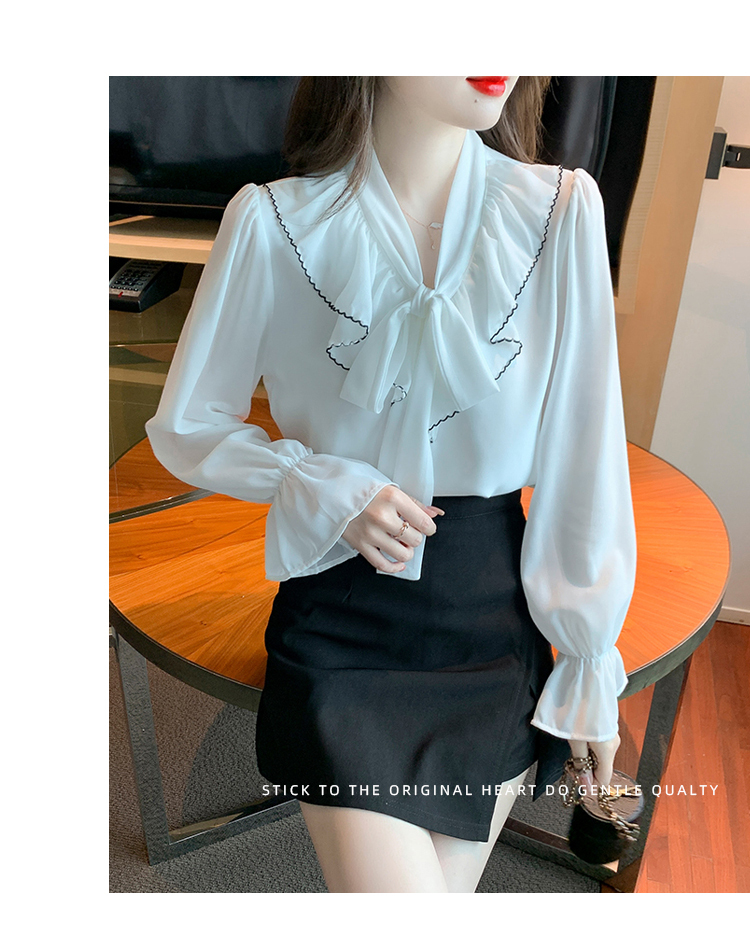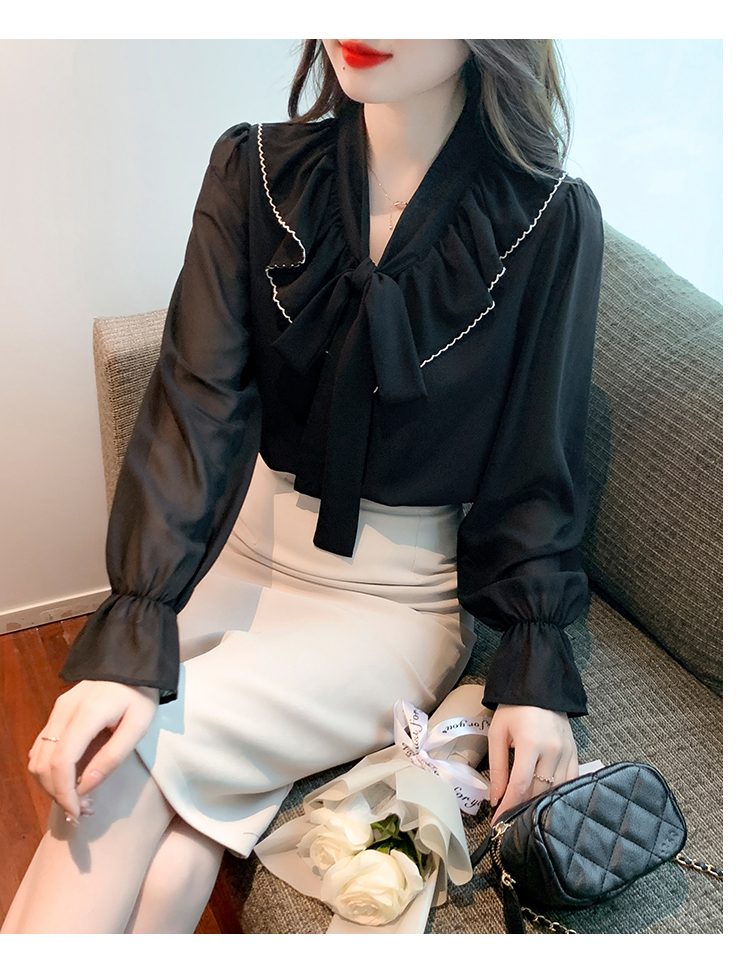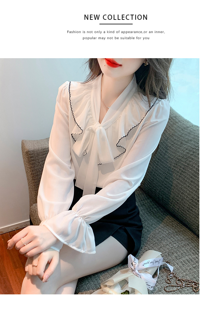 限量特惠|氣質V領繫帶荷葉邊雪紡衫-2色(02M2507)