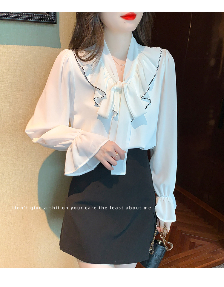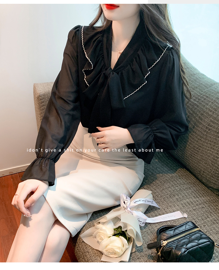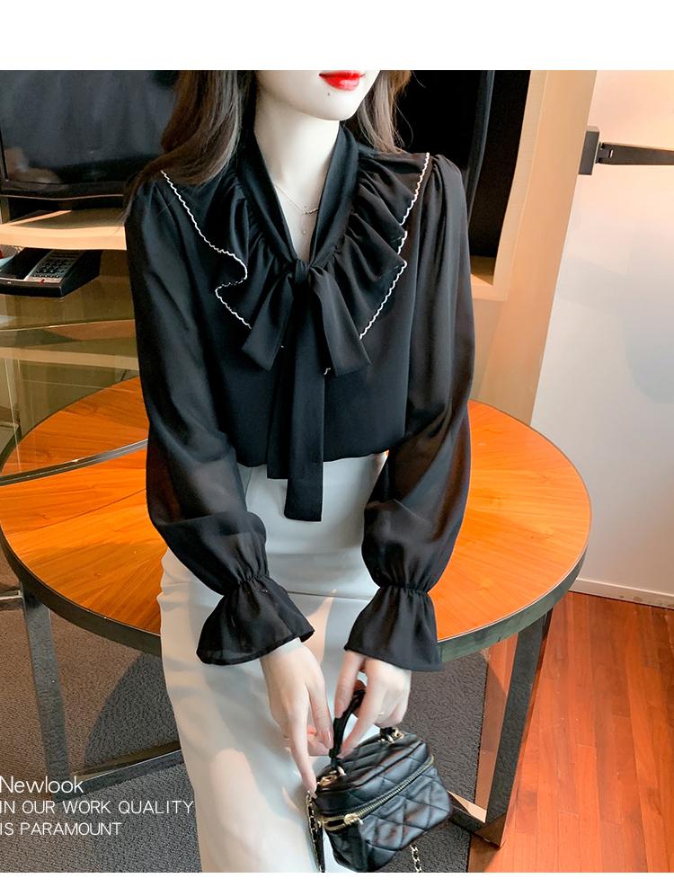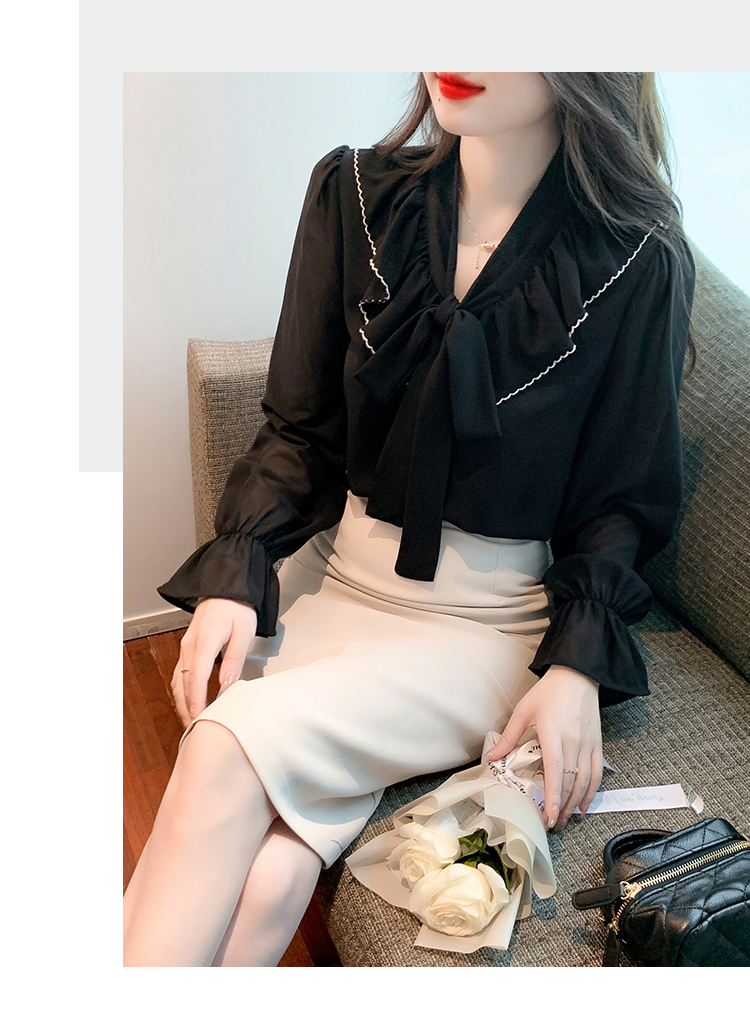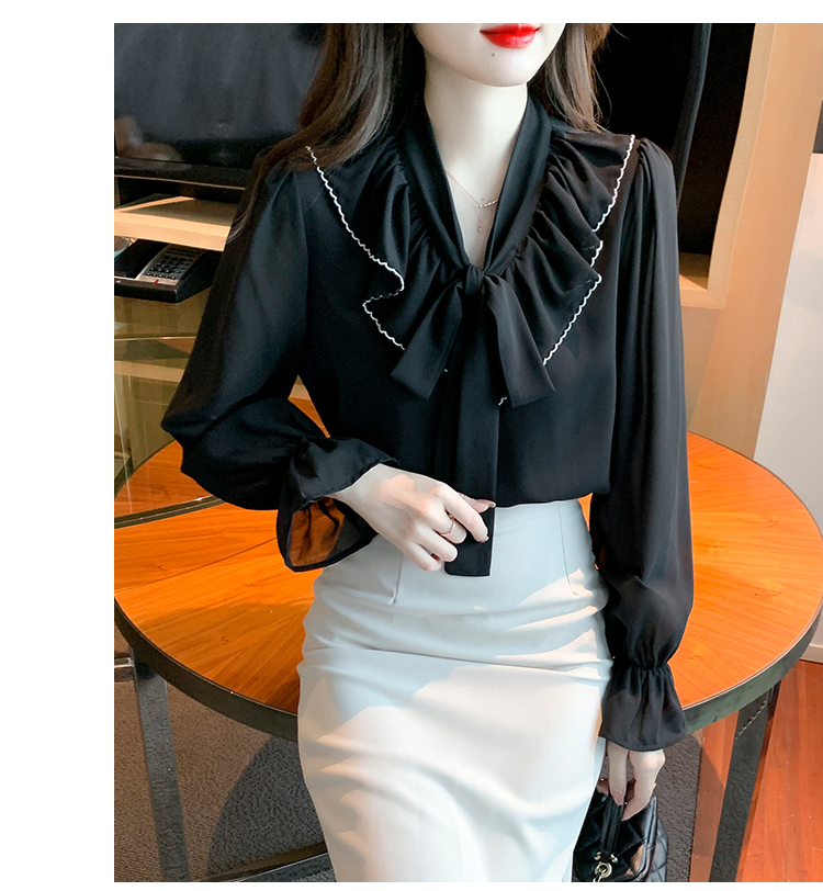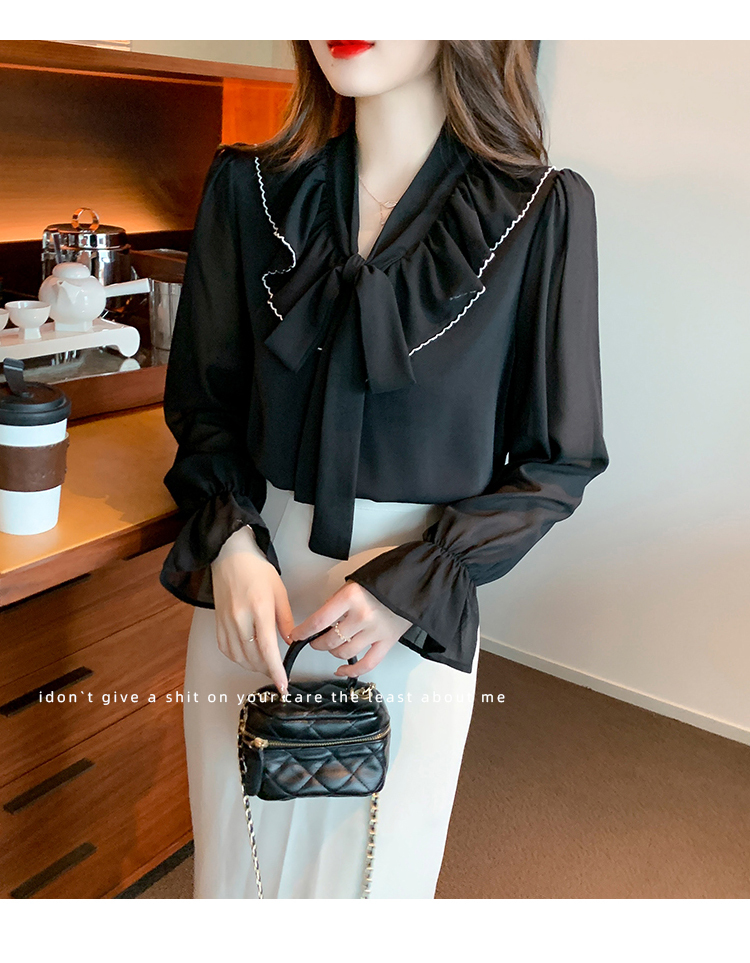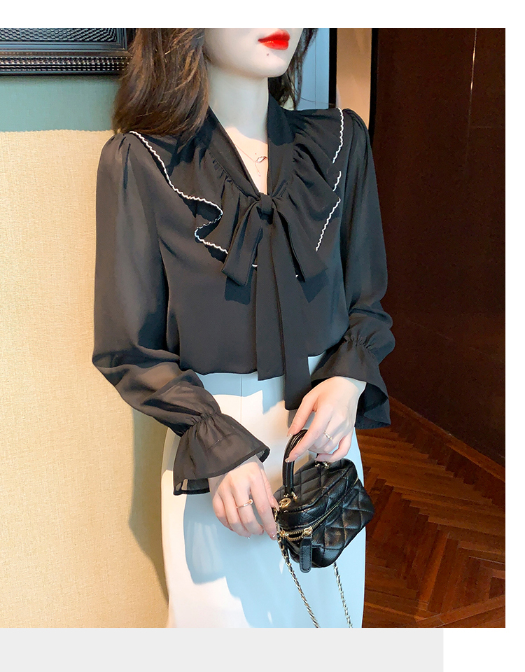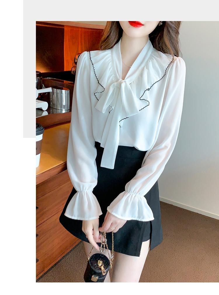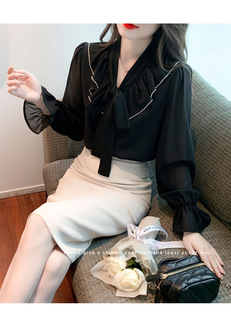 限量特惠|氣質V領繫帶荷葉邊雪紡衫-2色(02M2507)