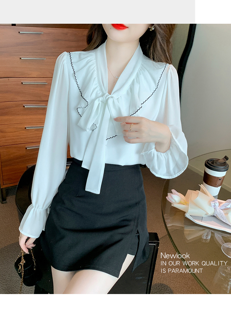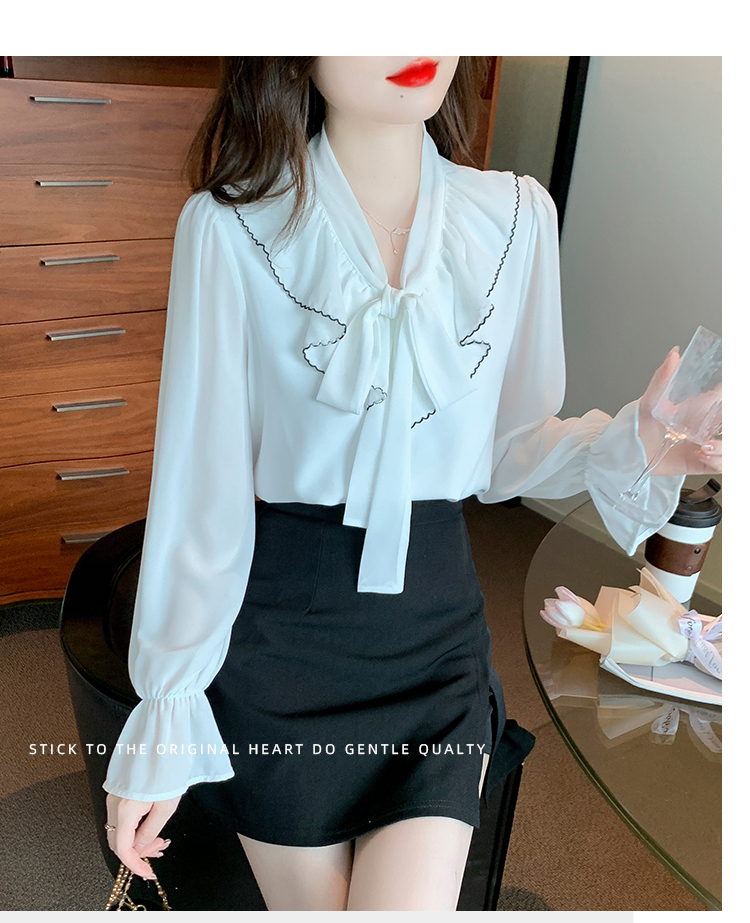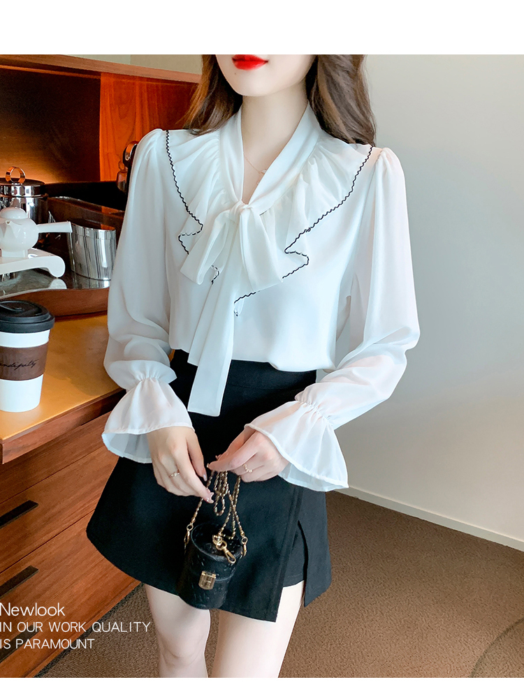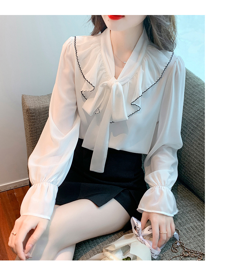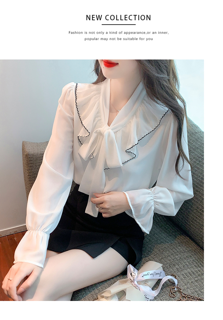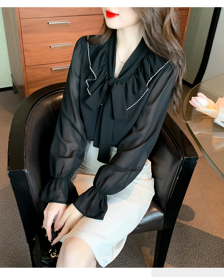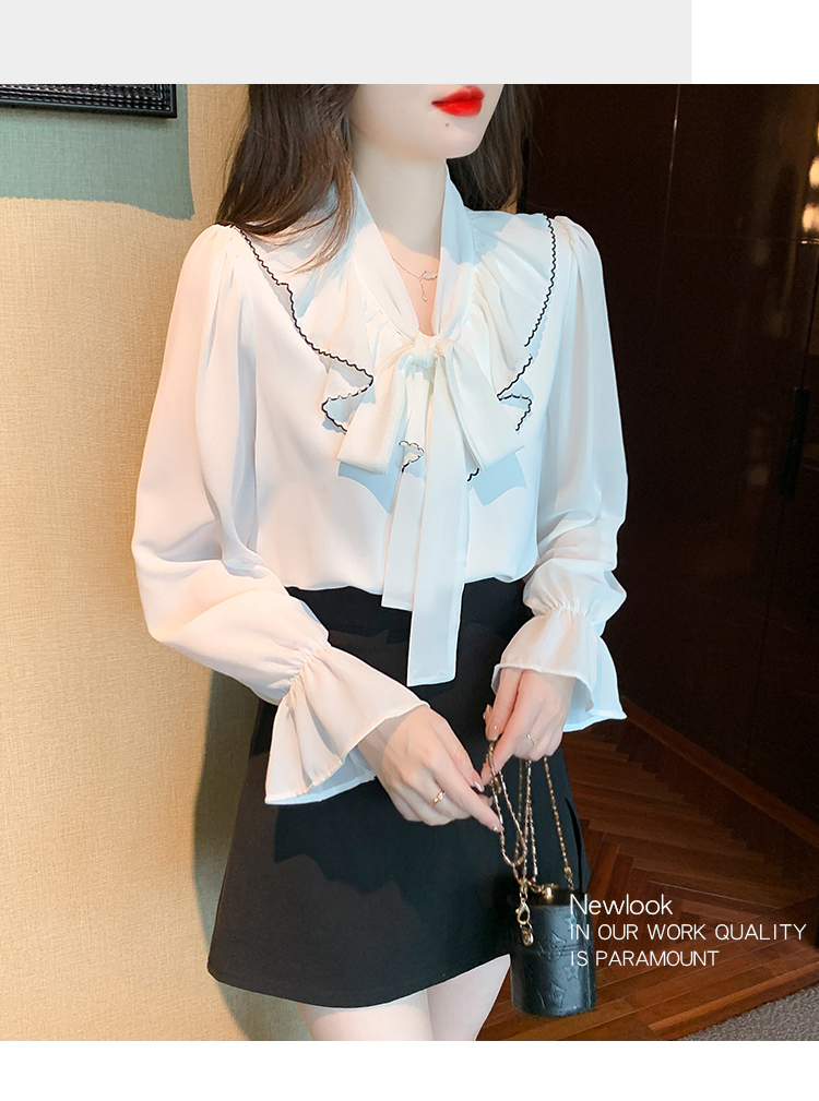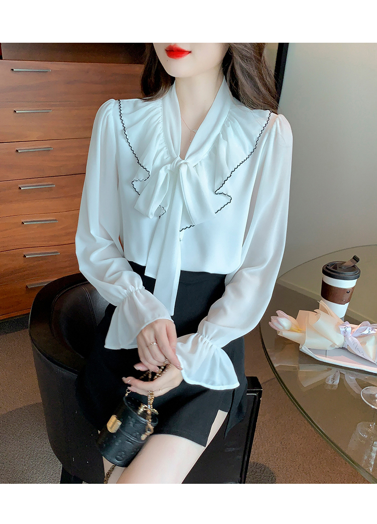 限量特惠|氣質V領繫帶荷葉邊雪紡衫-2色(02M2507)