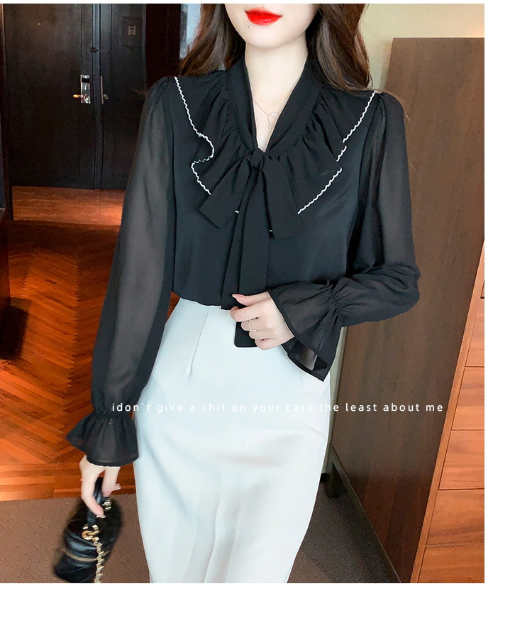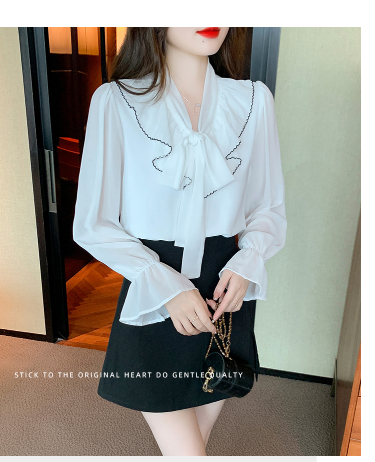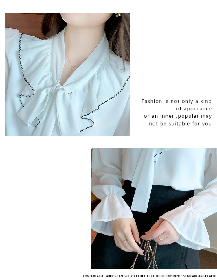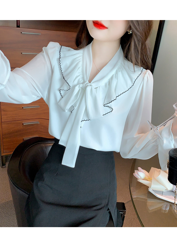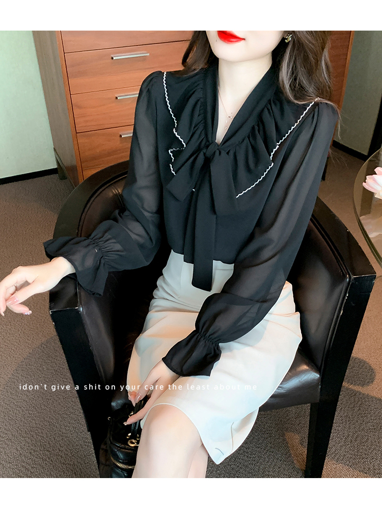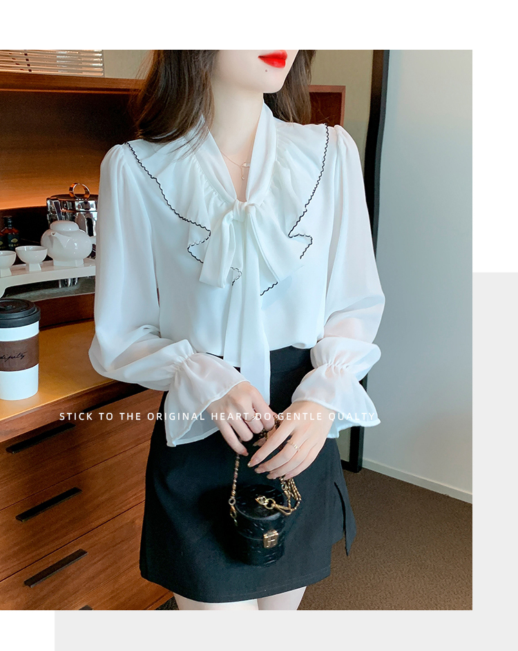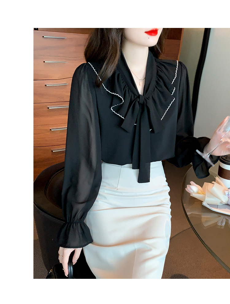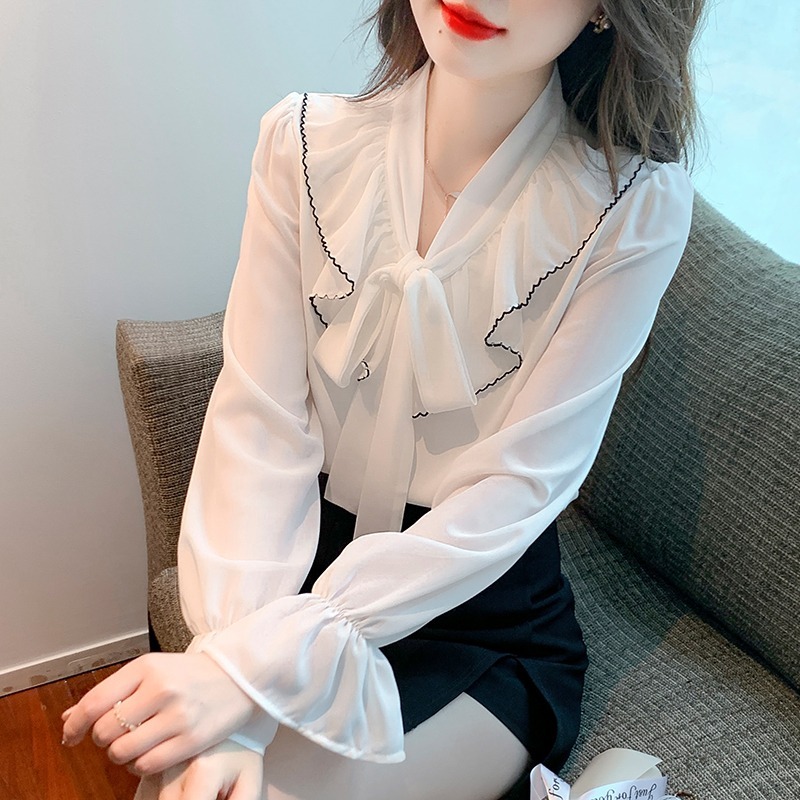 限量特惠|氣質V領繫帶荷葉邊雪紡衫-2色(02M2507)