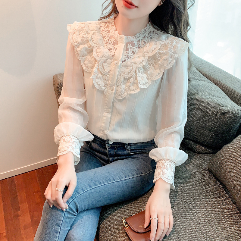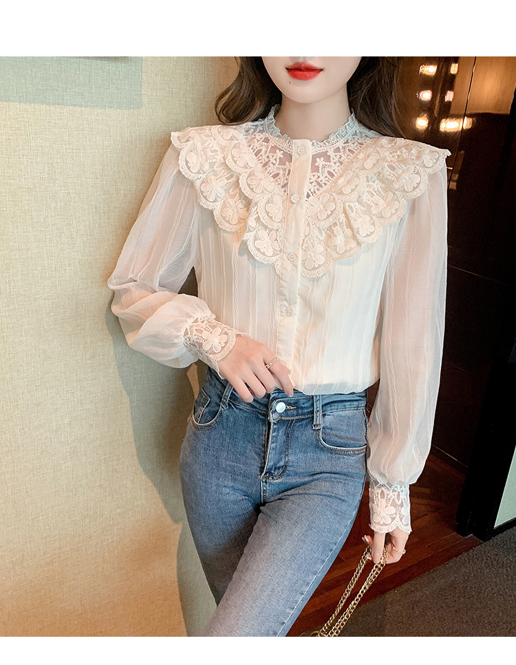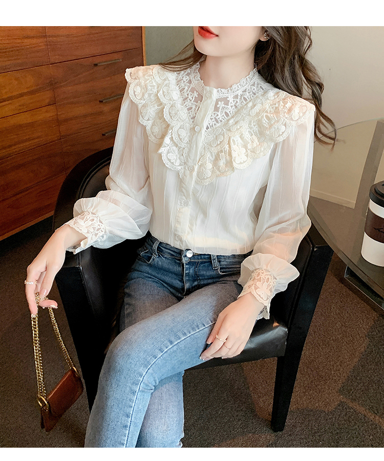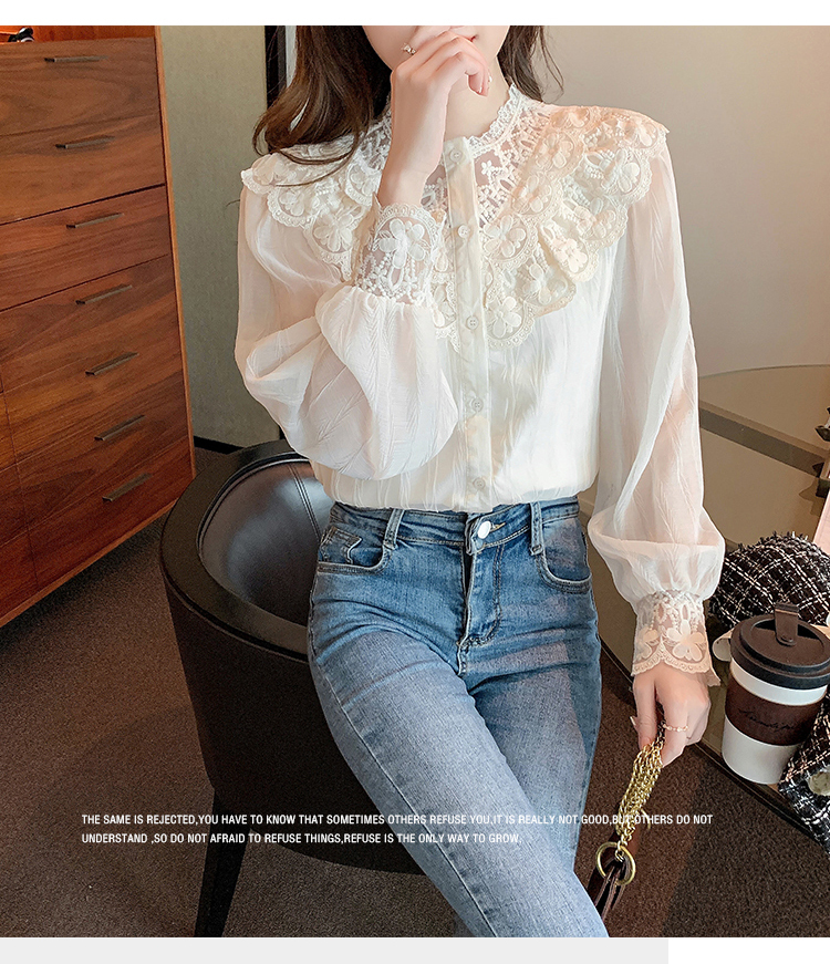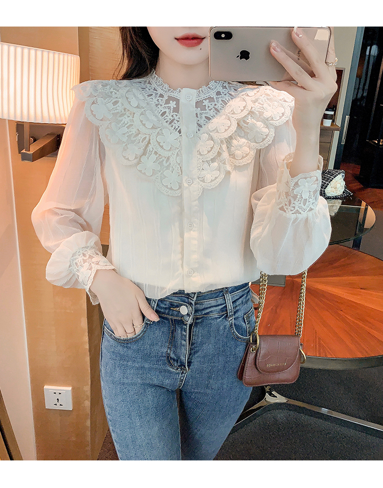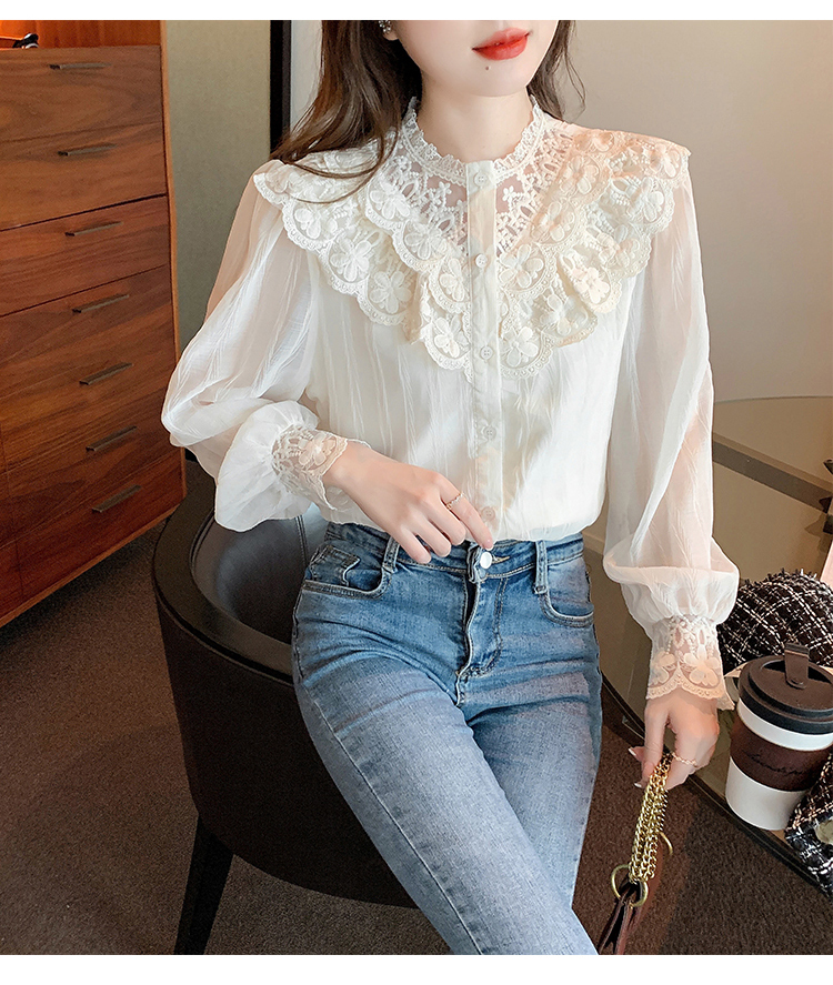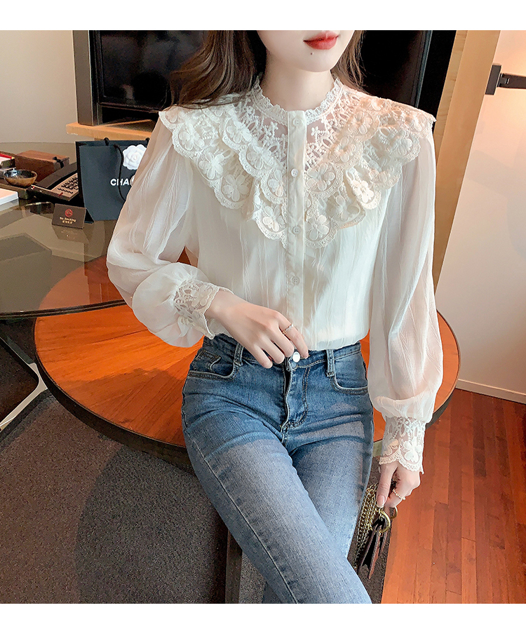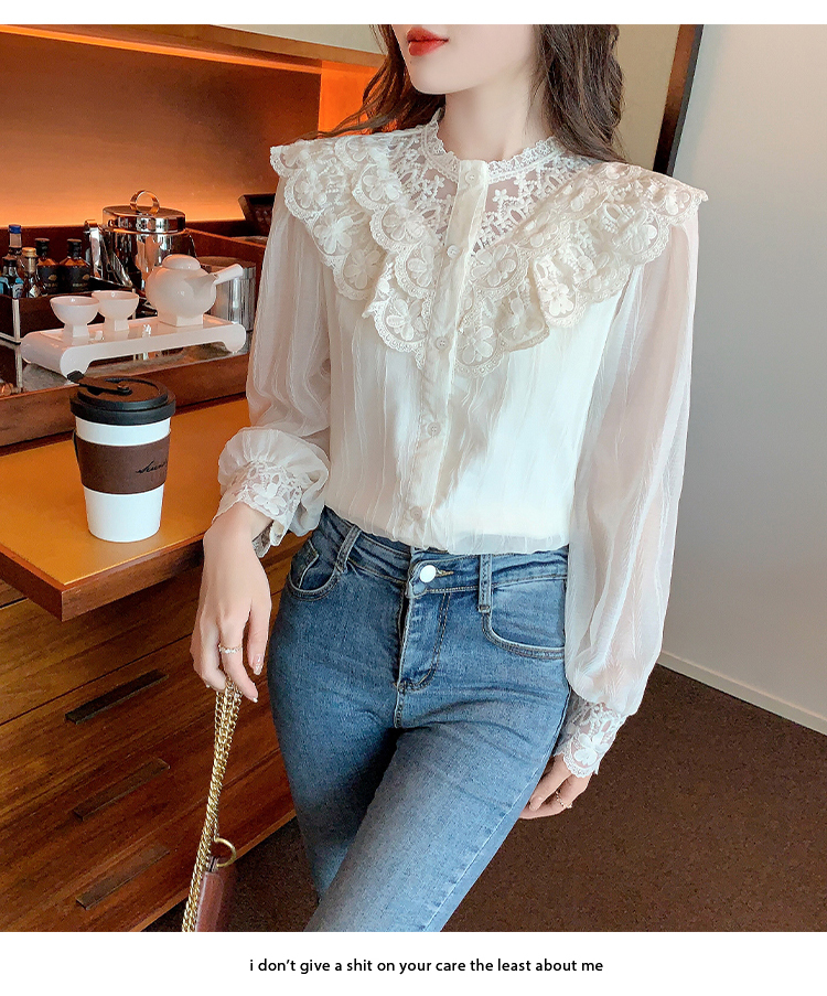 限量特惠|法式蕾絲花邊拼接雪紡衫(02M2517)
