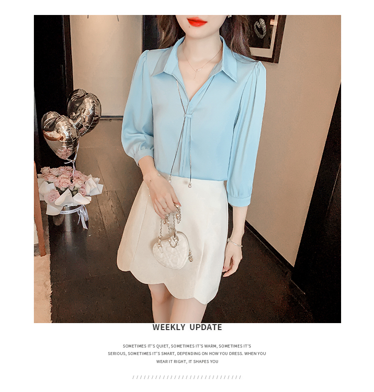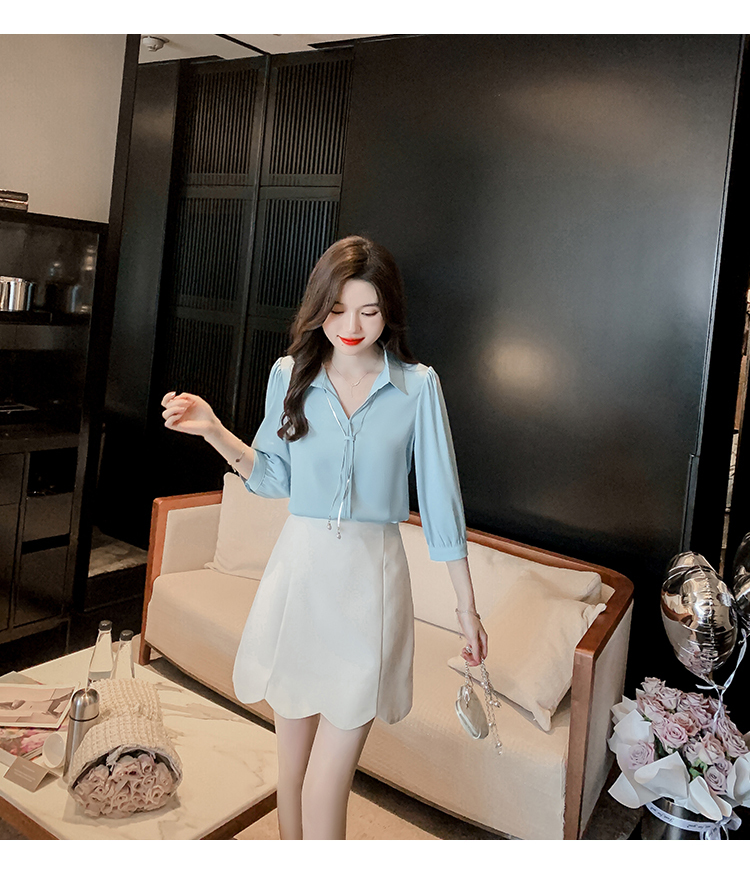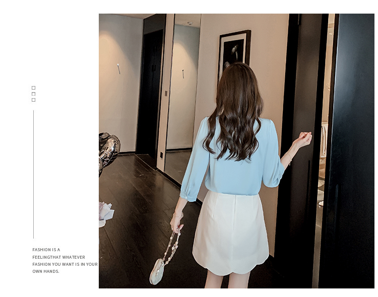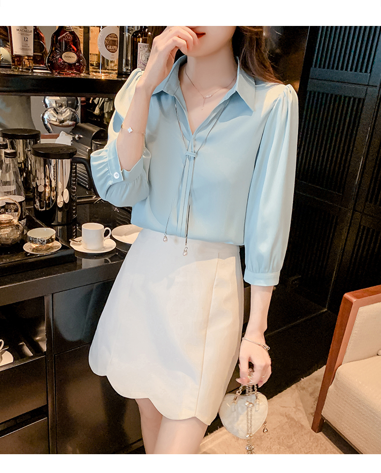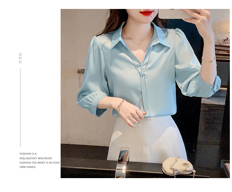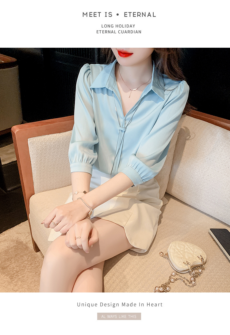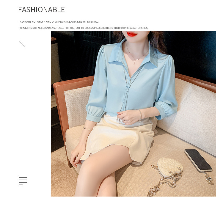 限量特惠|個性飄帶造型七分袖雪紡衫(02M2518)
