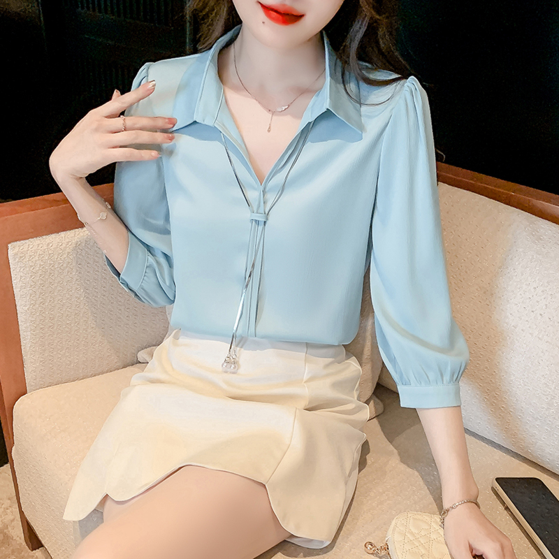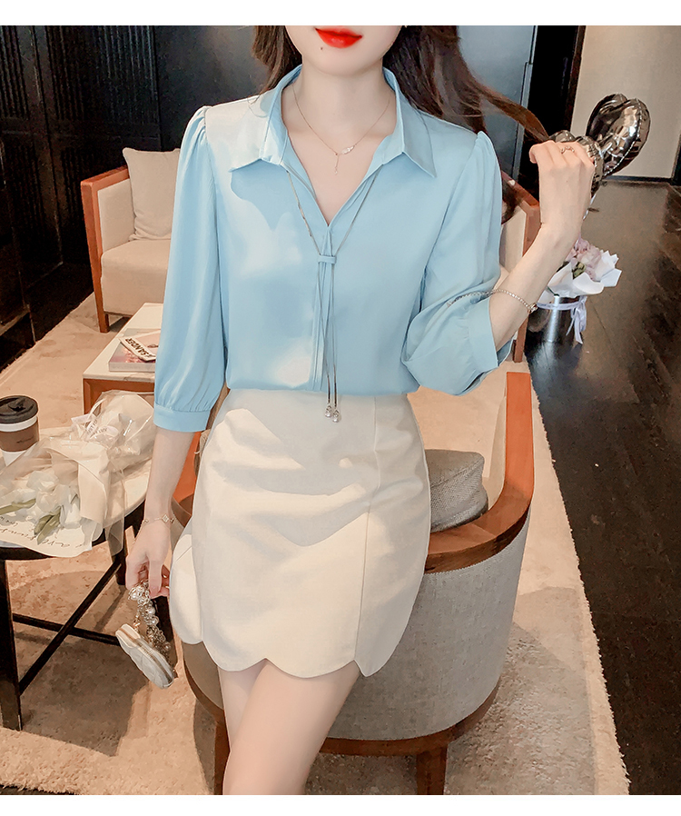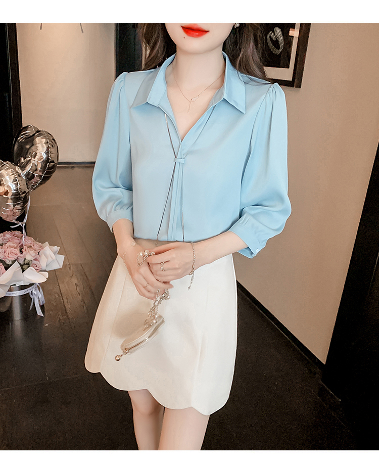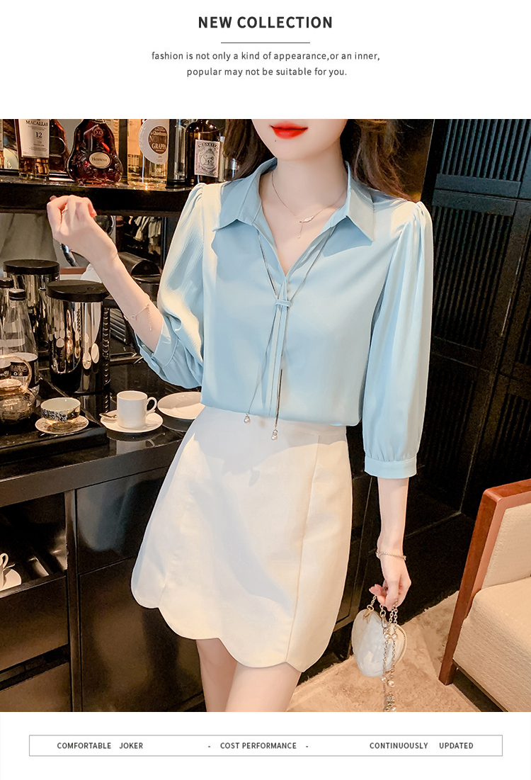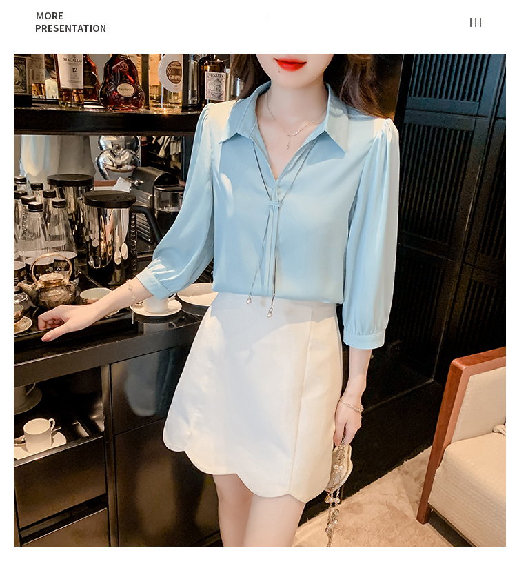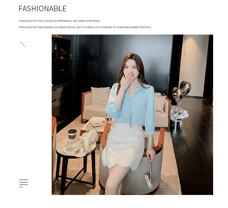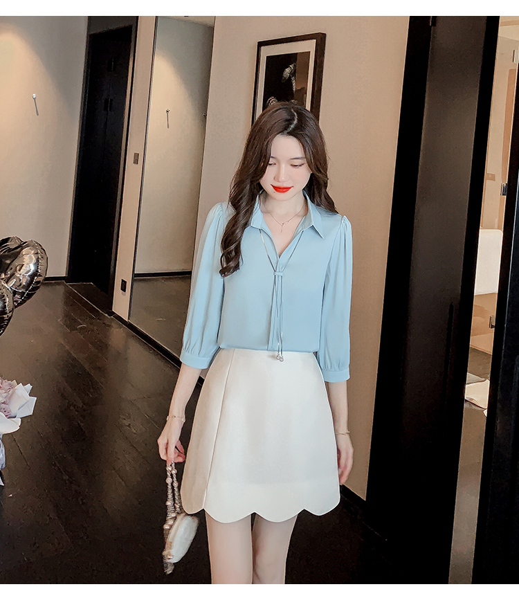 限量特惠|個性飄帶造型七分袖雪紡衫(02M2518)