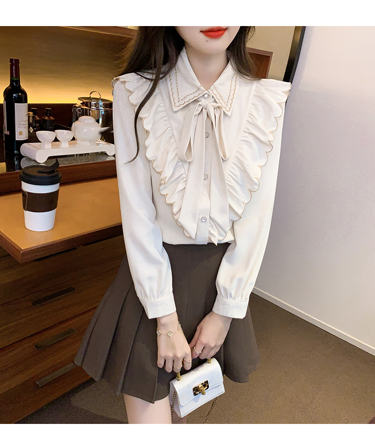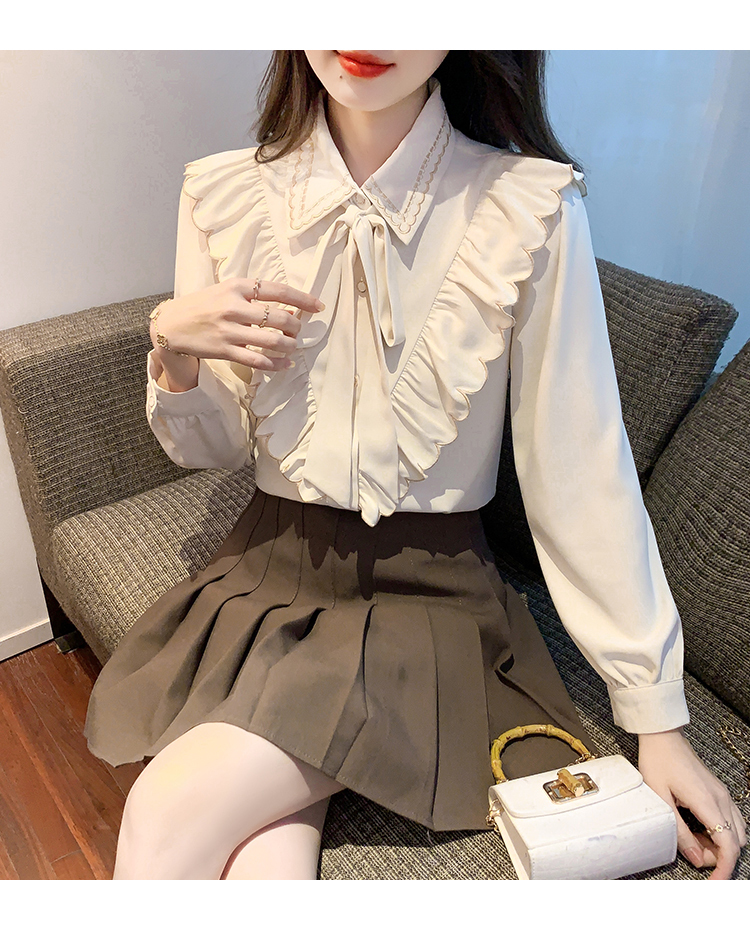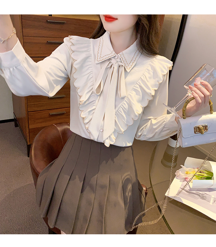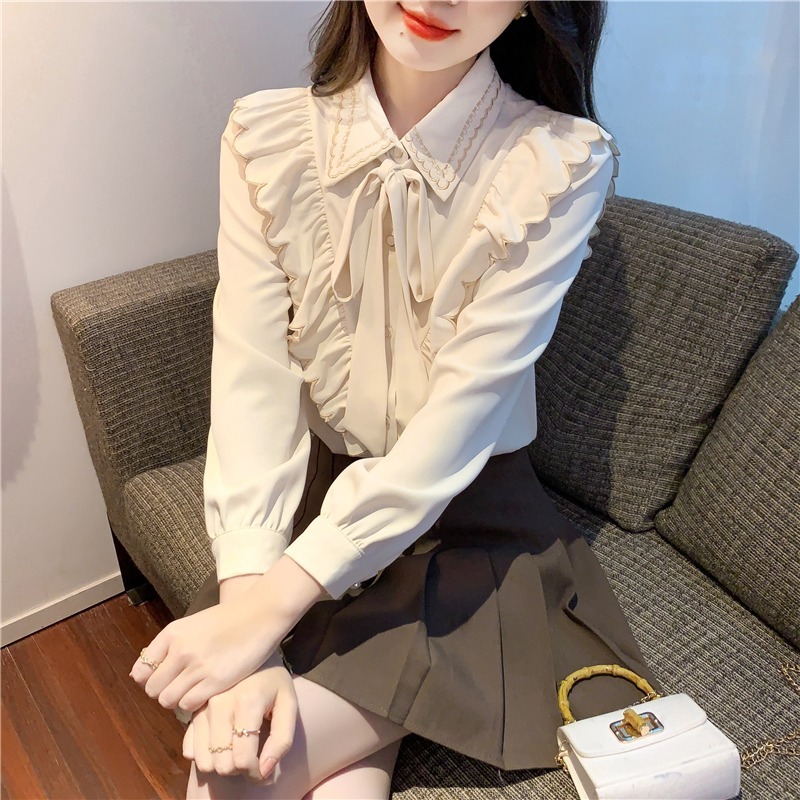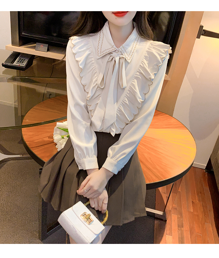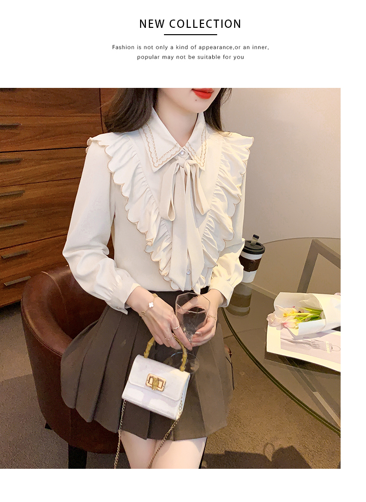 限量特惠|甜美刺繡翻領繫帶荷葉邊造型雪紡衫(02M2530)