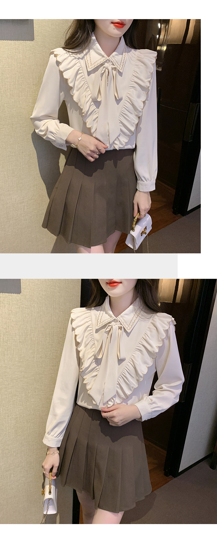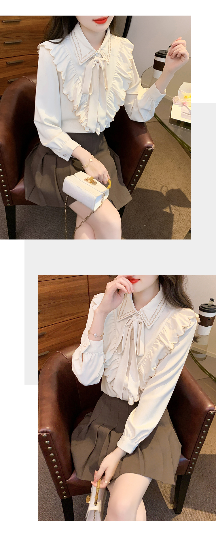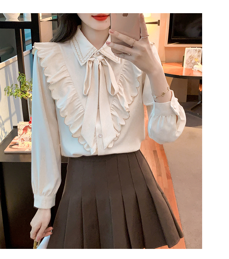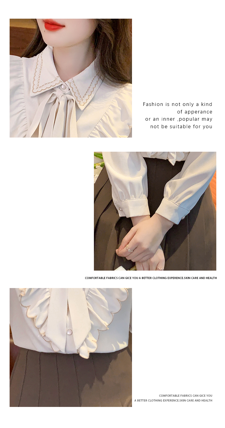 限量特惠|甜美刺繡翻領繫帶荷葉邊造型雪紡衫(02M2530)