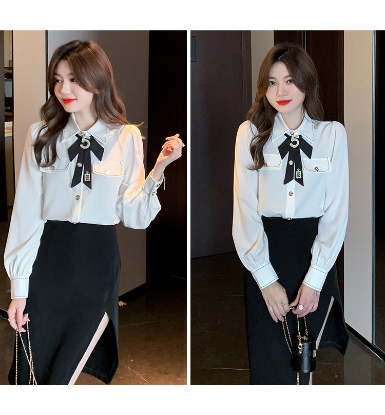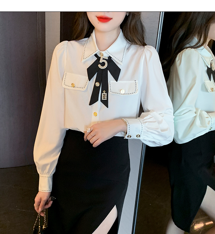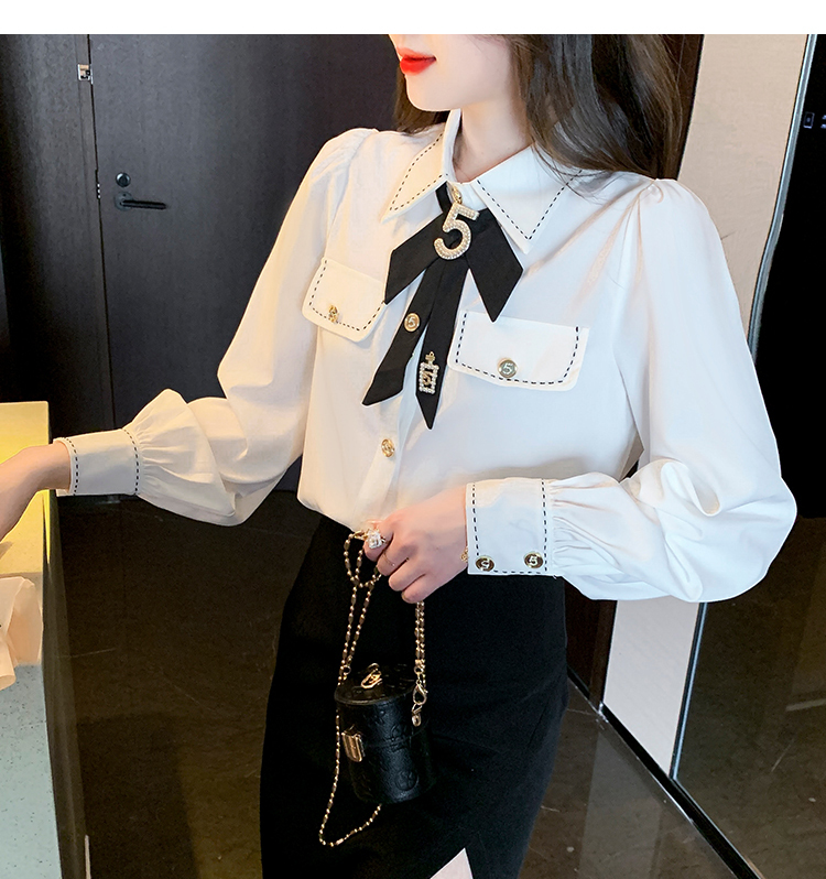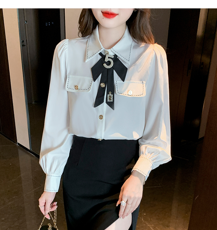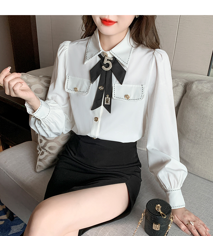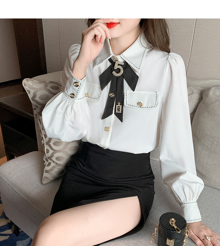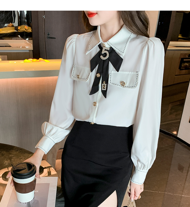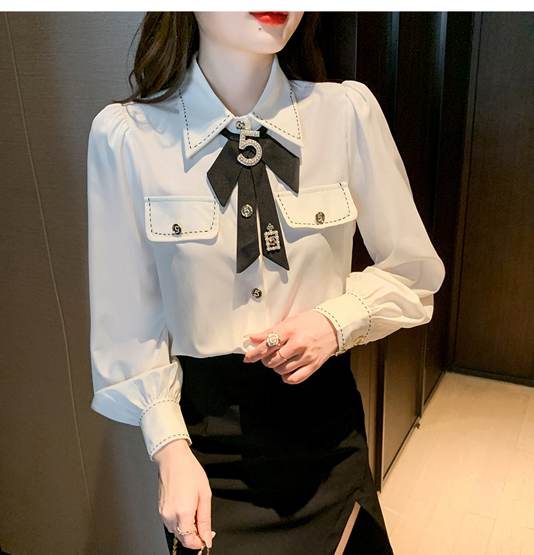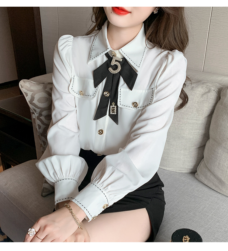限量特惠|日系甜美字母飄帶翻領雪紡衫(02M2541)
