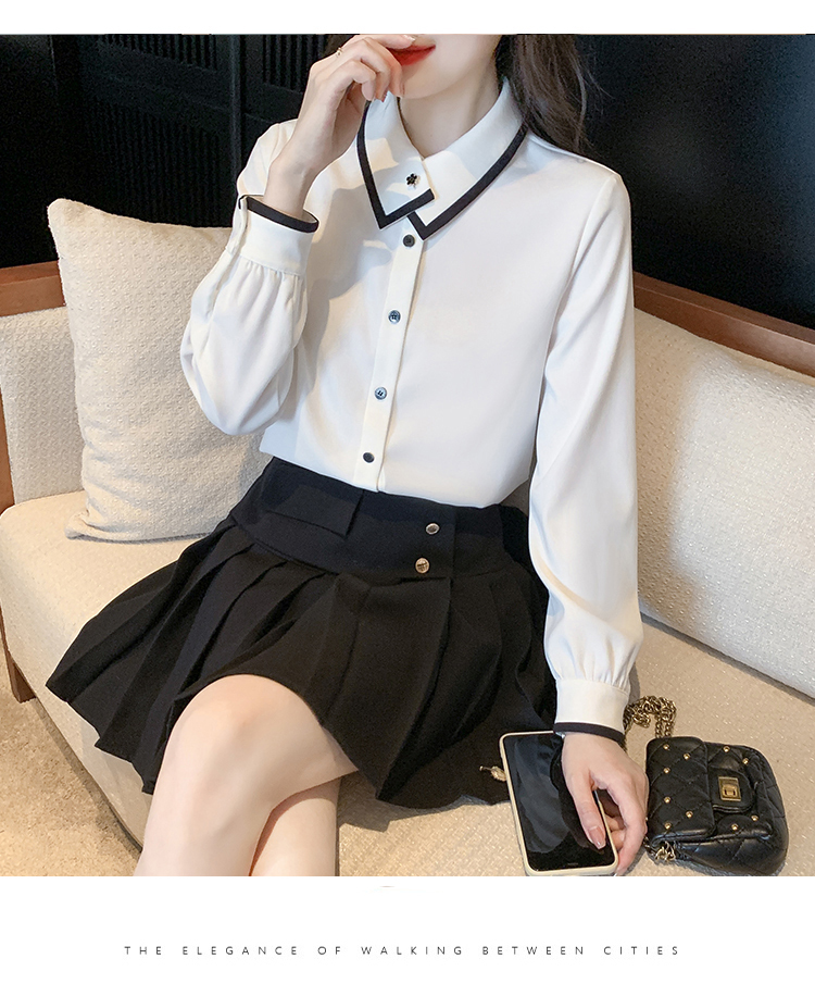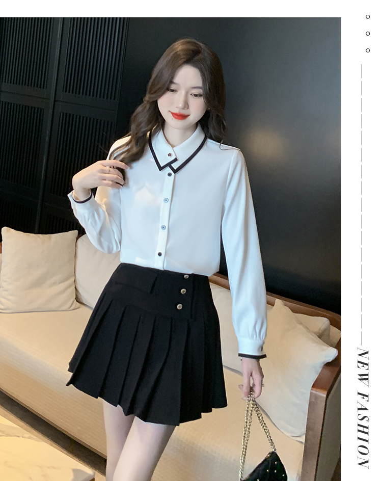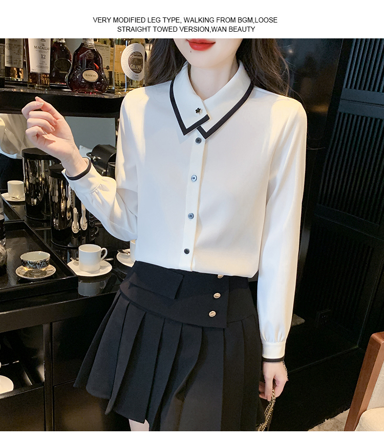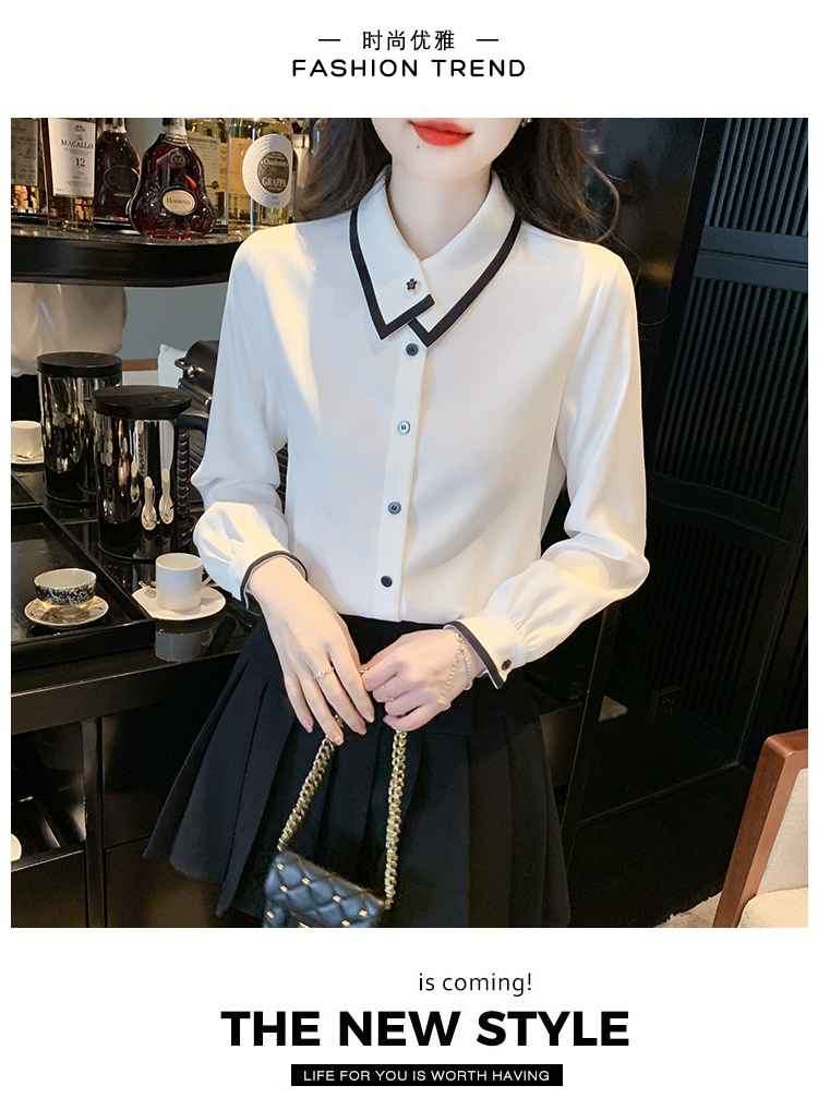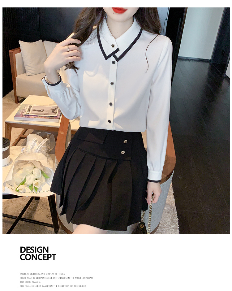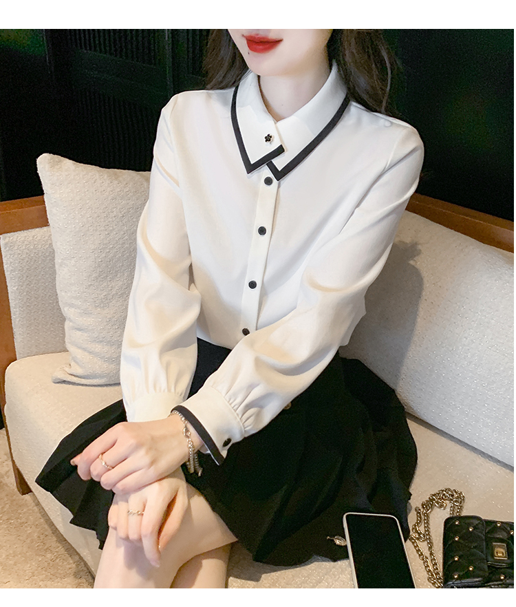 限量特惠|氣質撞色翻領雪紡衫(02M2543)