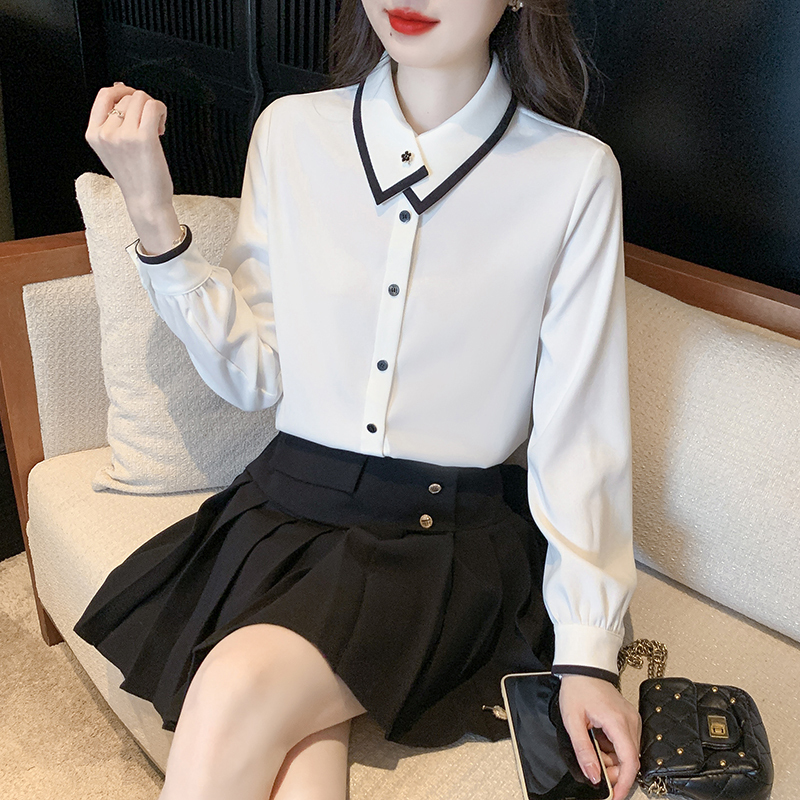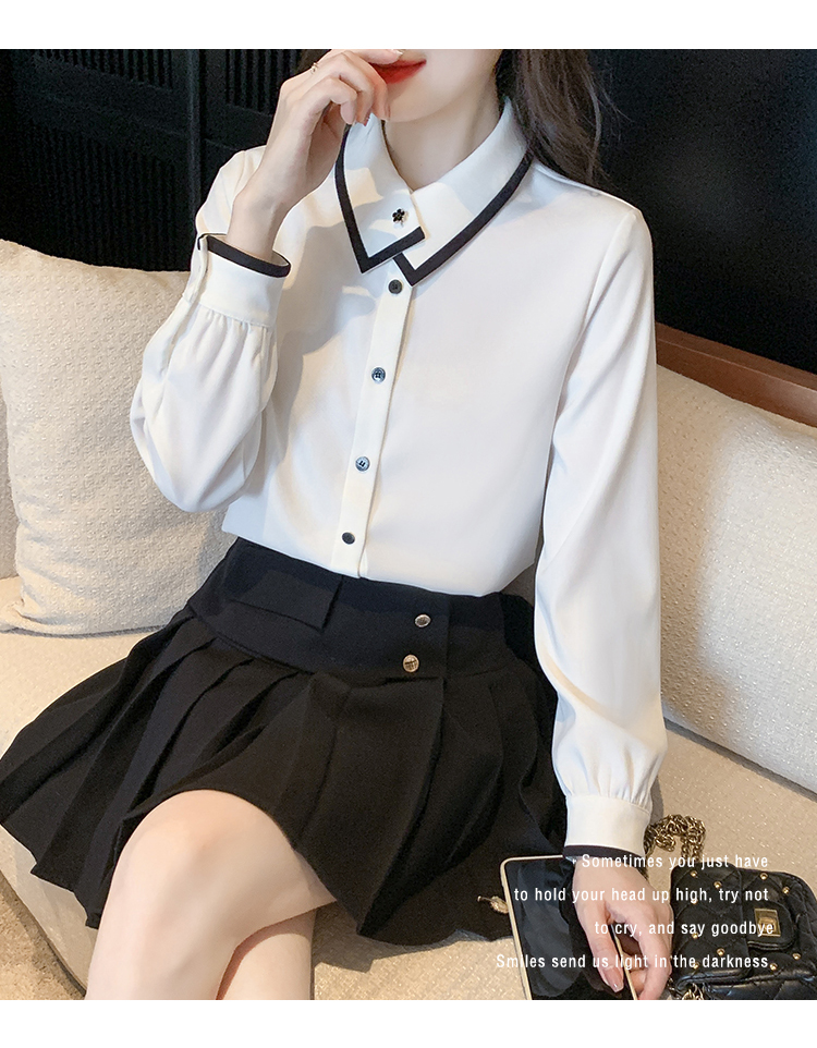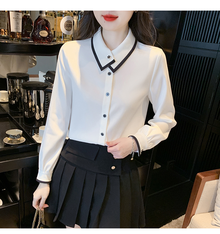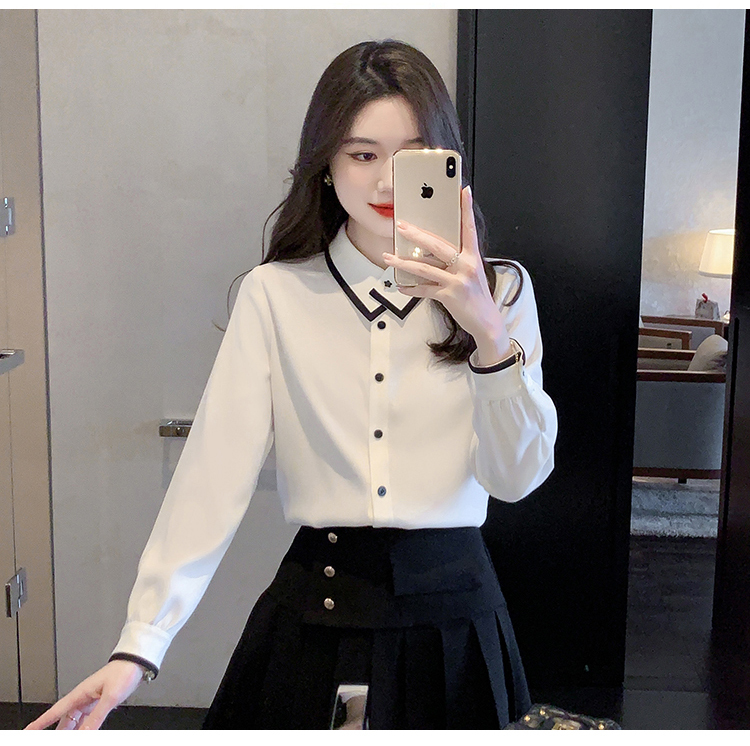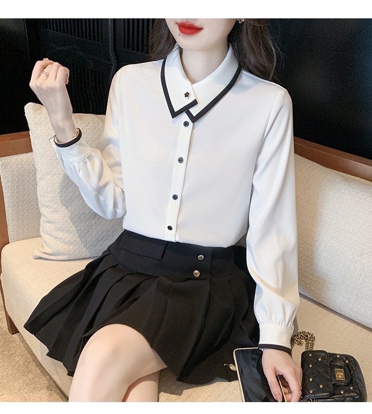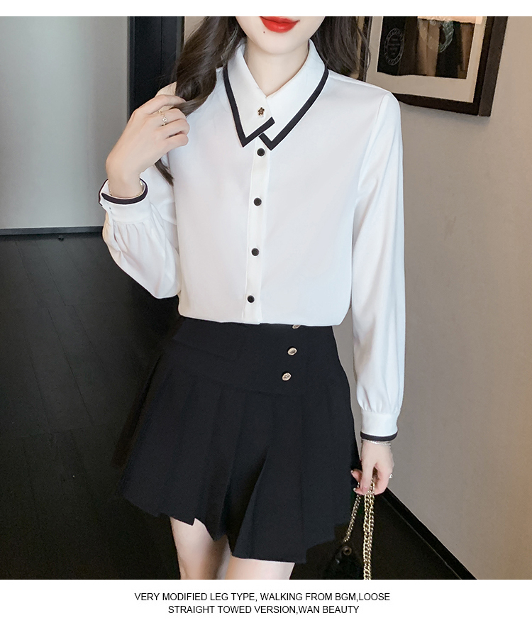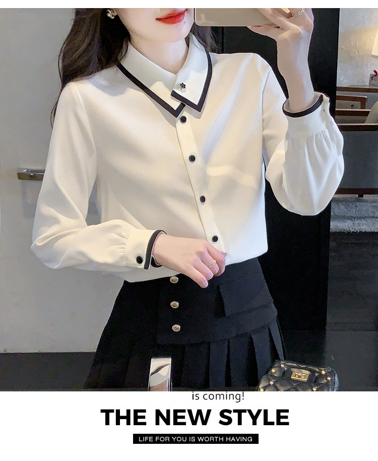 限量特惠|氣質撞色翻領雪紡衫(02M2543)
