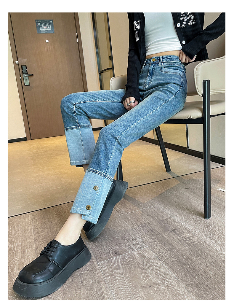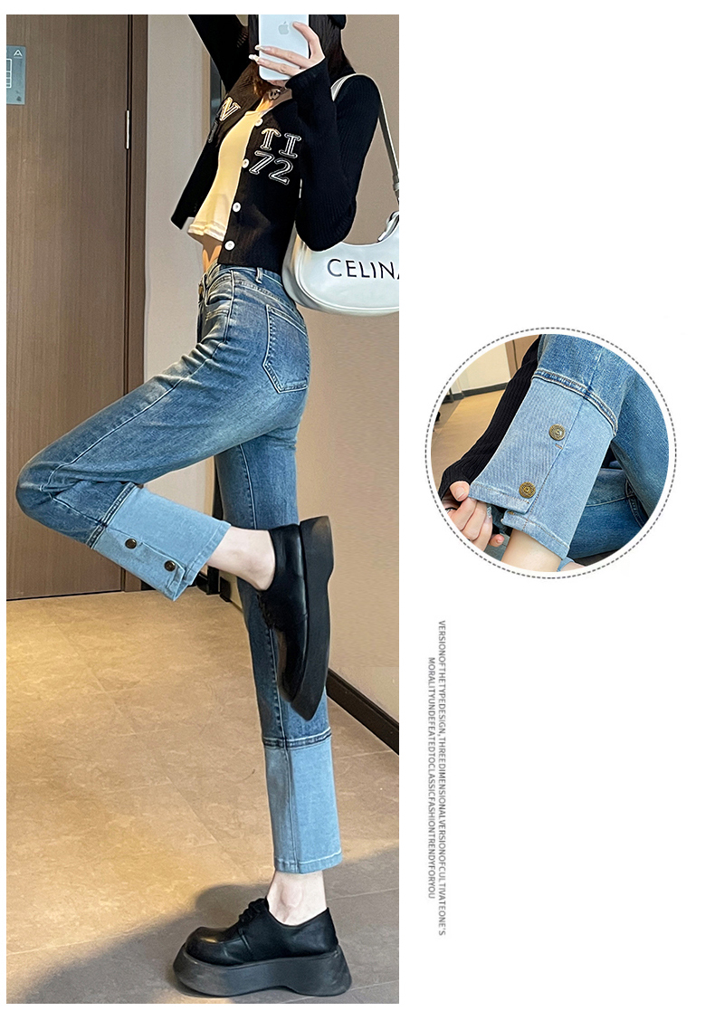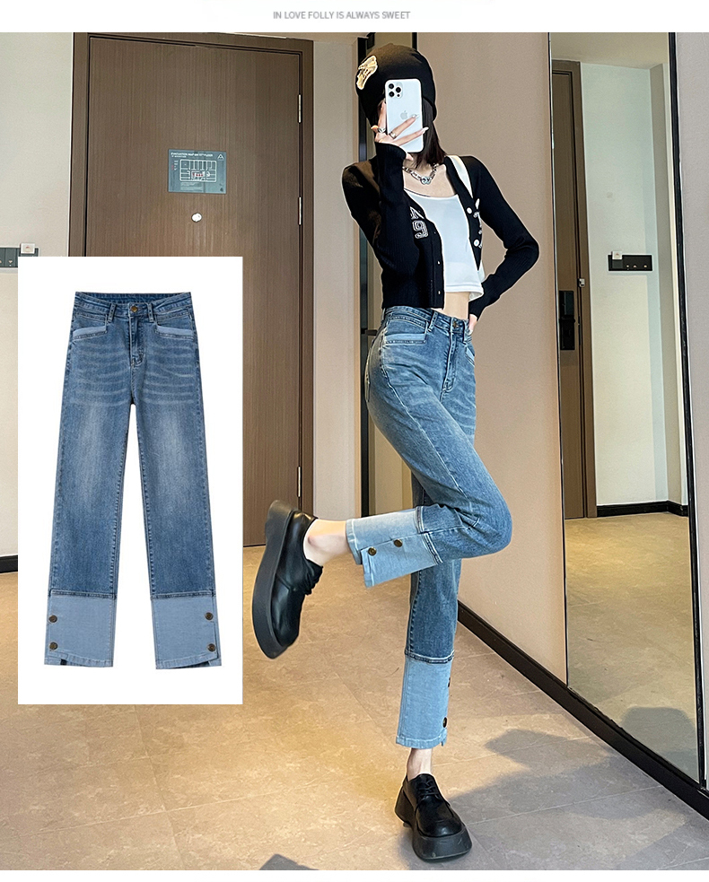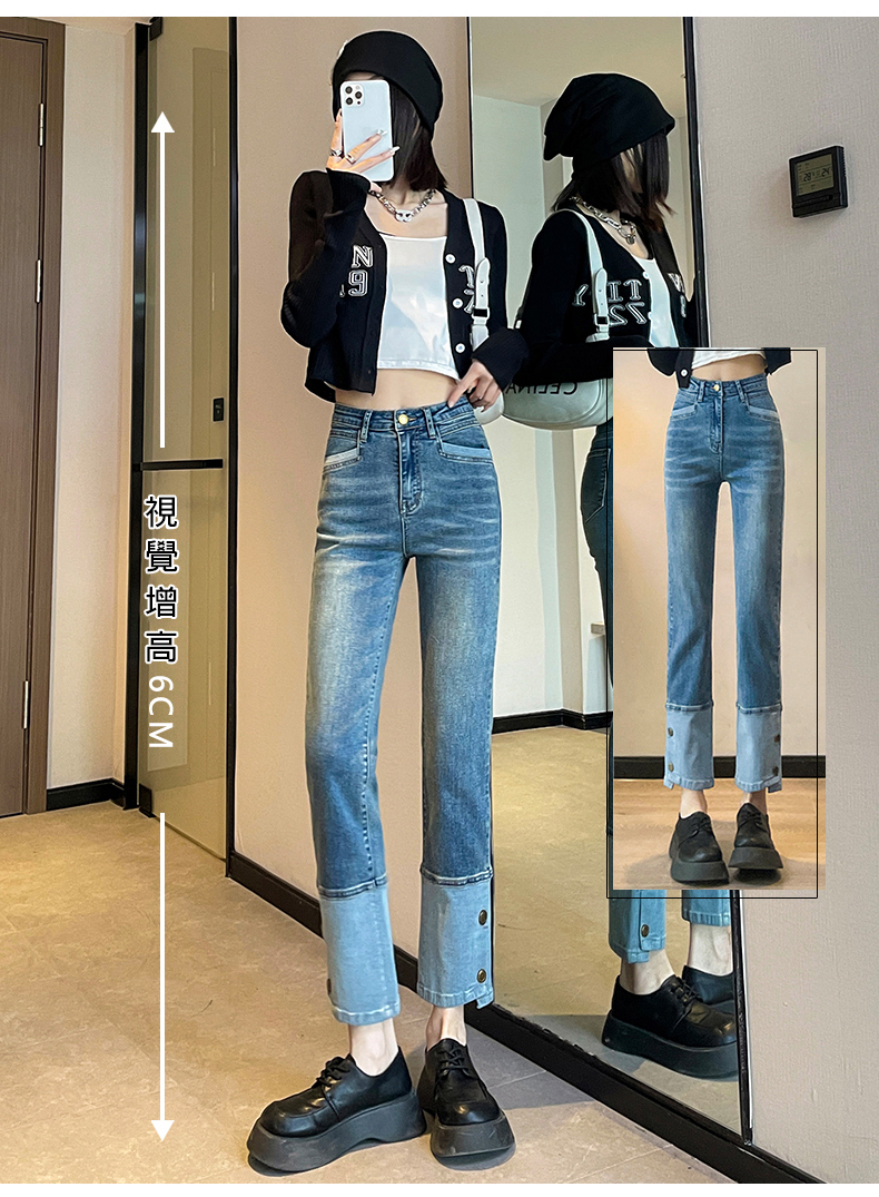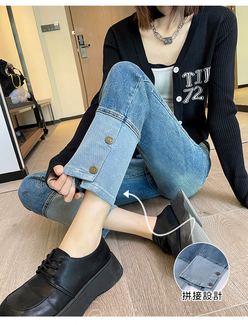限量特惠|舒適百搭復古褲腳撞色9分牛仔褲(02M2545)