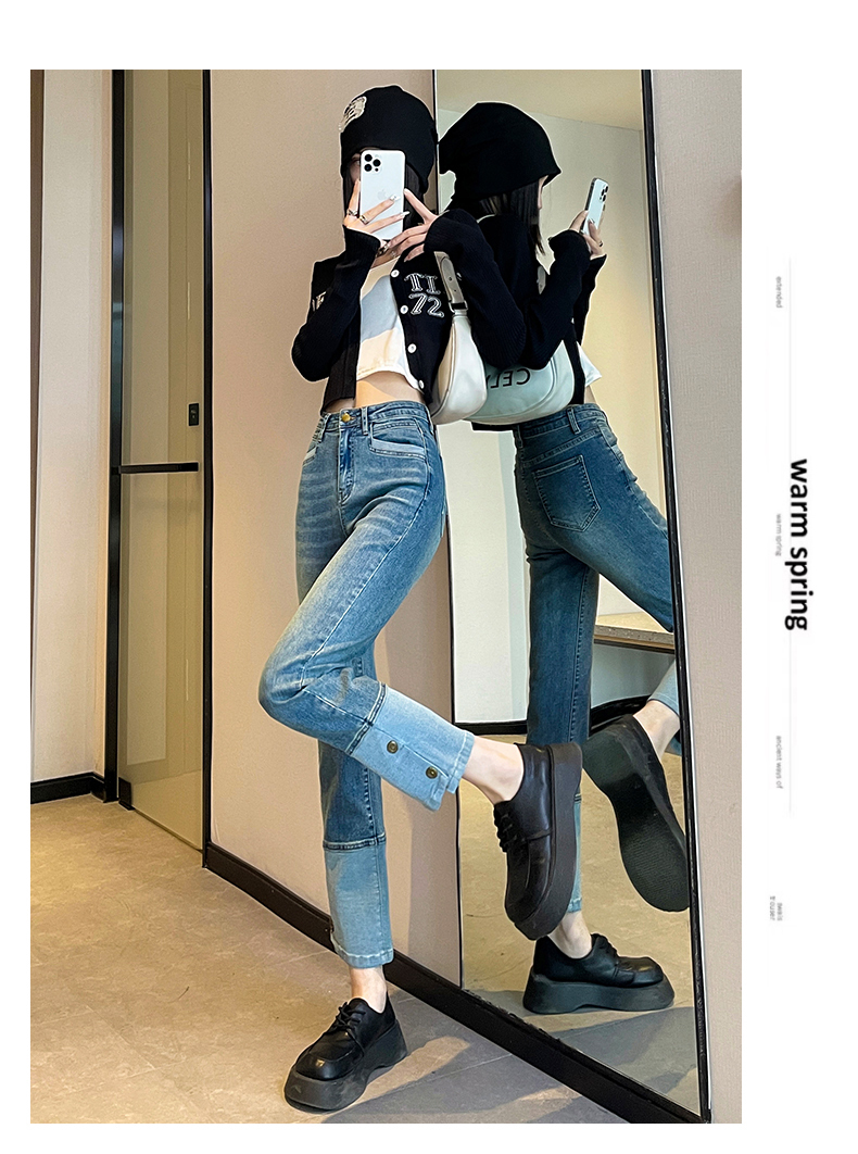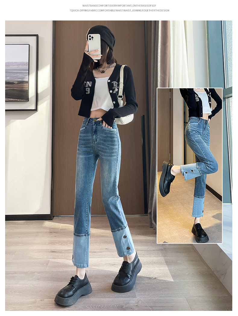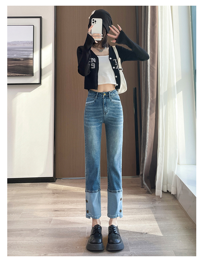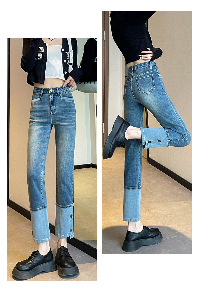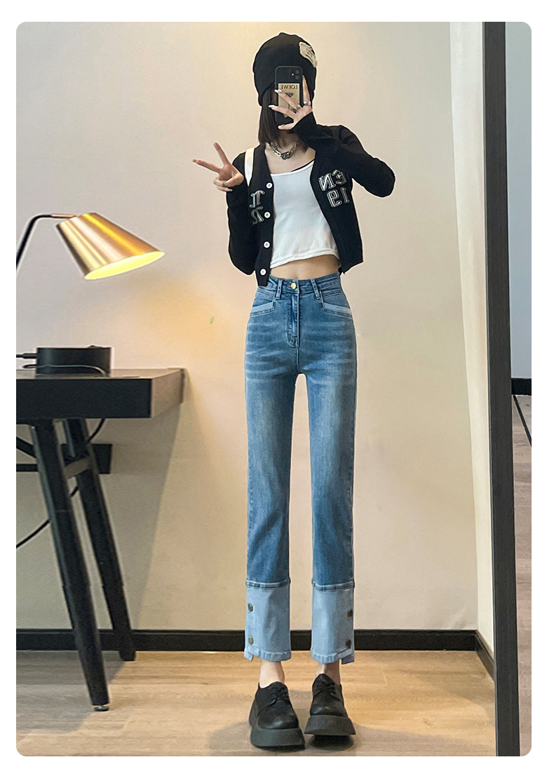 限量特惠|舒適百搭復古褲腳撞色9分牛仔褲(02M2545)