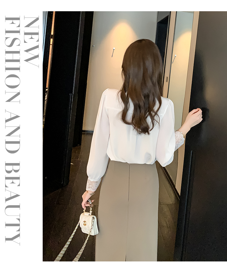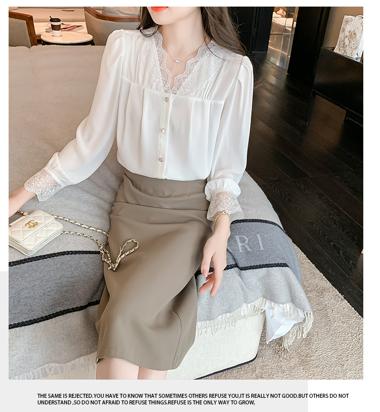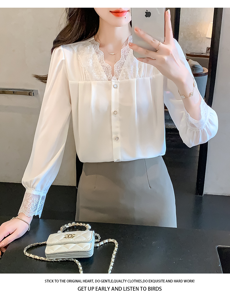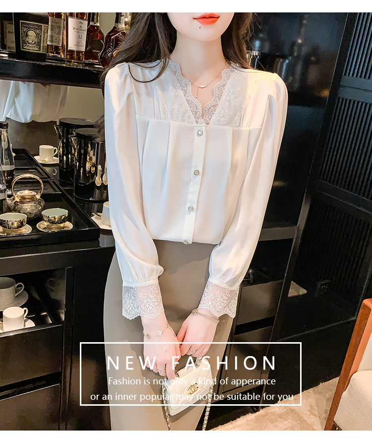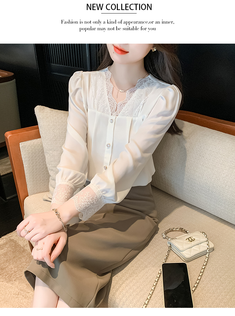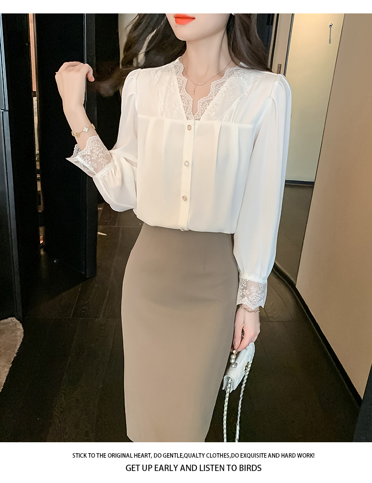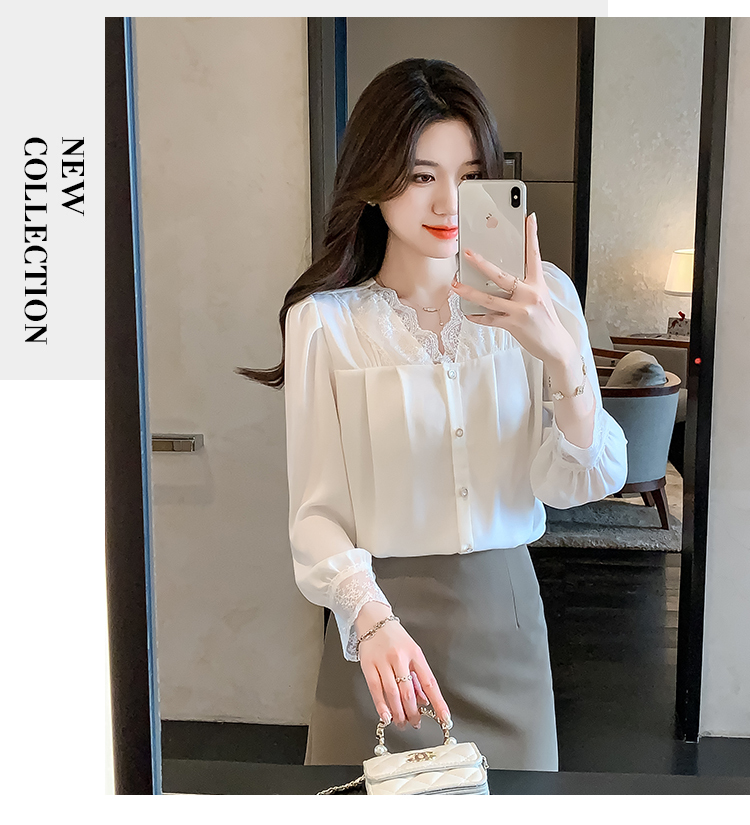 限量特惠|氣質V領拼接蕾絲抓褶雪紡衫(02M2549)