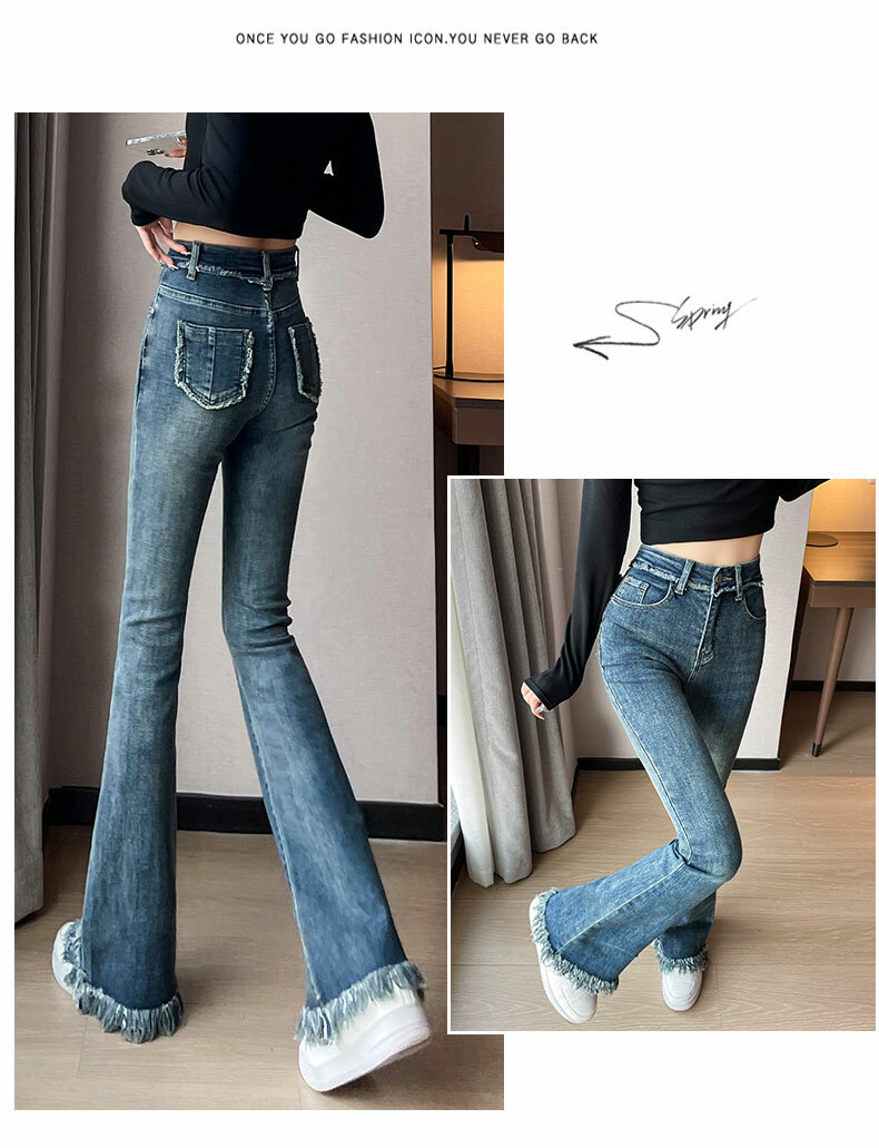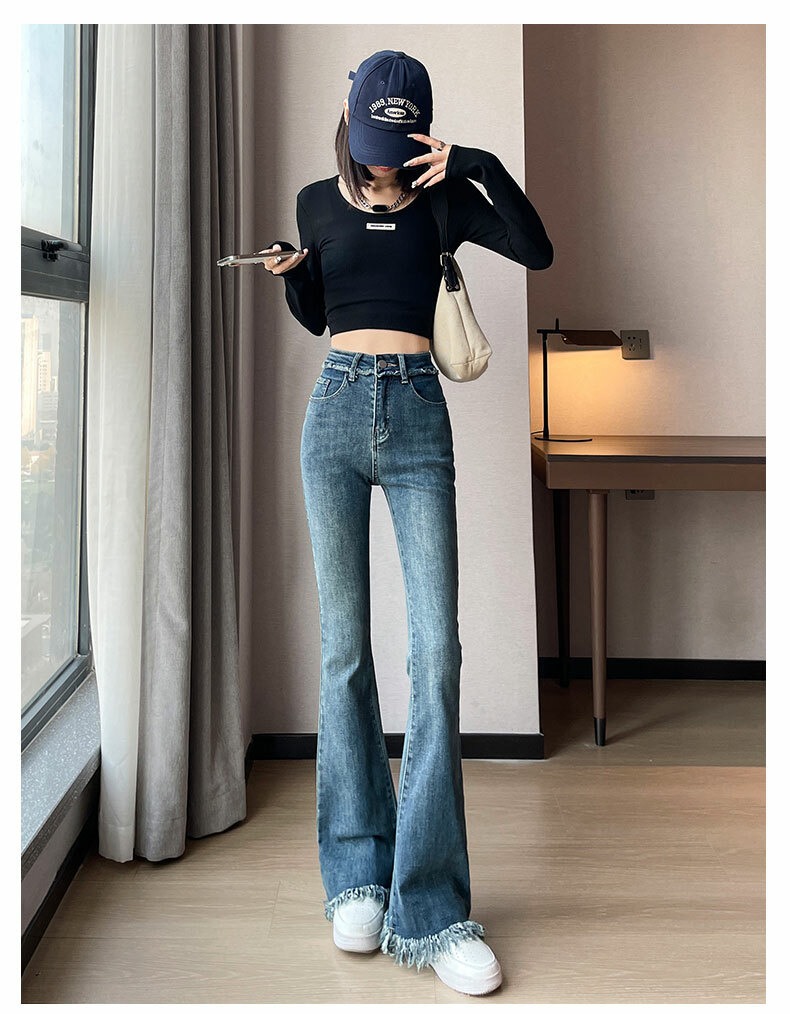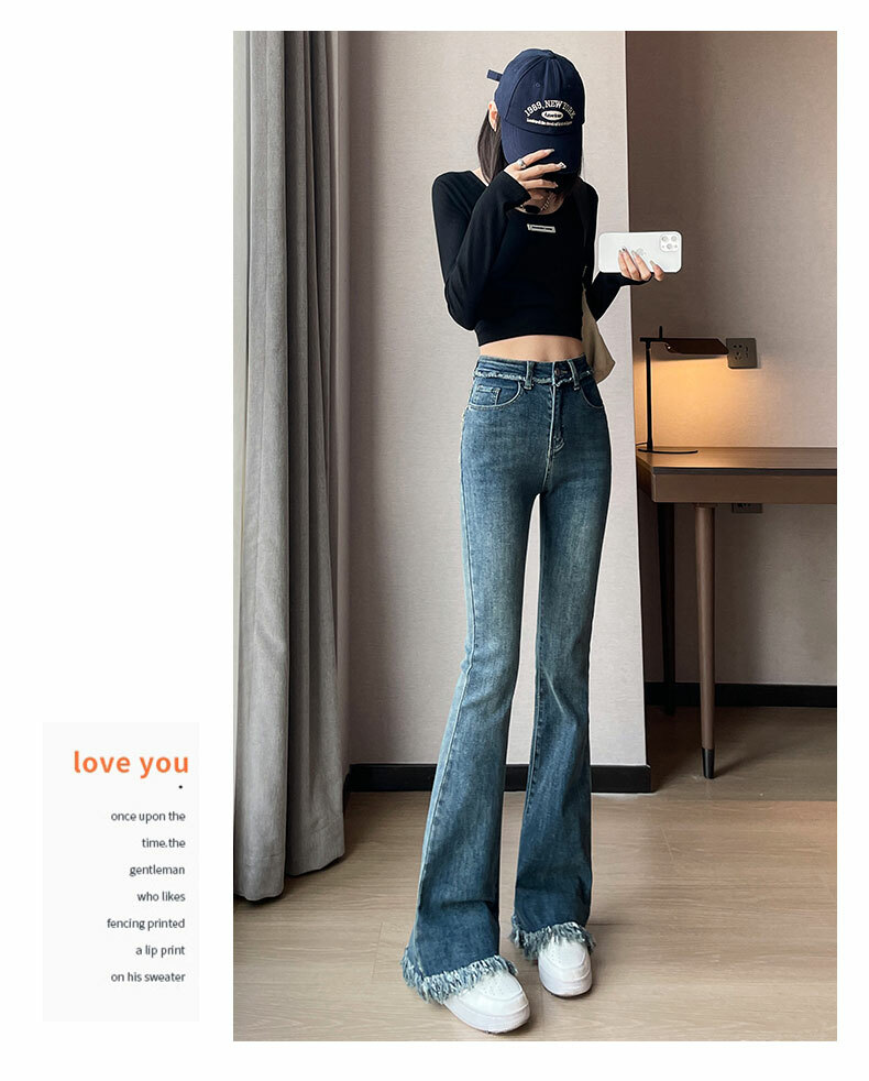 限量特惠|個性刷毛邊顯瘦牛仔喇叭褲(02M2553)