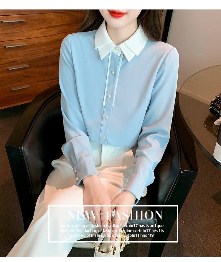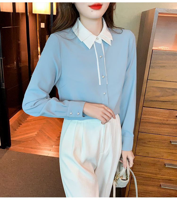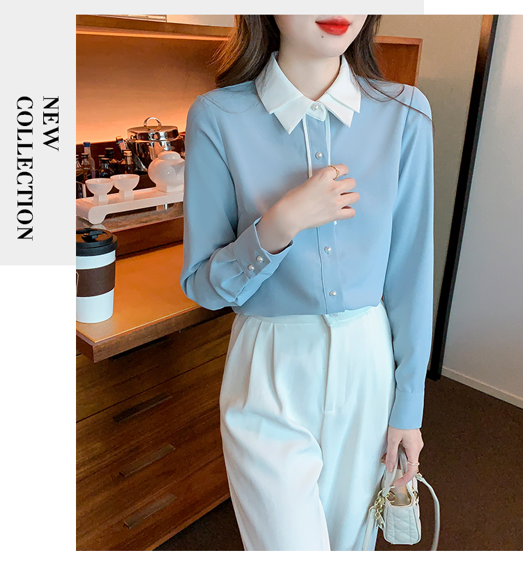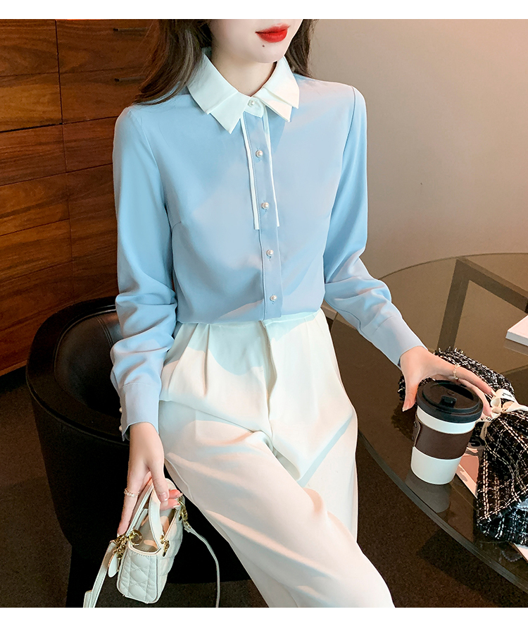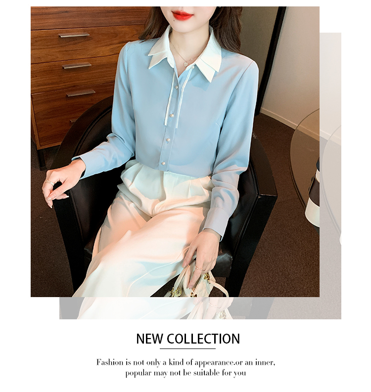 限量特惠|氣質職感撞色雙翻領雪紡衫(02M2568)