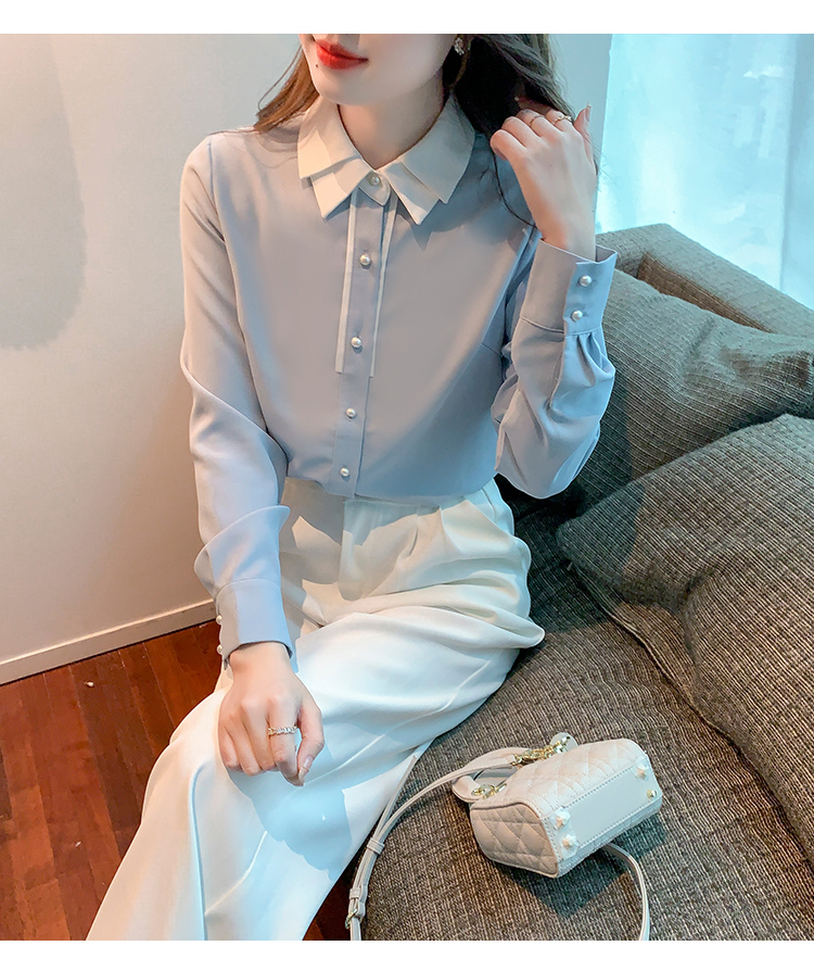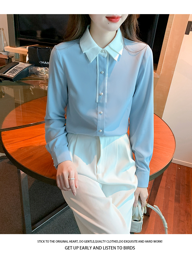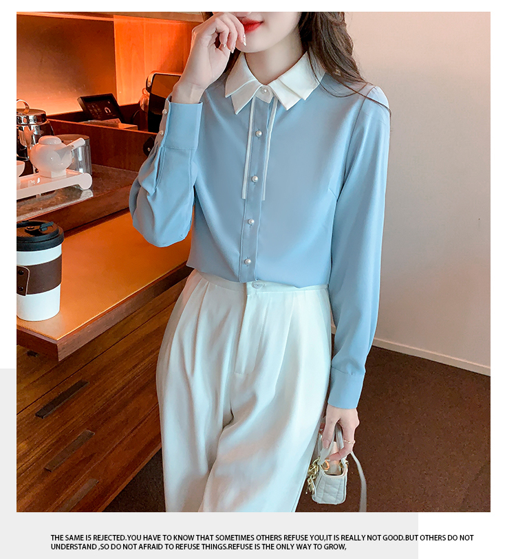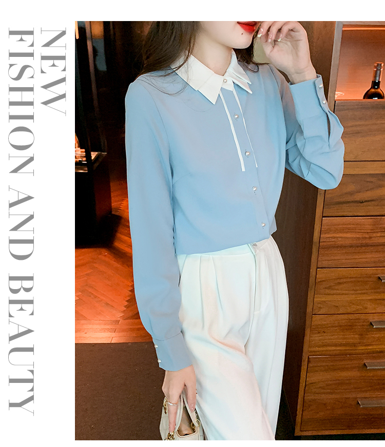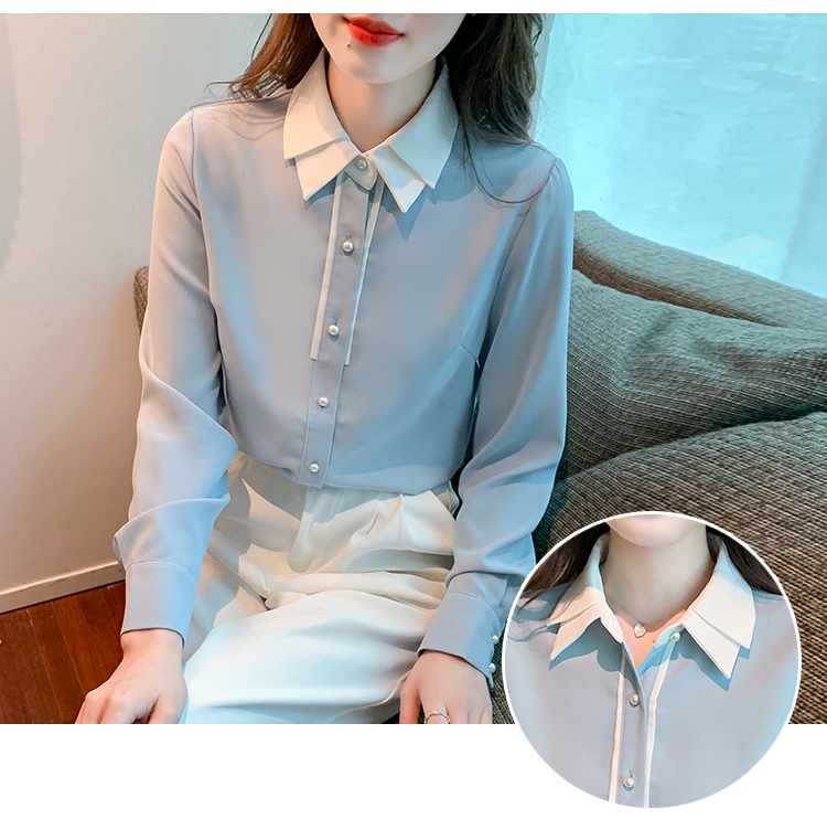 限量特惠|氣質職感撞色雙翻領雪紡衫(02M2568)