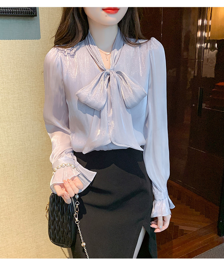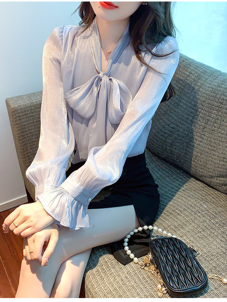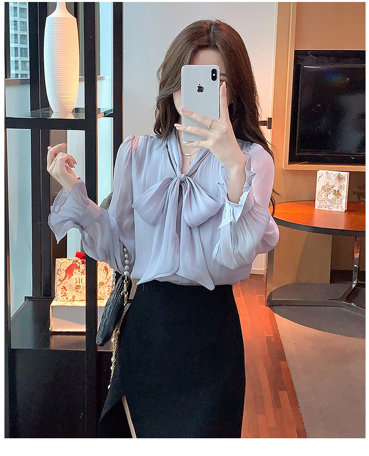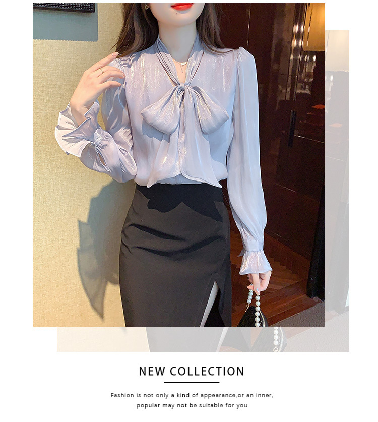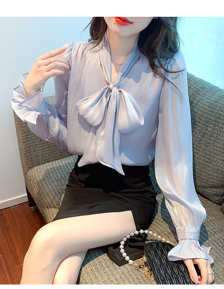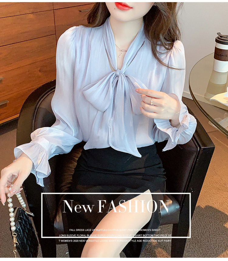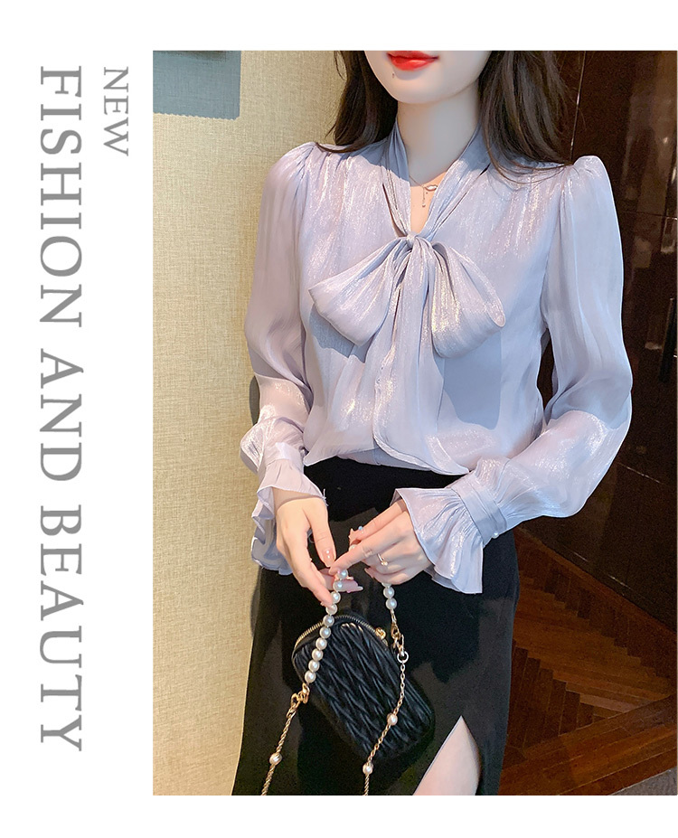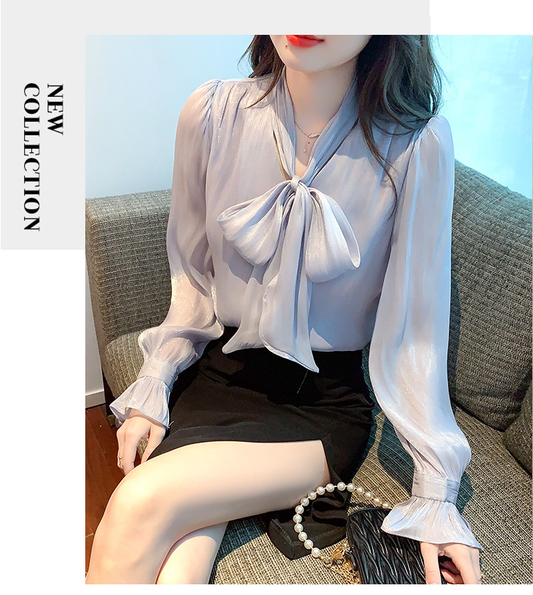 限量特惠|氣質繫帶光澤感雪紡衫(02M2569)
