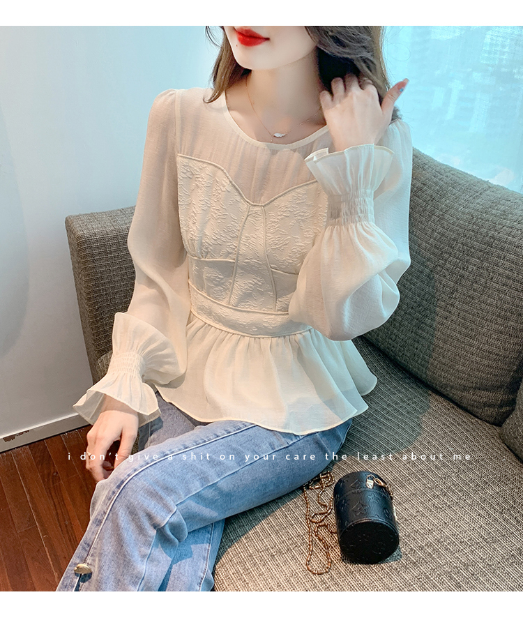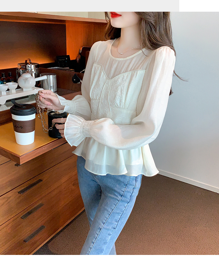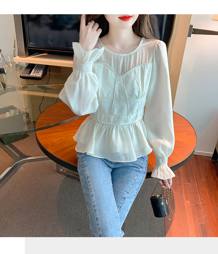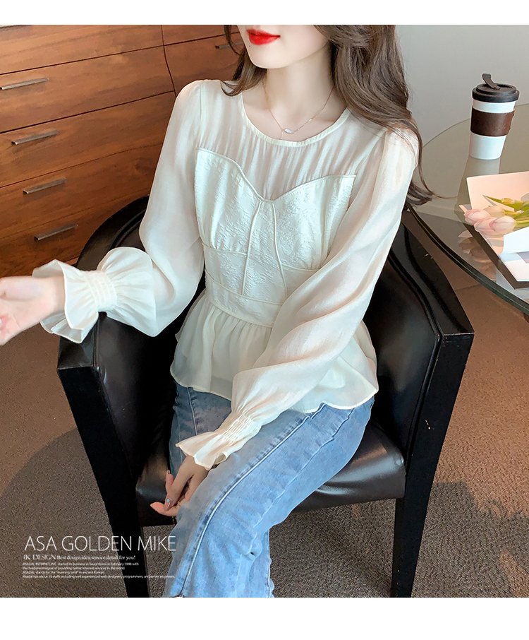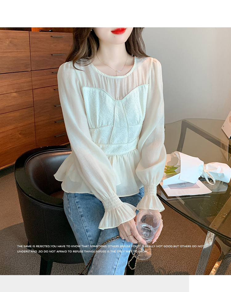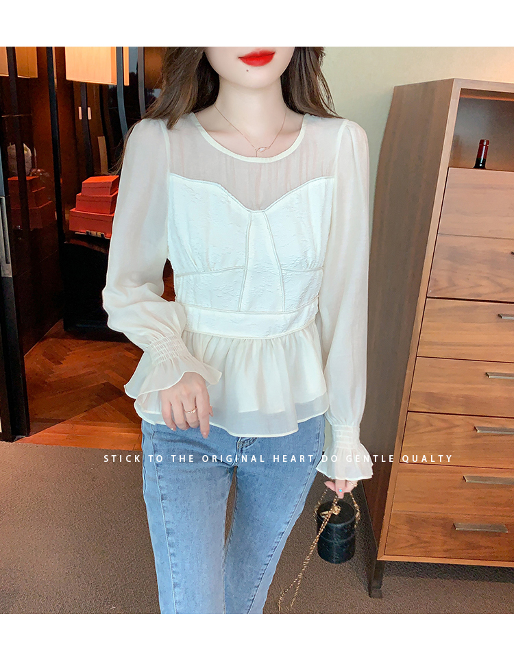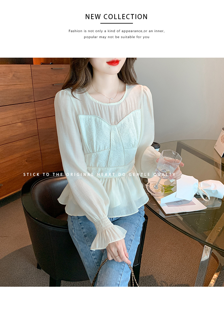 限量特惠|氣質拼接壓紋收腰藏肉雪紡衫(02M2593)
