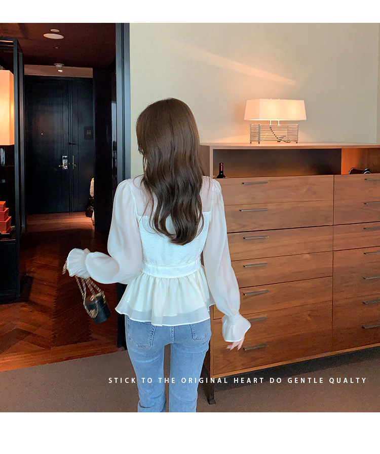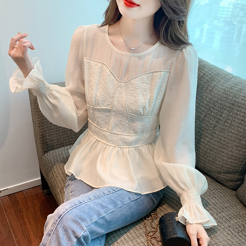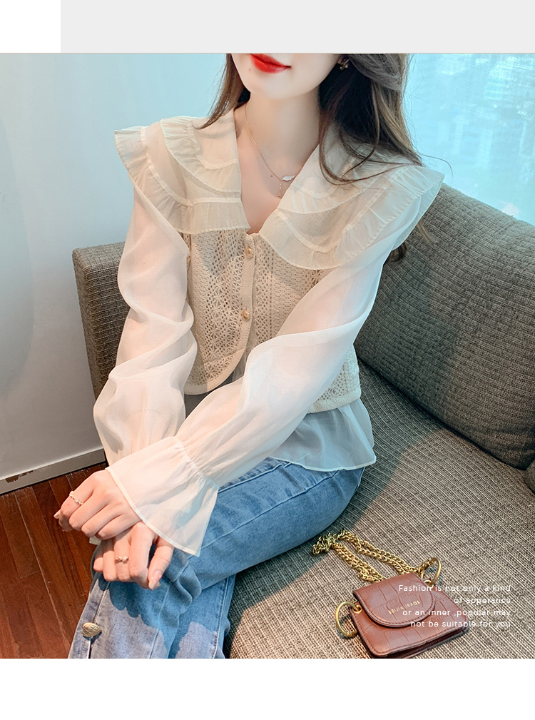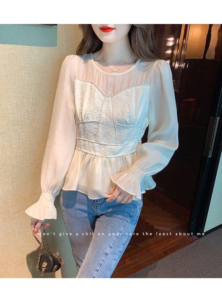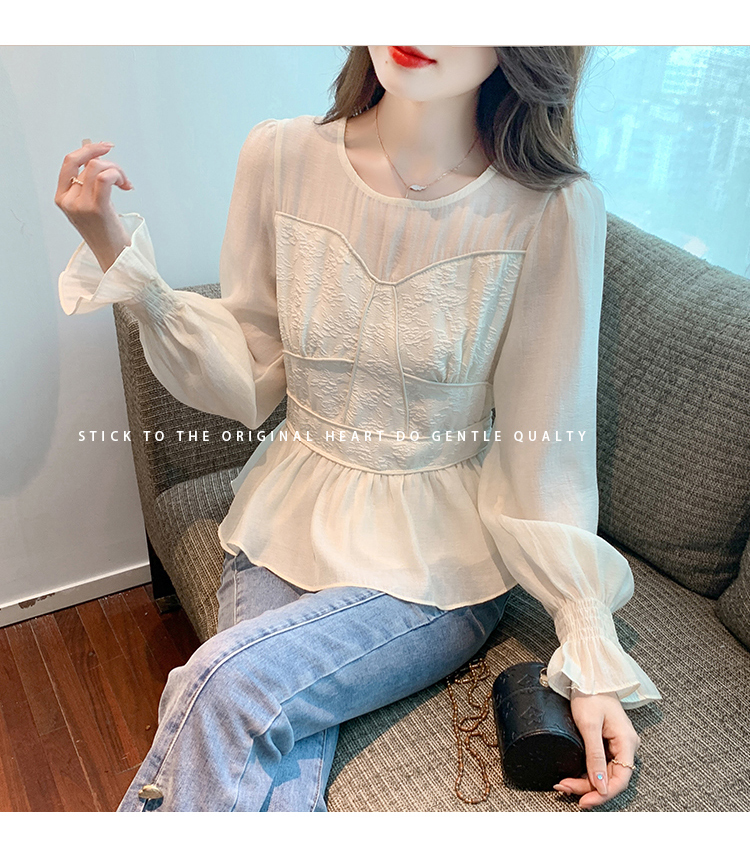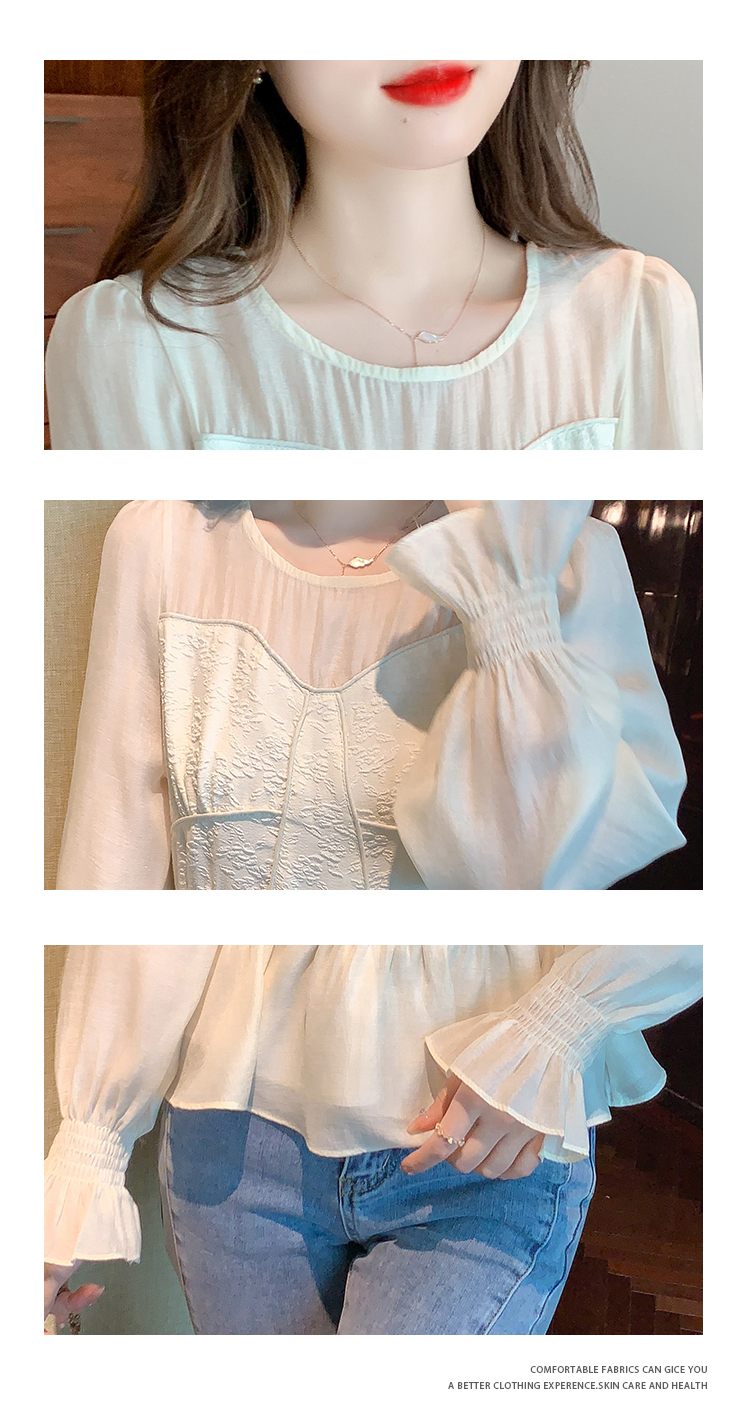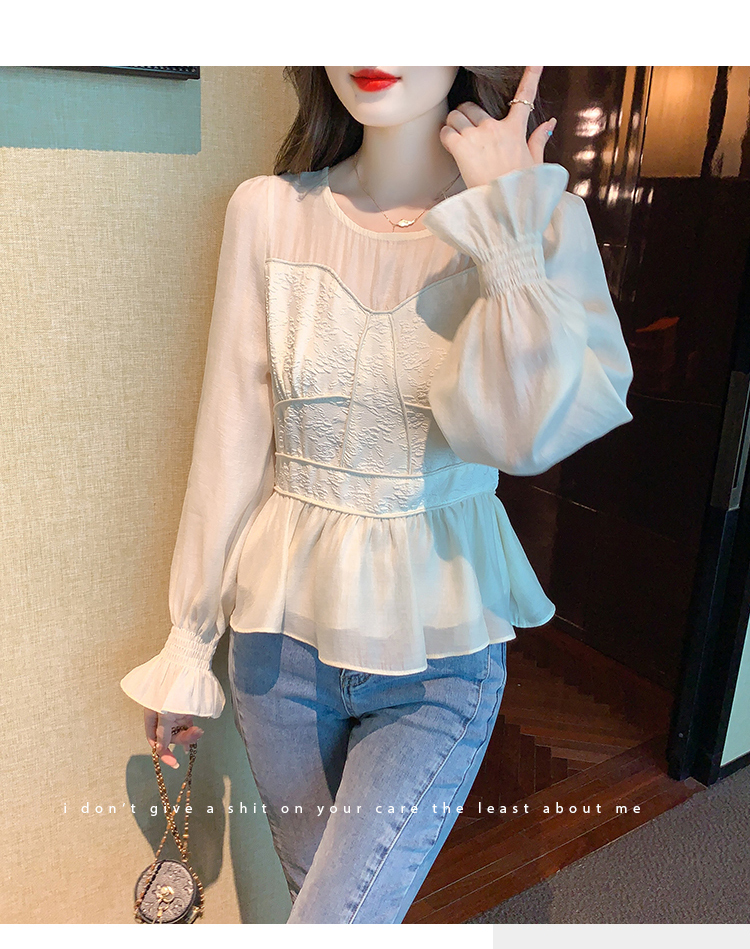 限量特惠|氣質拼接壓紋收腰藏肉雪紡衫(02M2593)