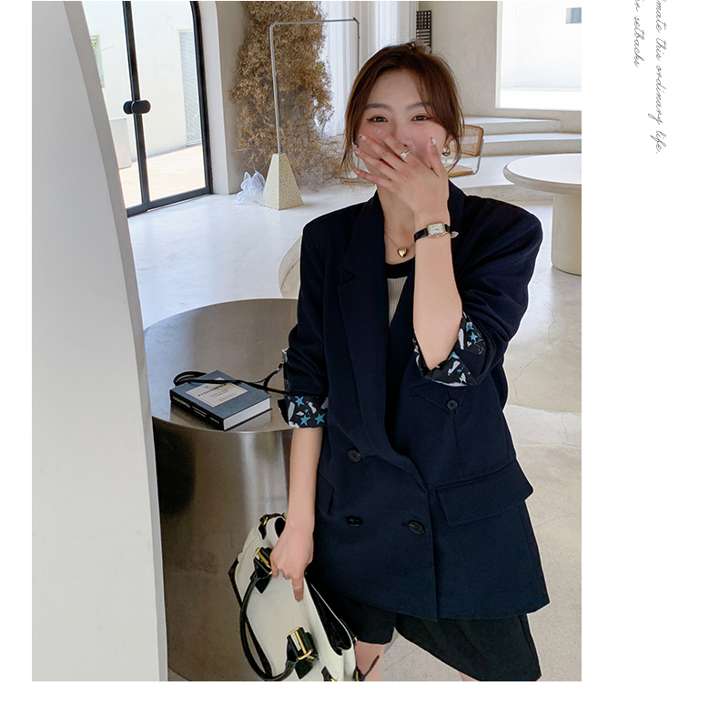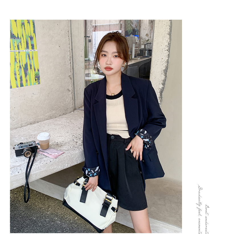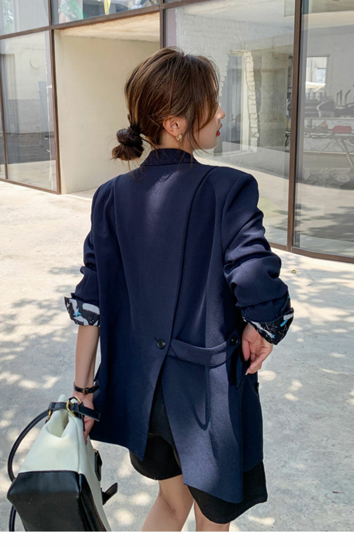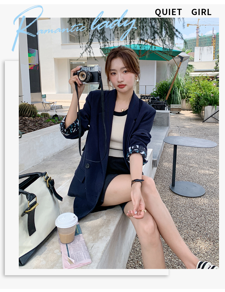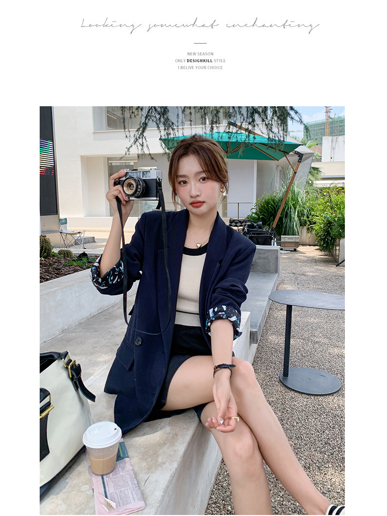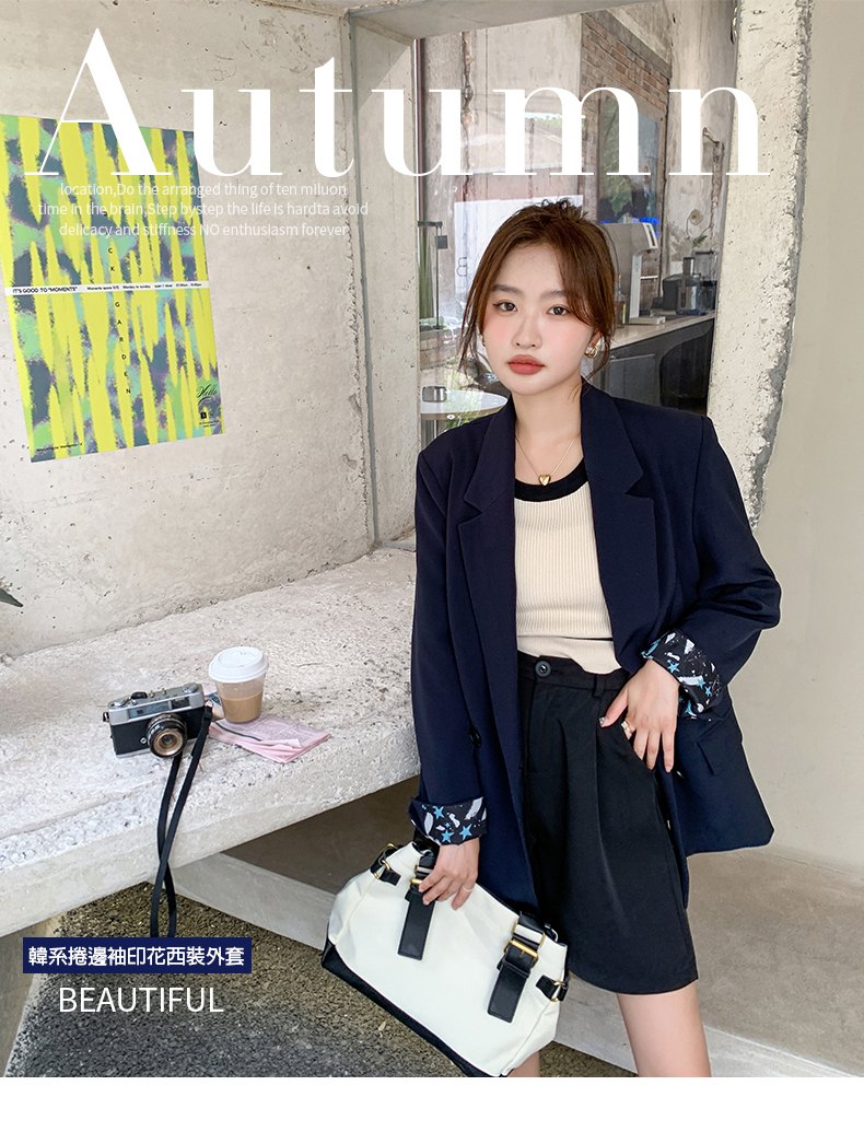 獨家訂製│率性袖口捲邊印花造型西裝外套(02M2663)