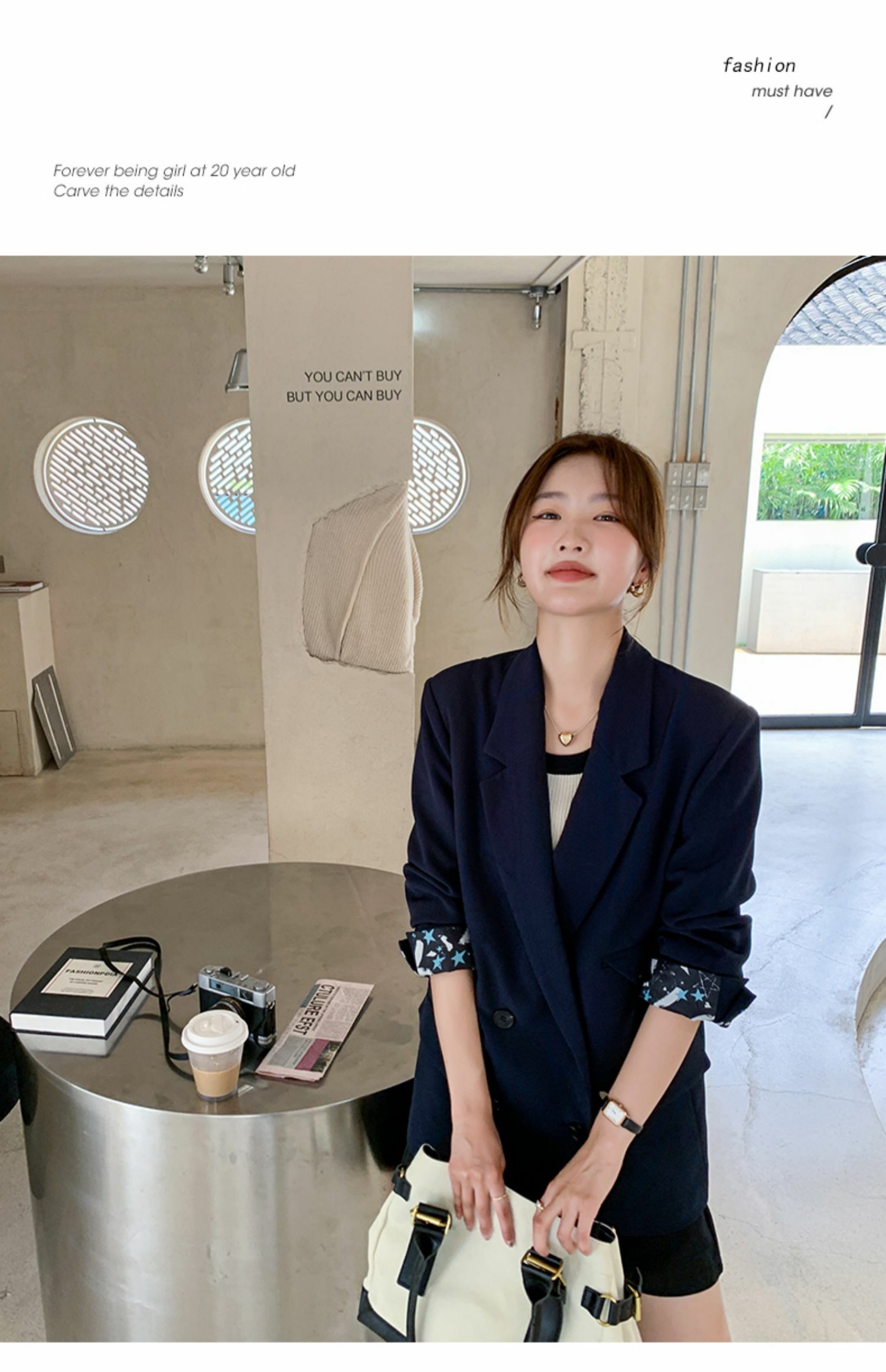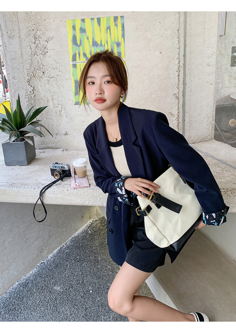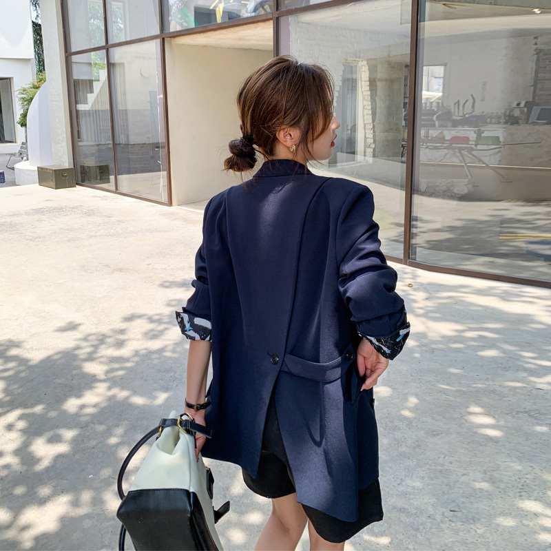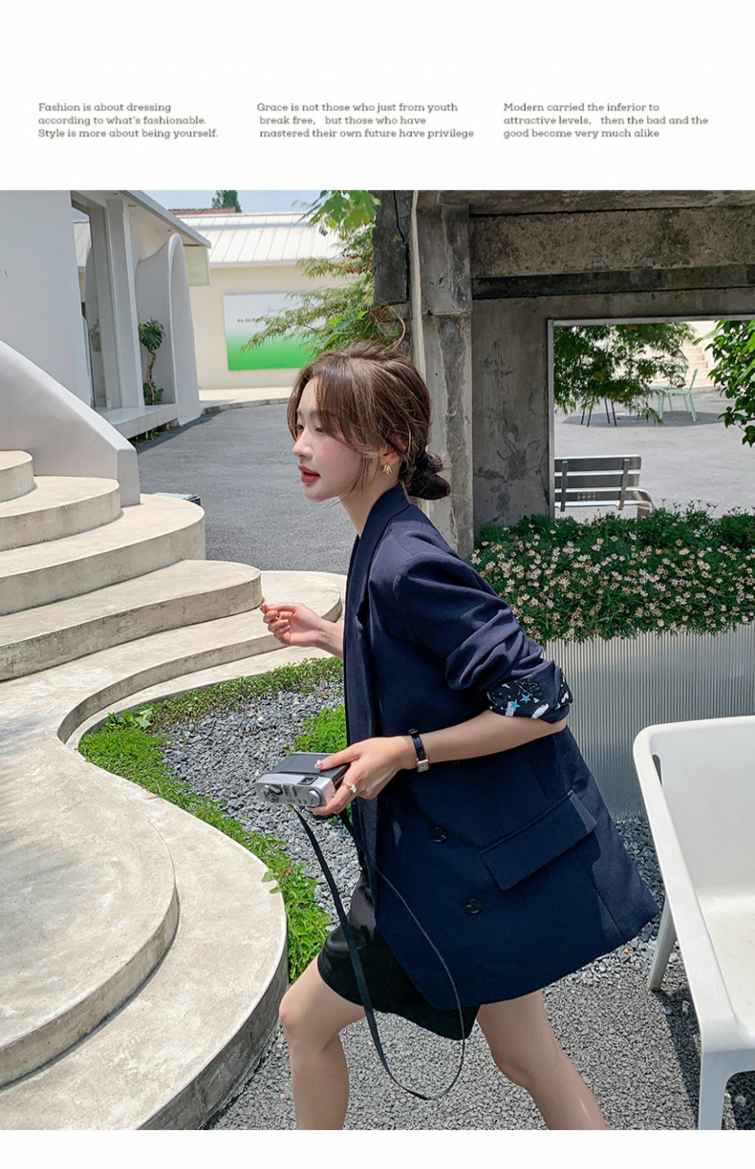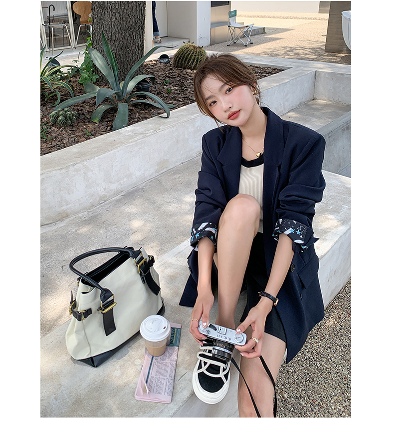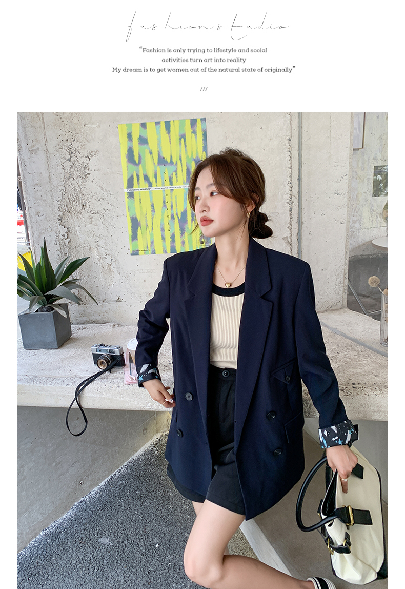 獨家訂製│率性袖口捲邊印花造型西裝外套(02M2663)