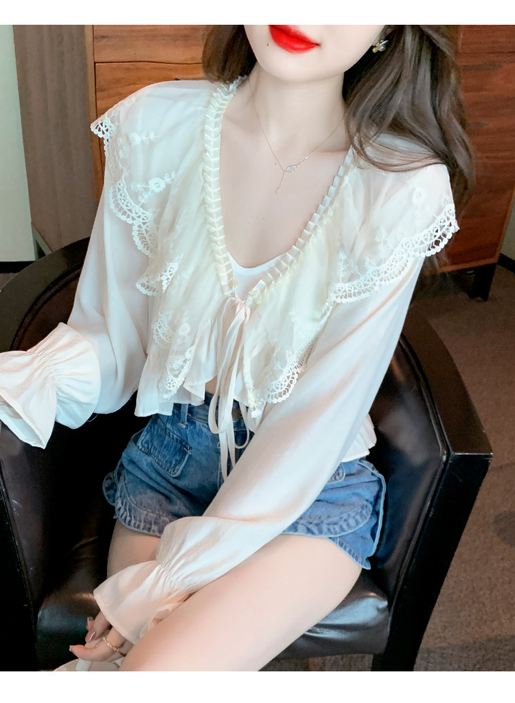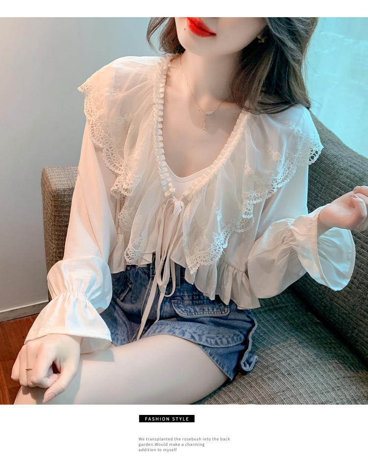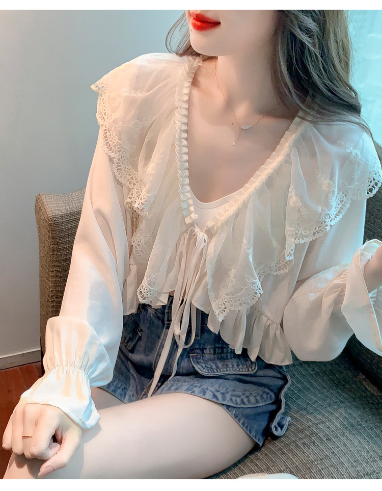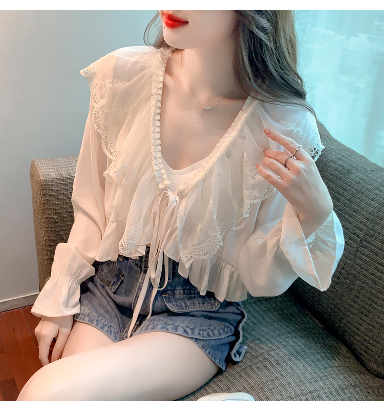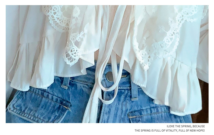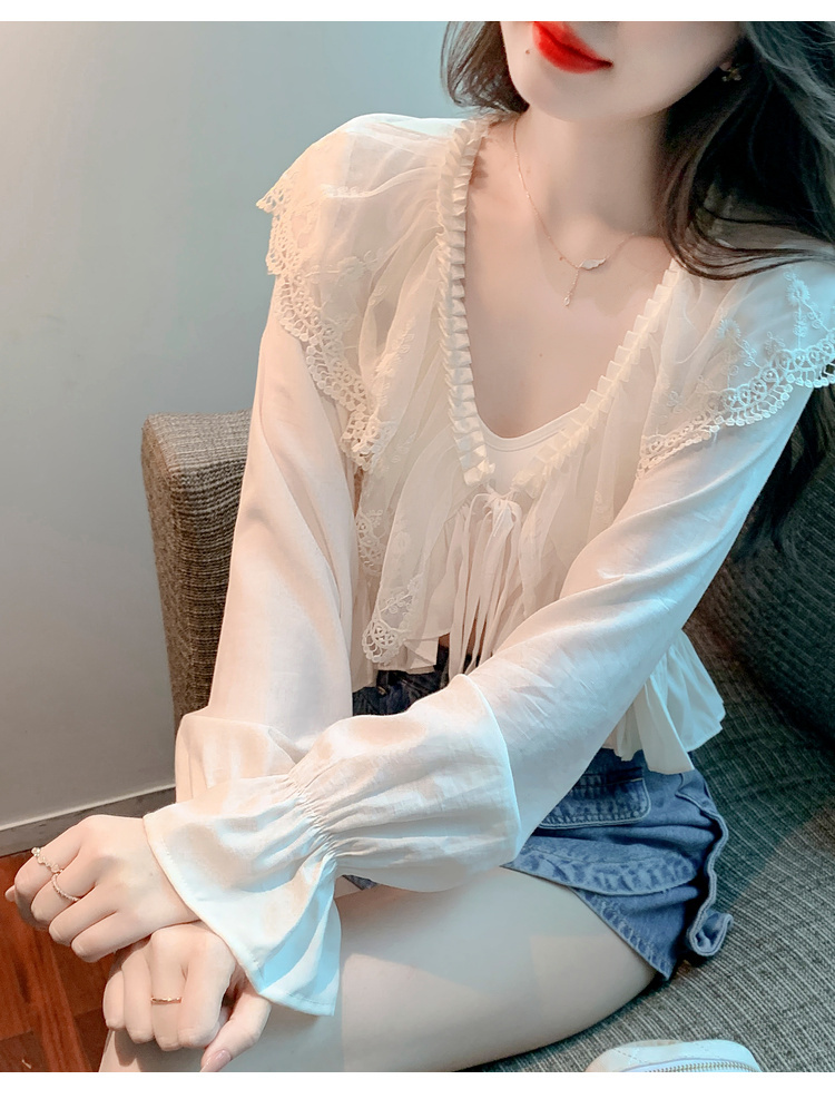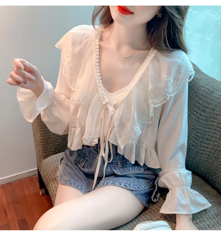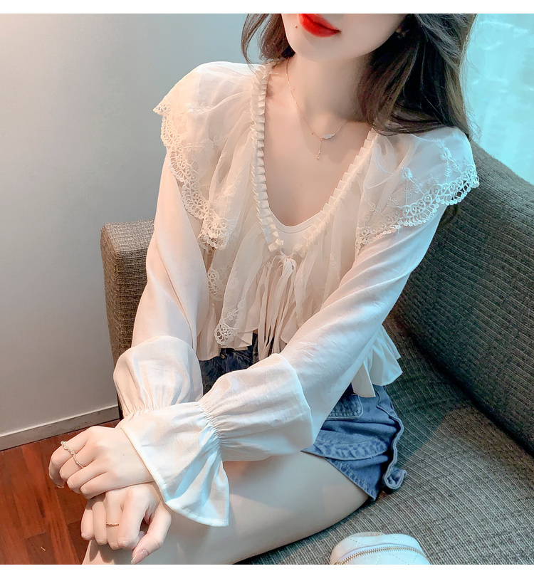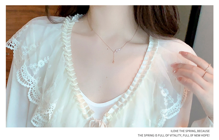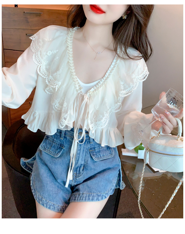 限量特惠|甜美拼接蕾絲繫帶造型雪紡罩衫(02M2699)