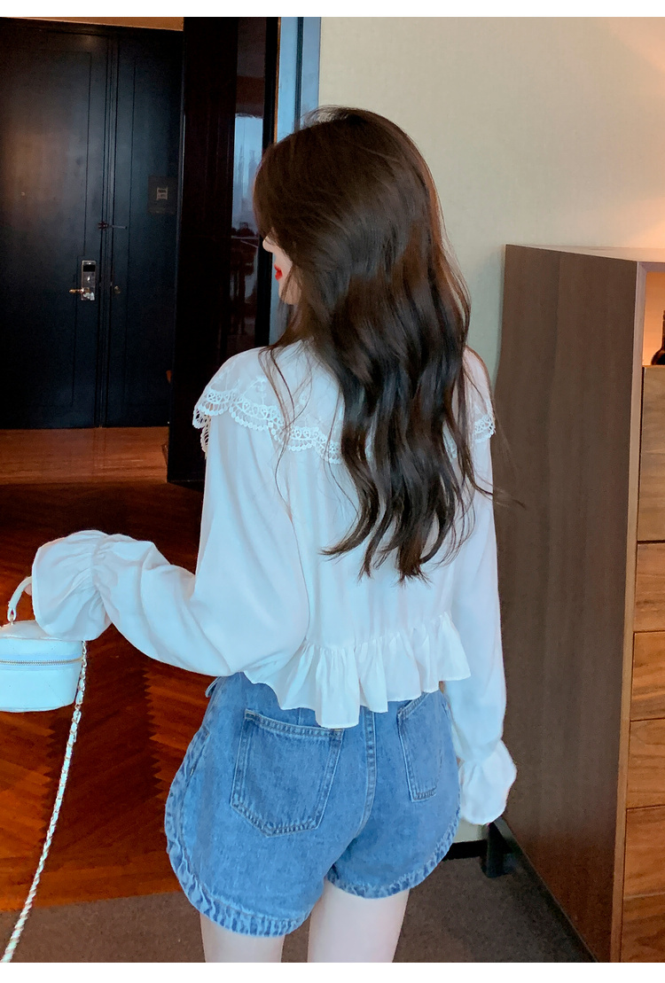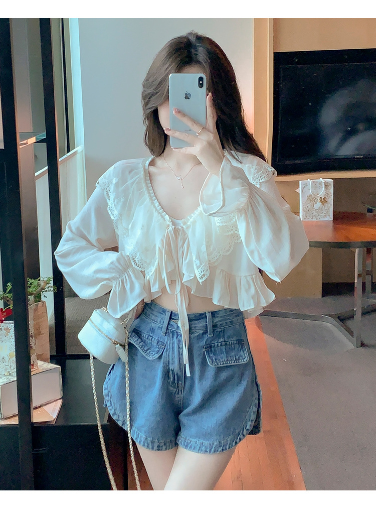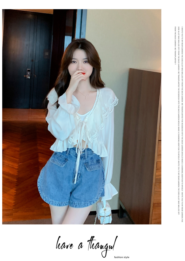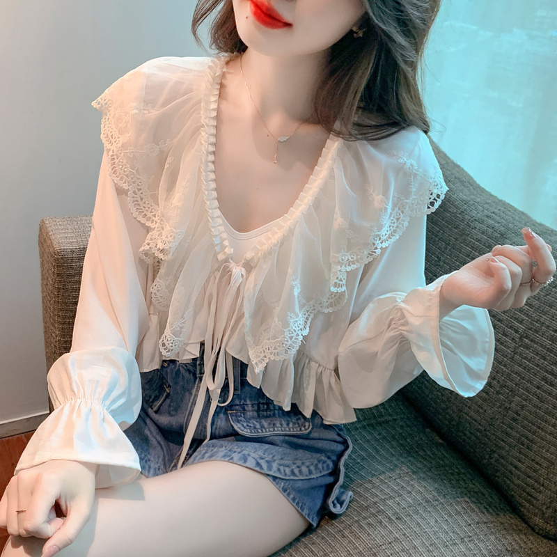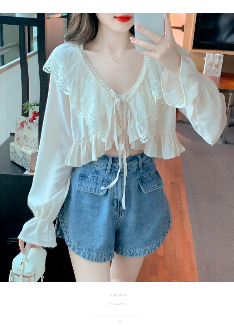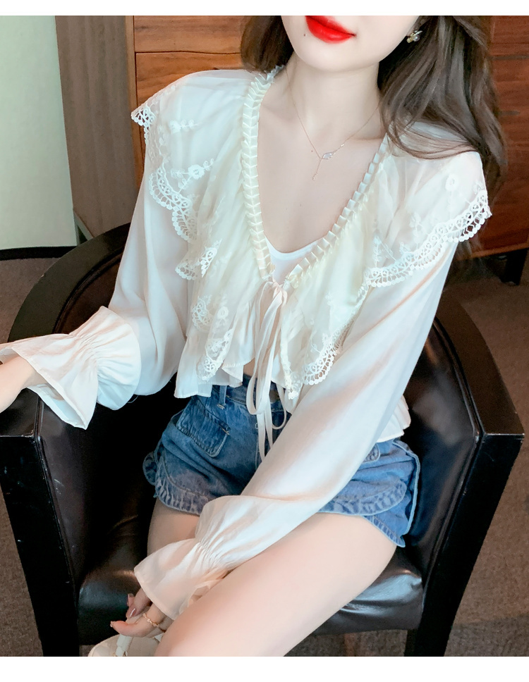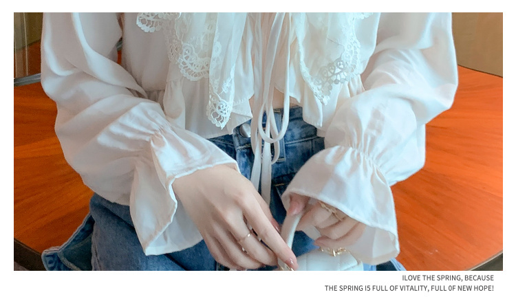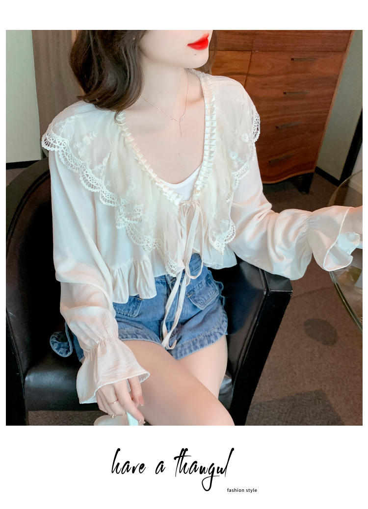 限量特惠|甜美拼接蕾絲繫帶造型雪紡罩衫(02M2699)