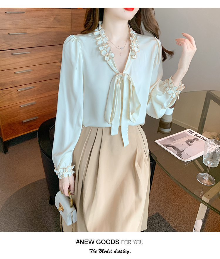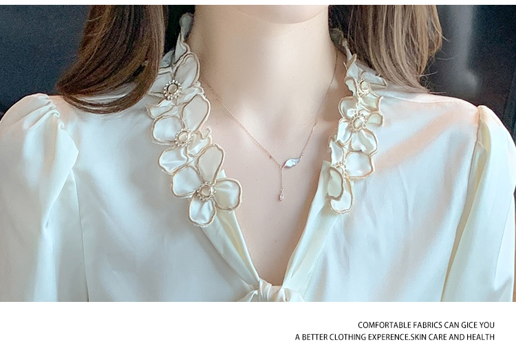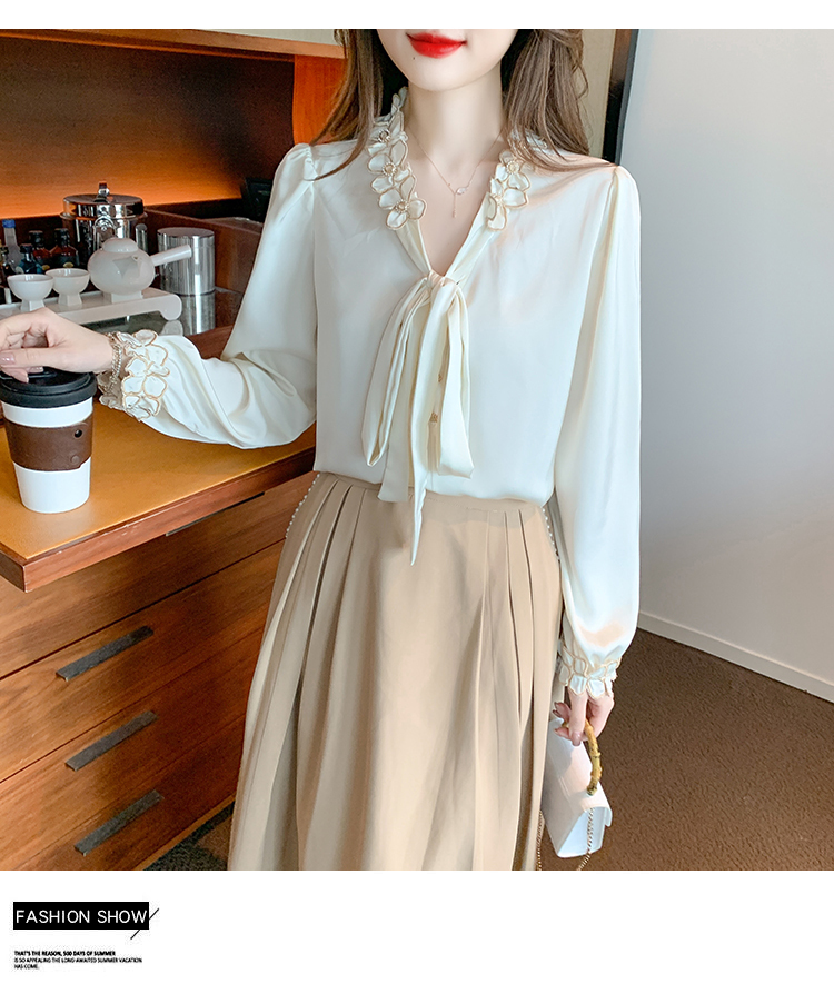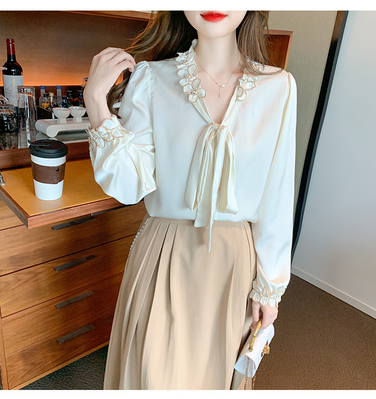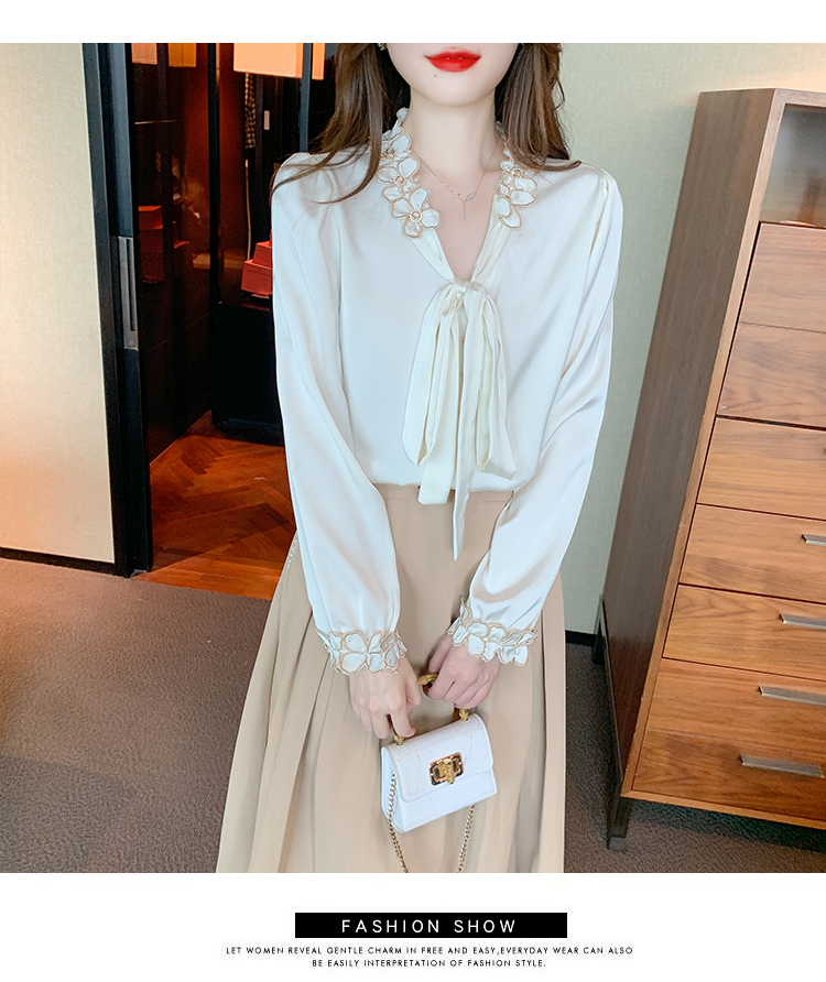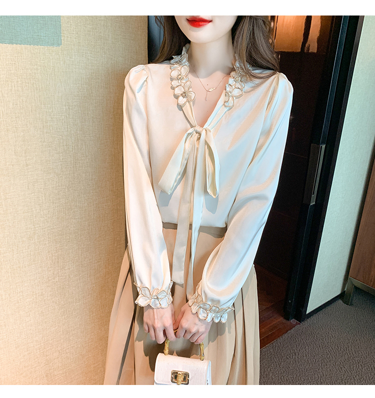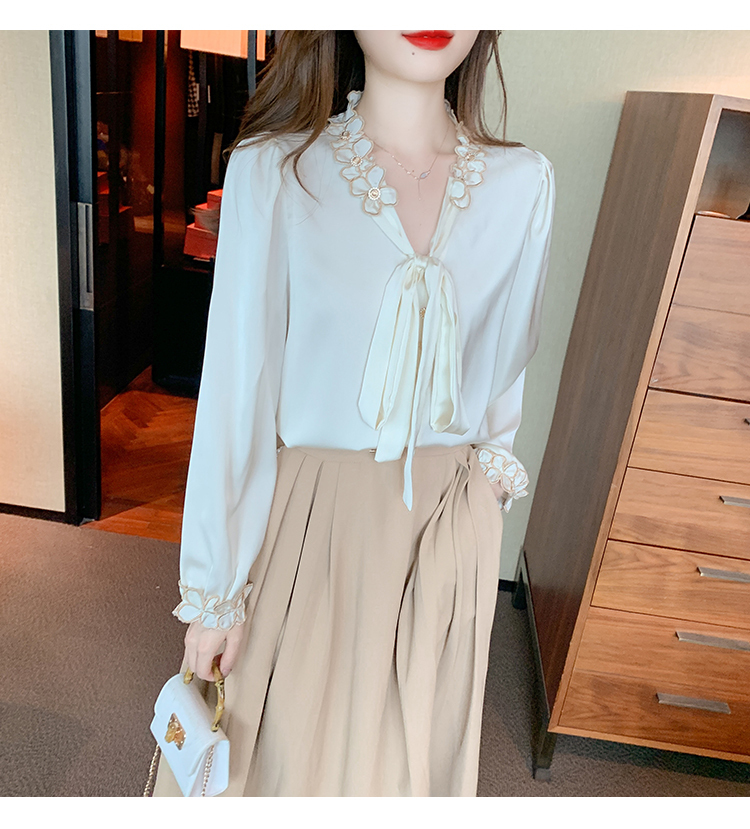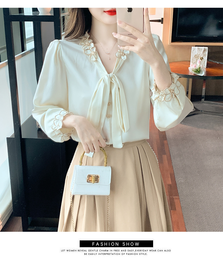 限量特惠|知性花朵刺繡繫帶雪紡衫(02M2700)