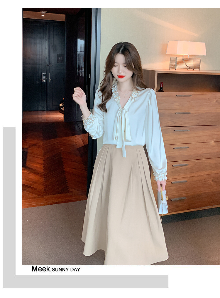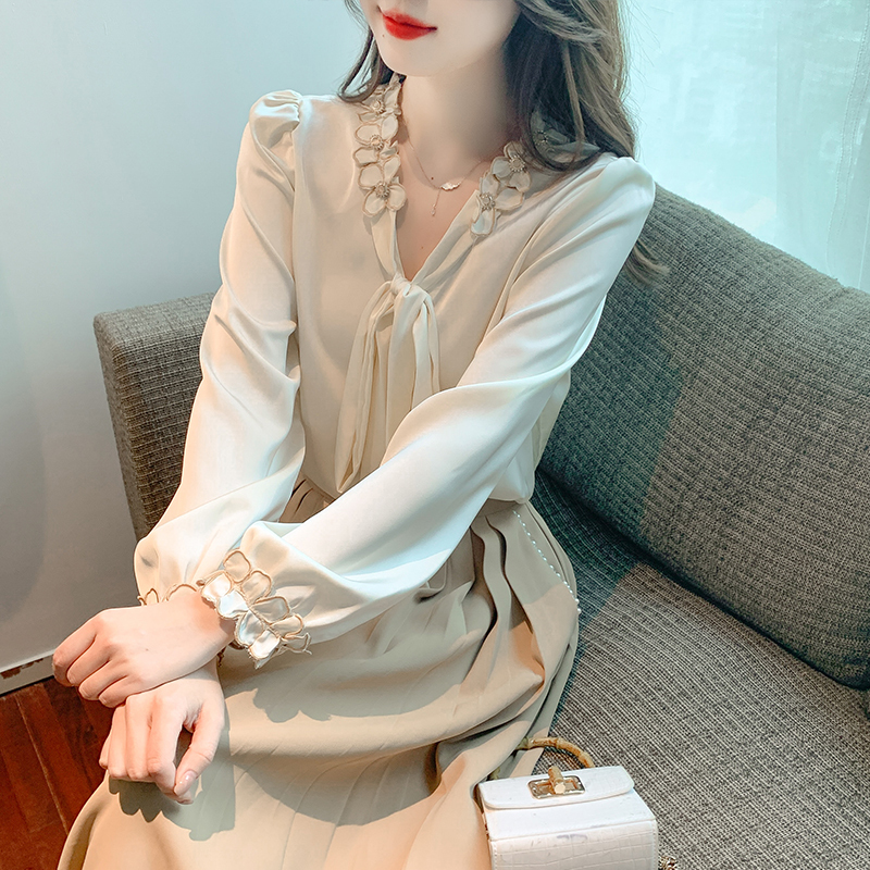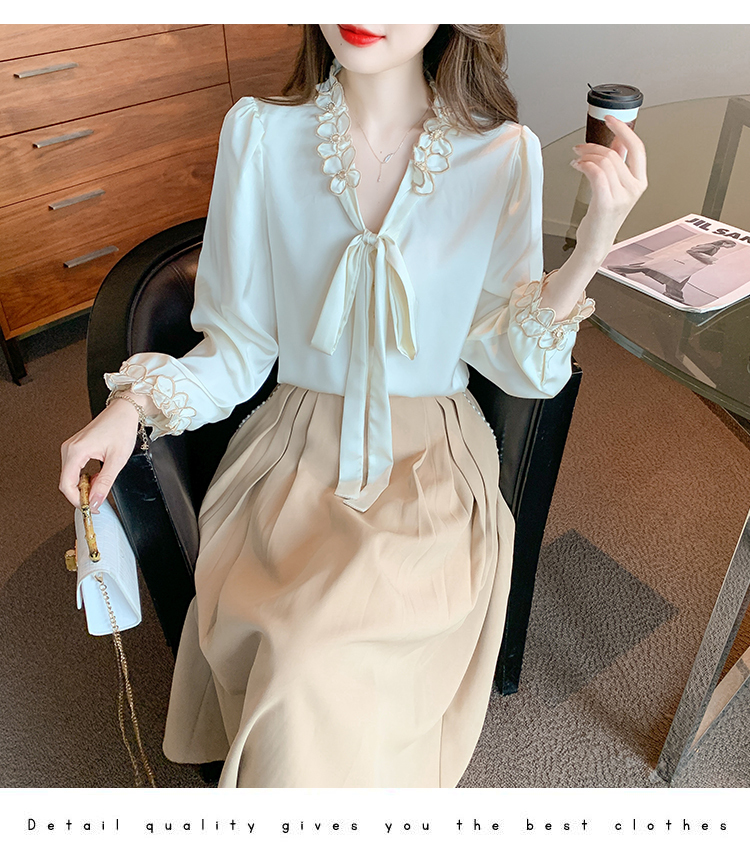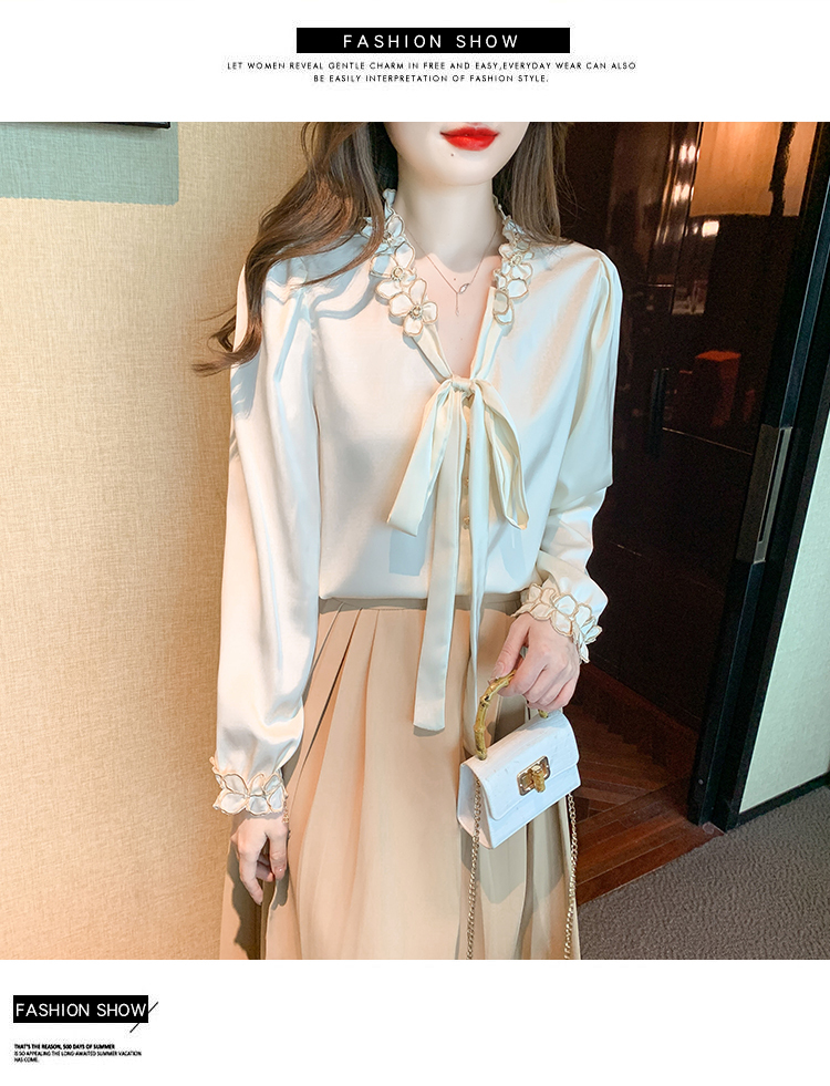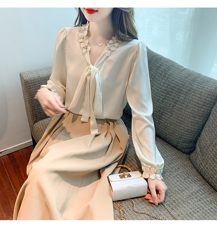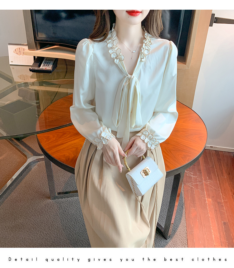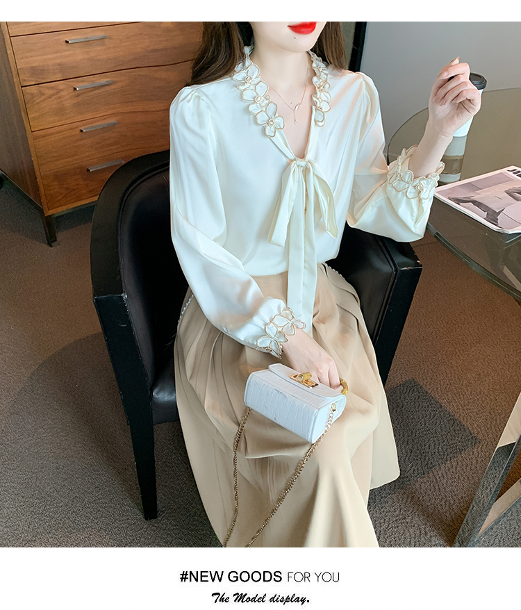 限量特惠|知性花朵刺繡繫帶雪紡衫(02M2700)