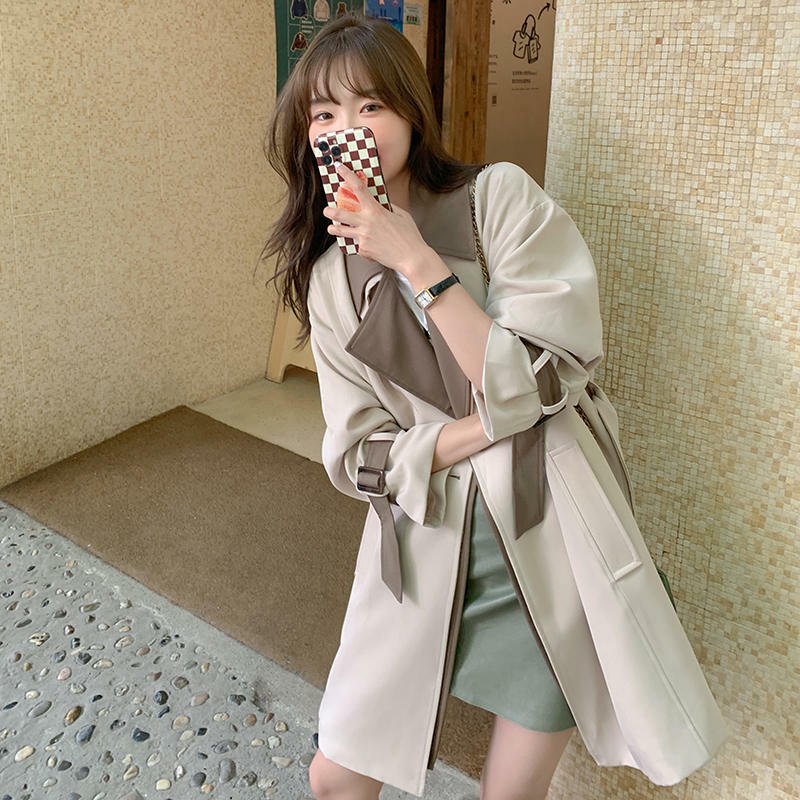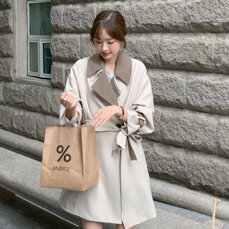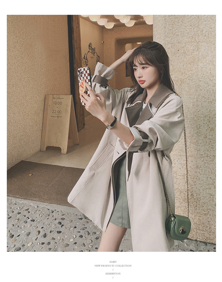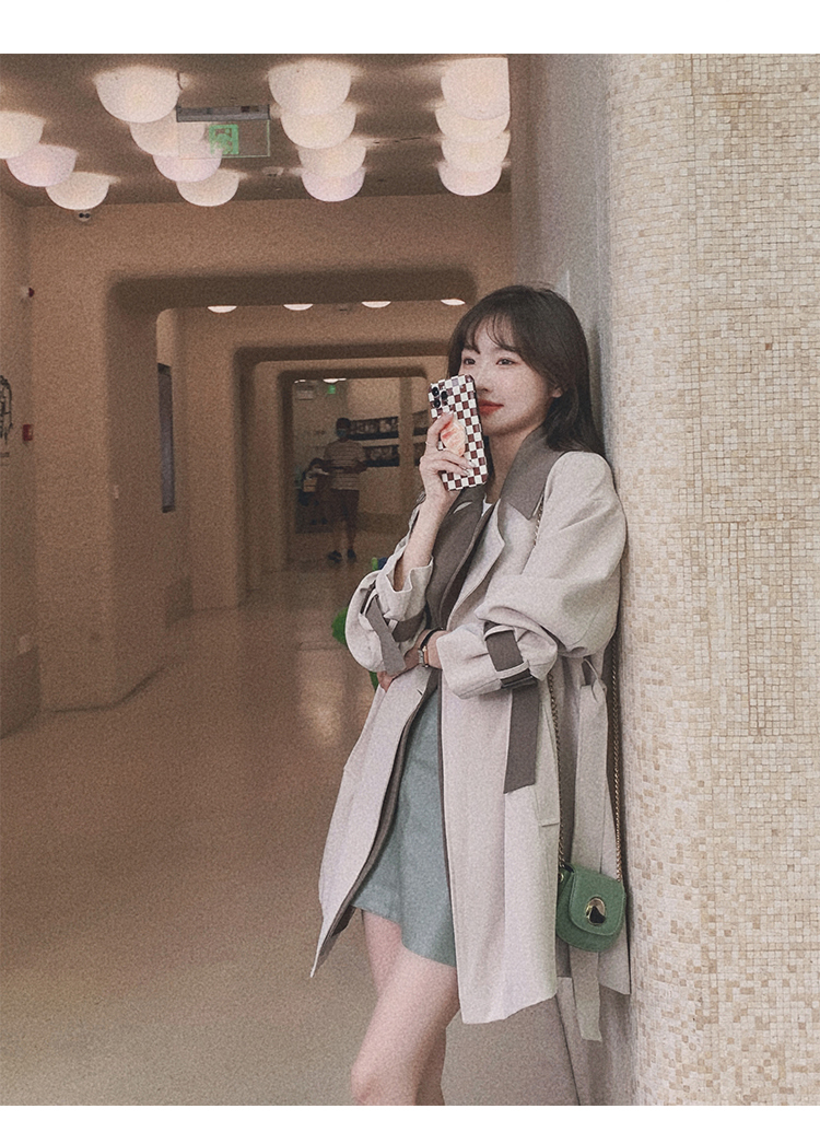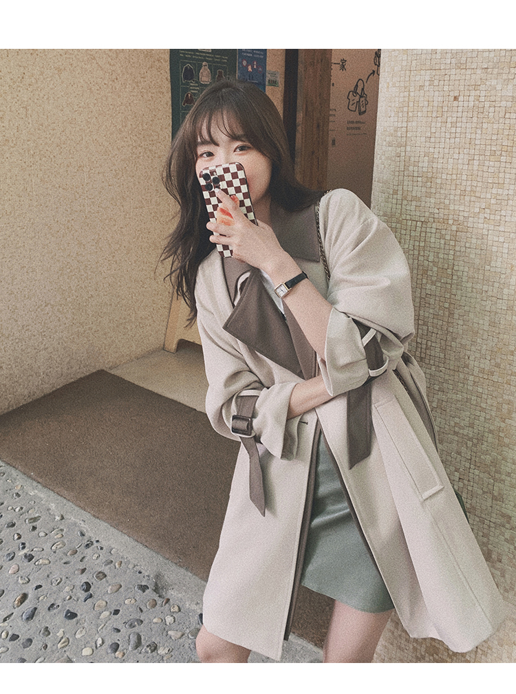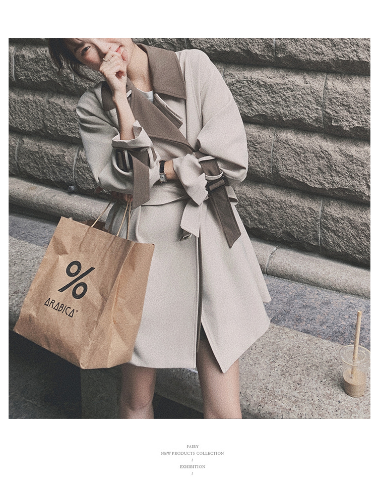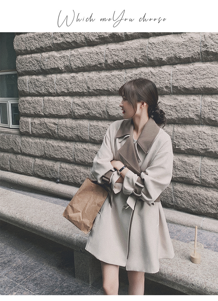 獨家訂製│氣質知性撞色雙層翻領造型繫帶假兩件式風衣外套(02TA0226)