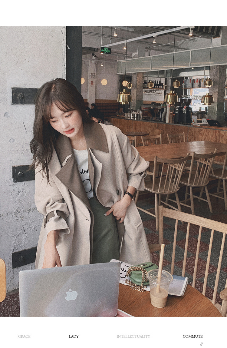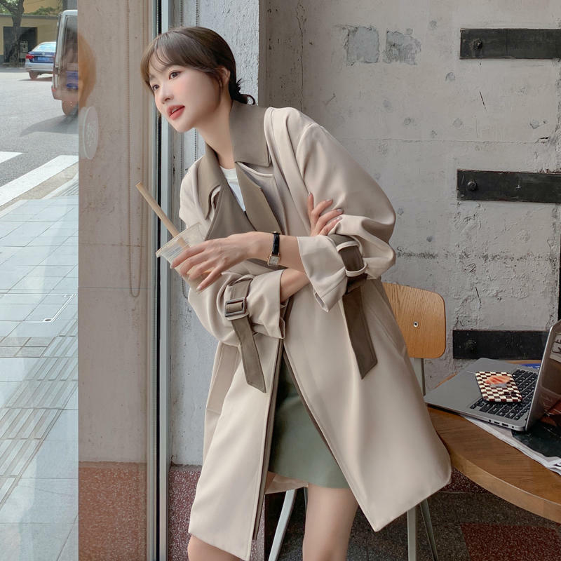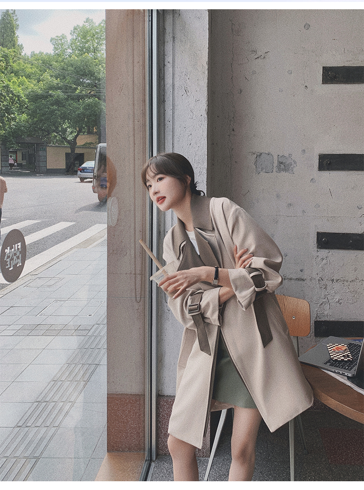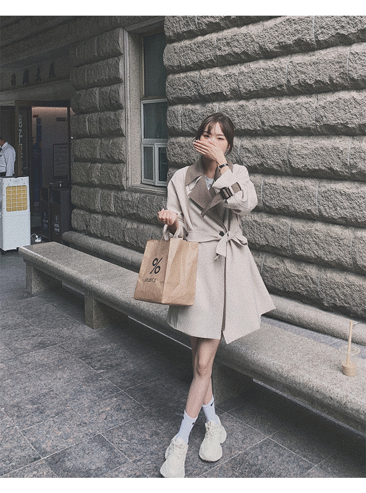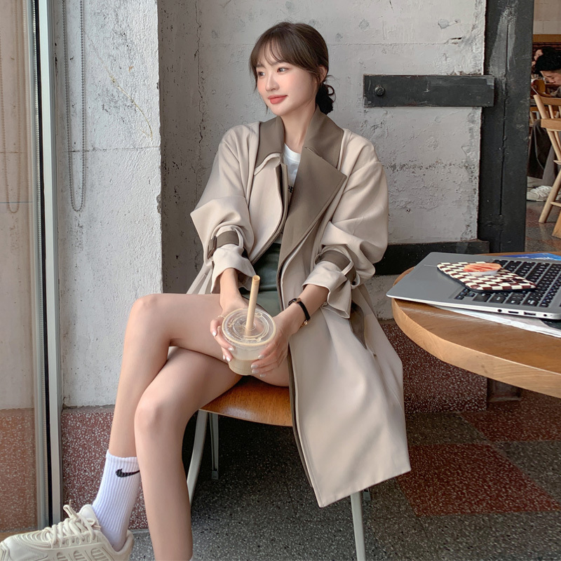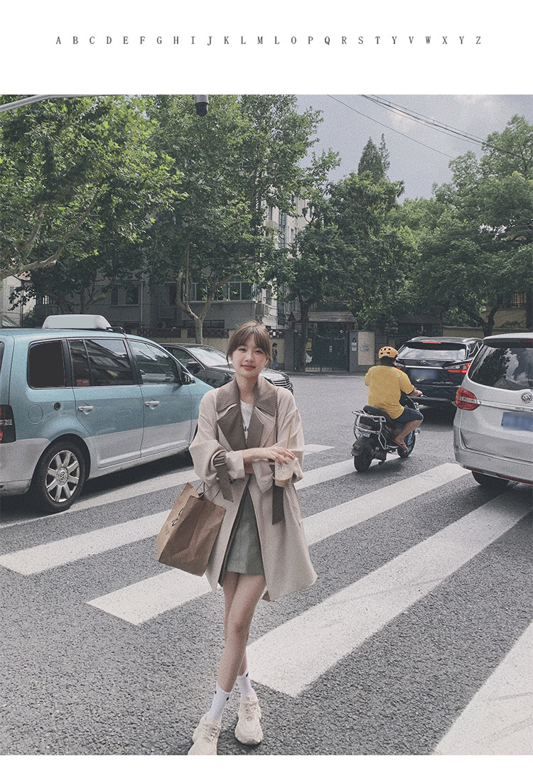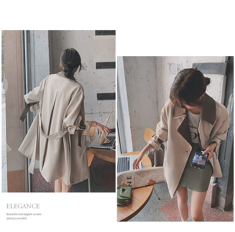 獨家訂製│氣質知性撞色雙層翻領造型繫帶假兩件式風衣外套(02TA0226)