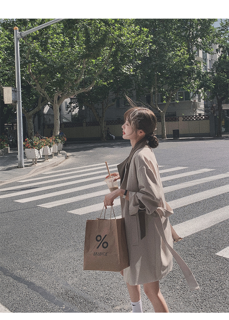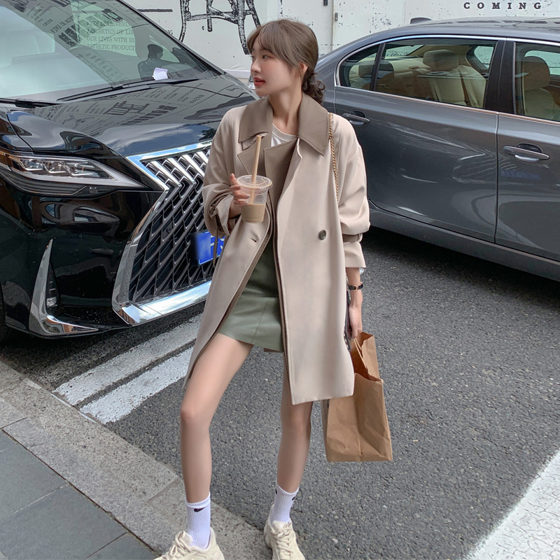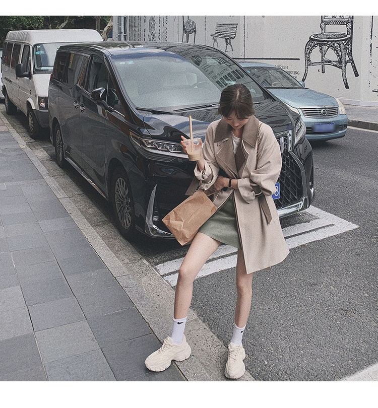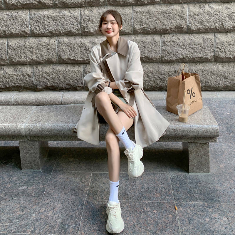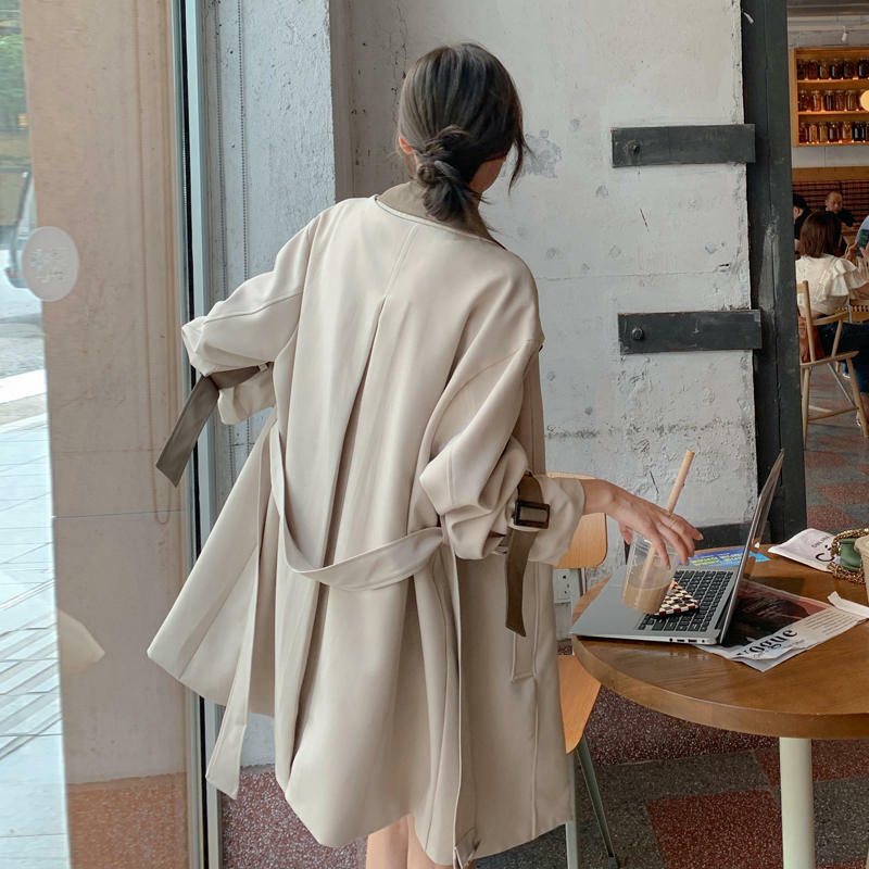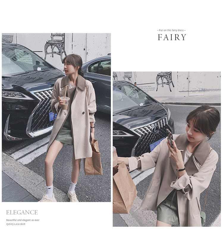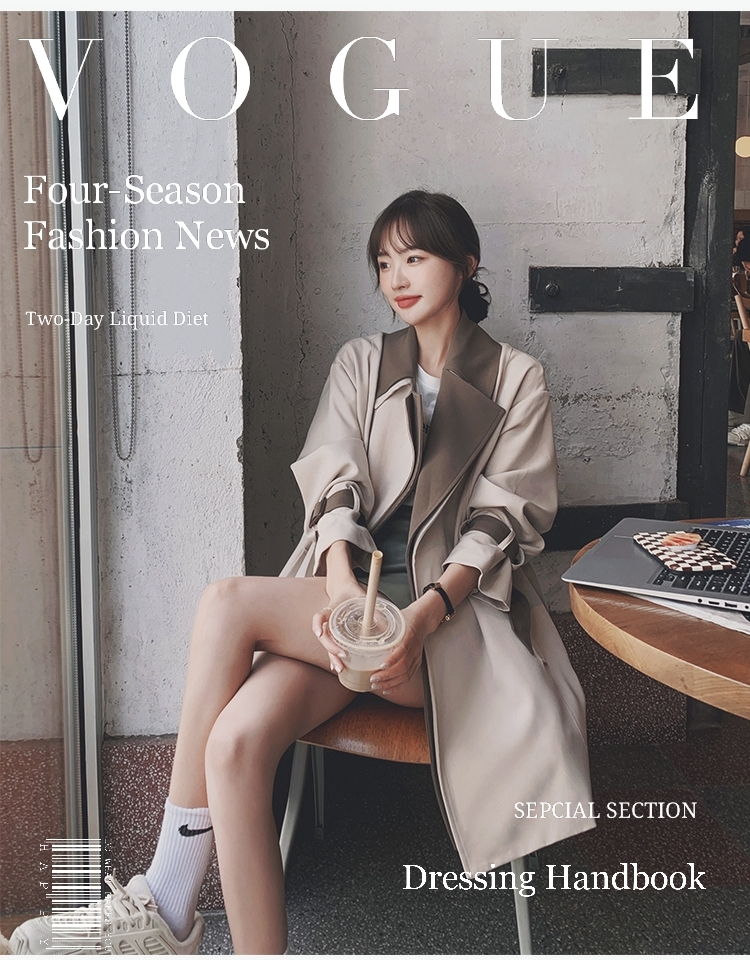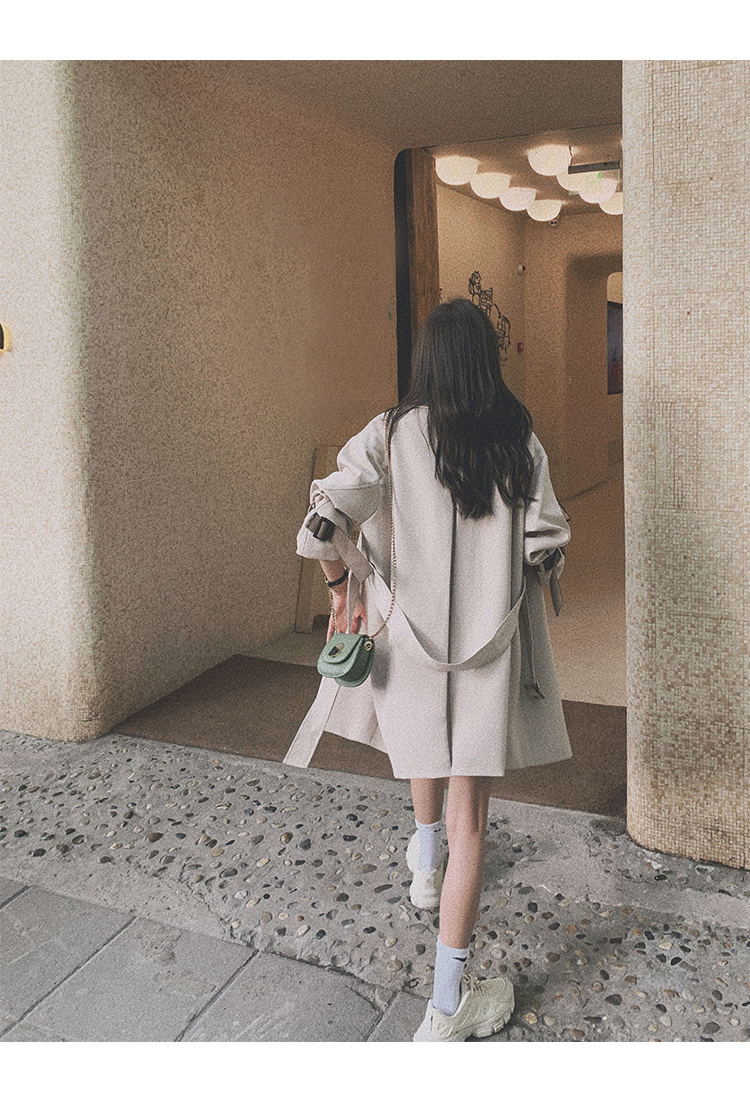獨家訂製│氣質知性撞色雙層翻領造型繫帶假兩件式風衣外套(02TA0226)