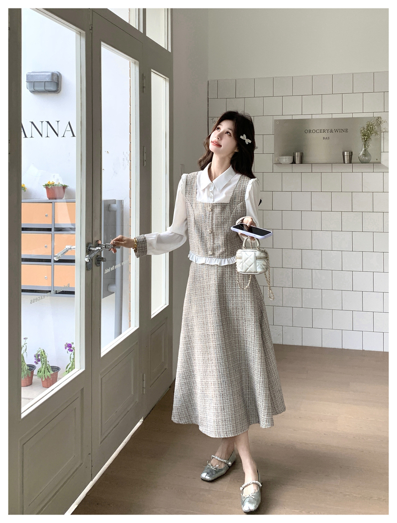 🔺面料:雪紡+粗花呢+滌綸+聚酯纖維