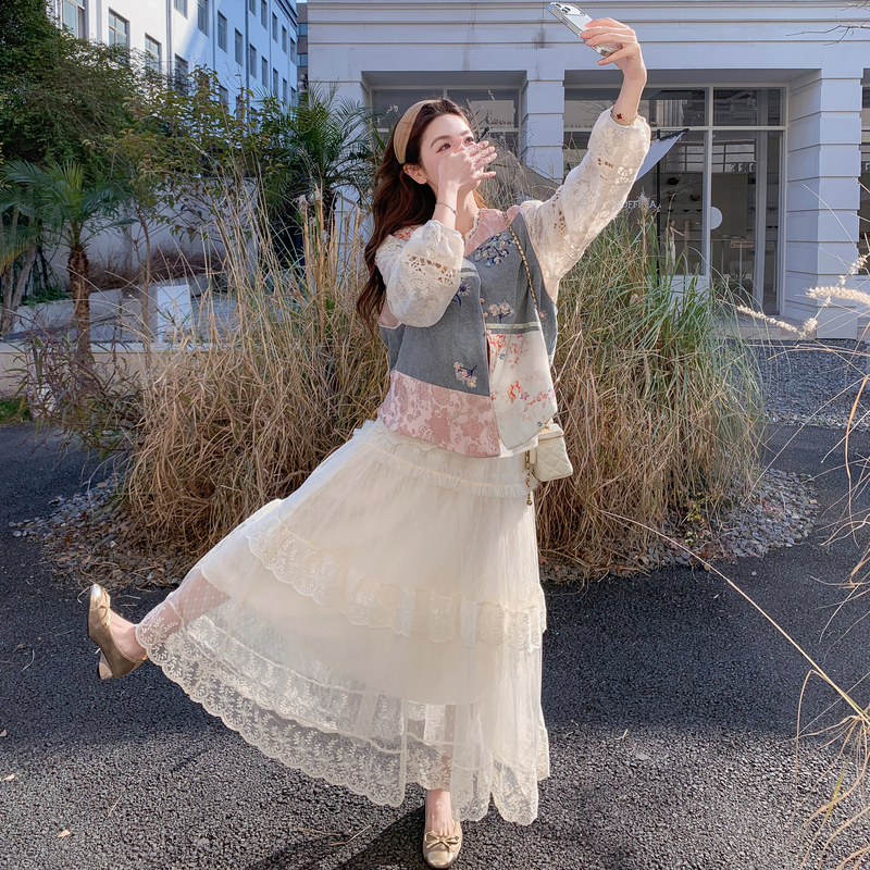 🔺面料:牛仔+滌綸+蕾絲+雪紡紗+內襯(聚酯纖維)