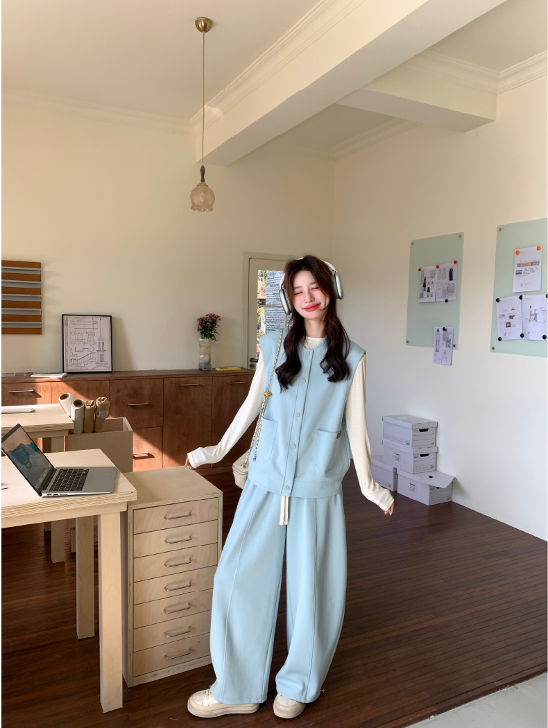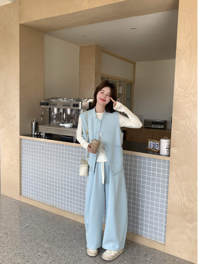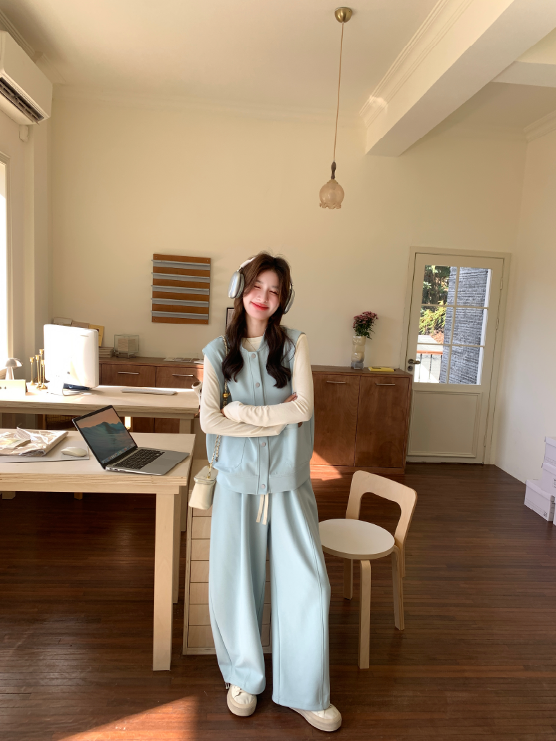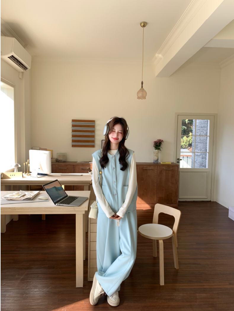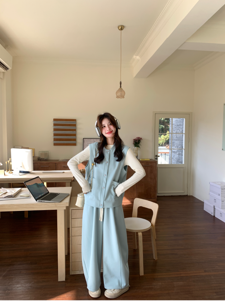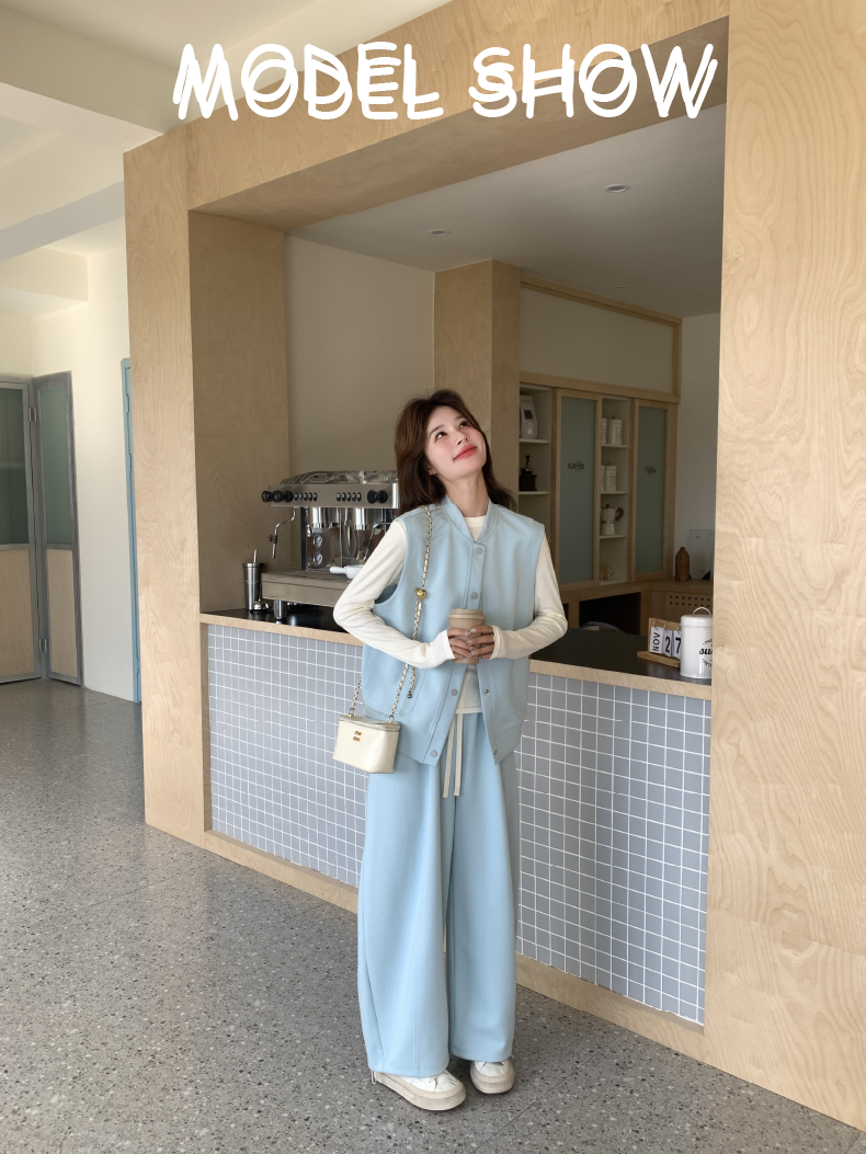 獨家訂製│2件式 排釦造型背心+闊腿褲(03A2042)