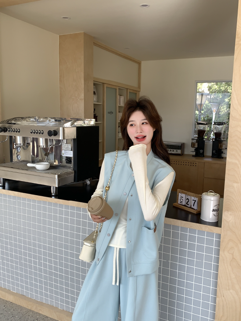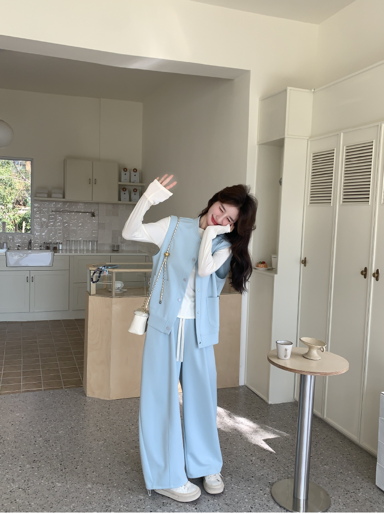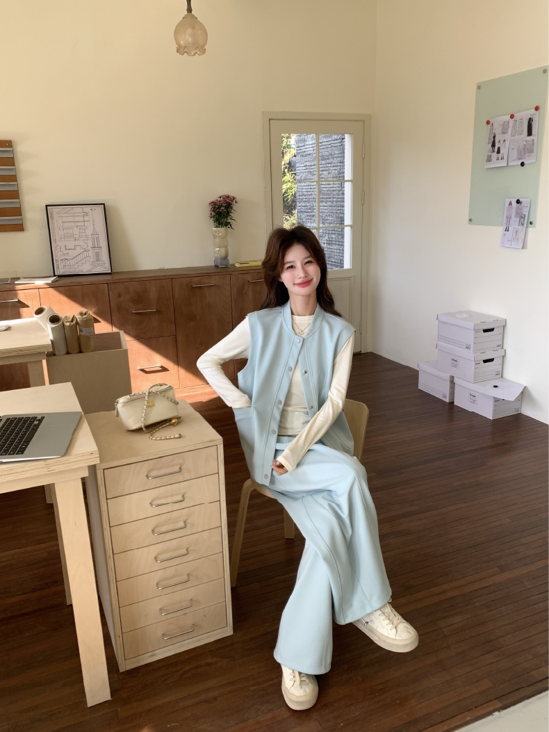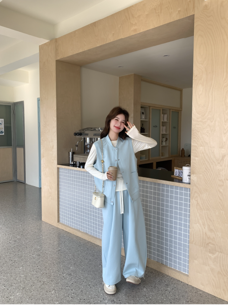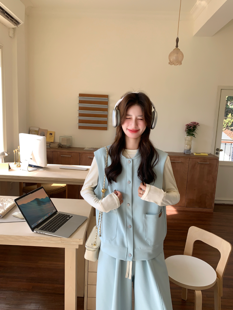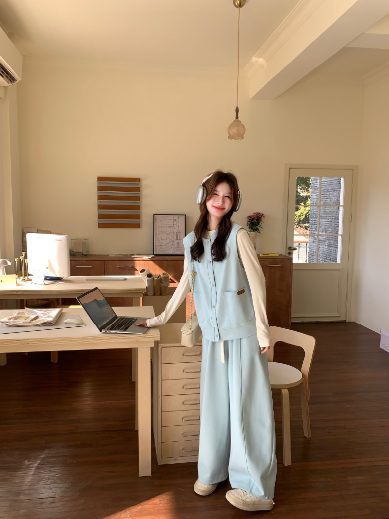 獨家訂製│2件式 排釦造型背心+闊腿褲(03A2042)