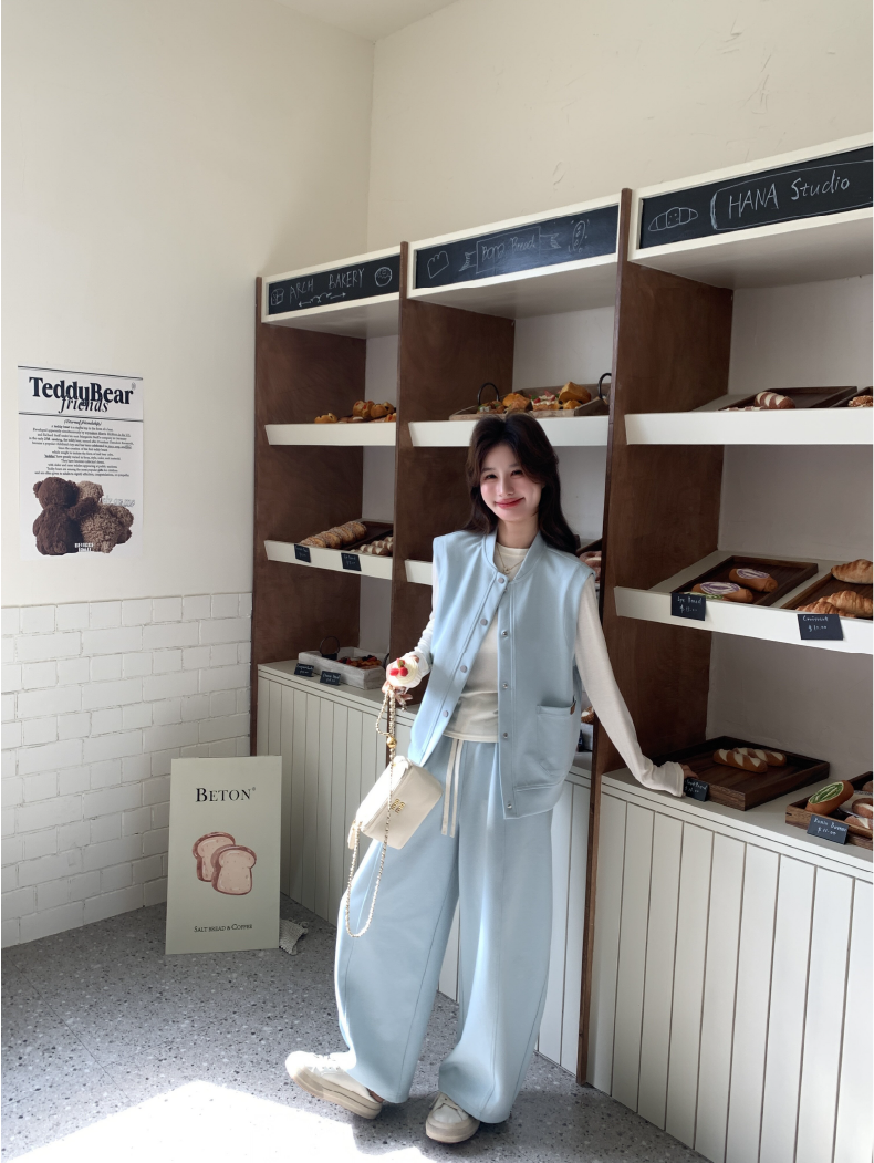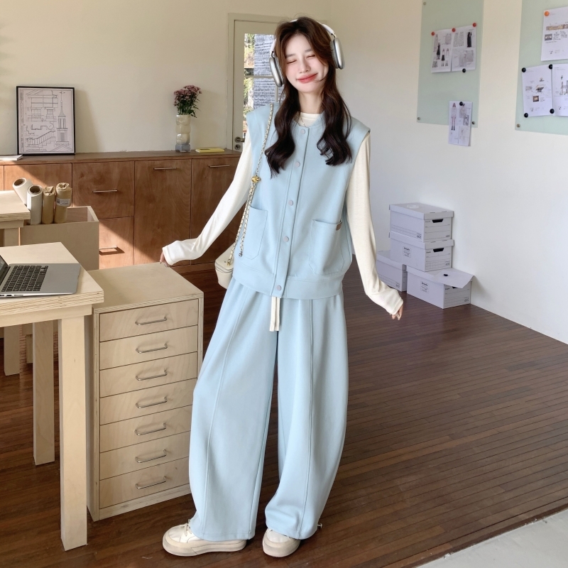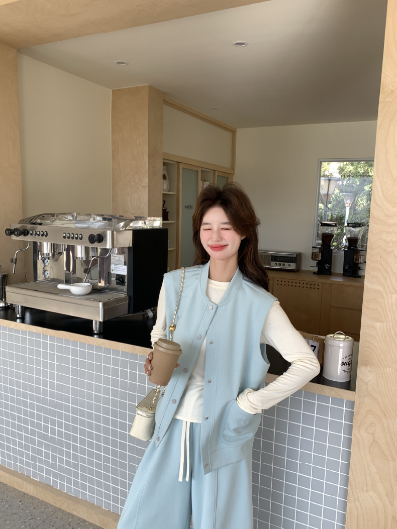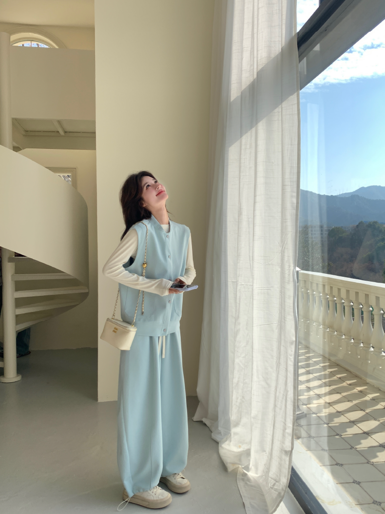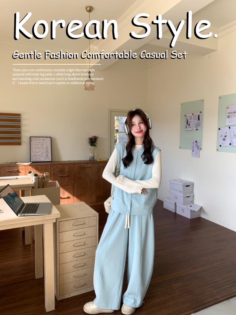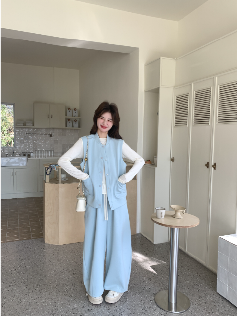 獨家訂製│2件式 排釦造型背心+闊腿褲(03A2042)