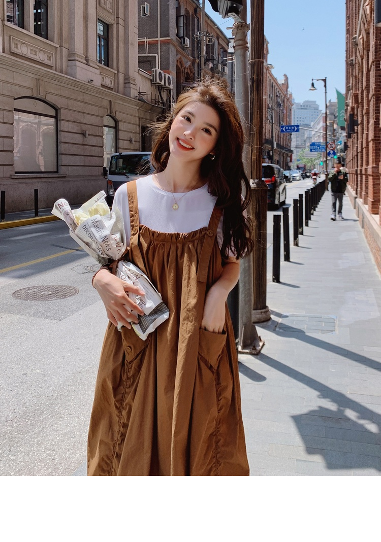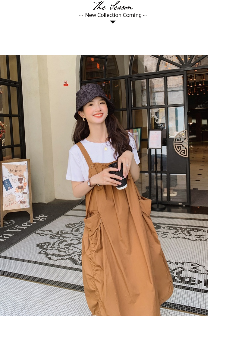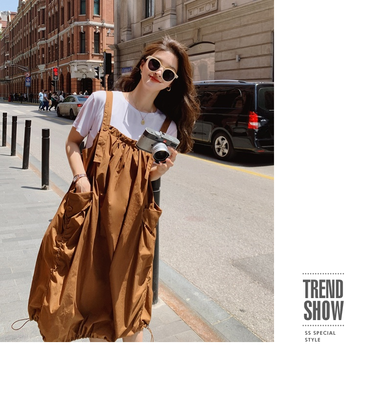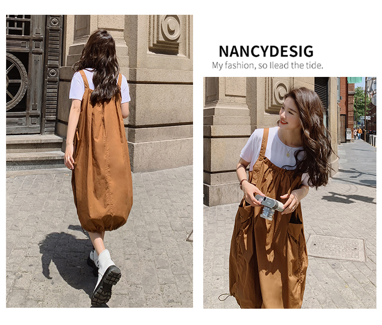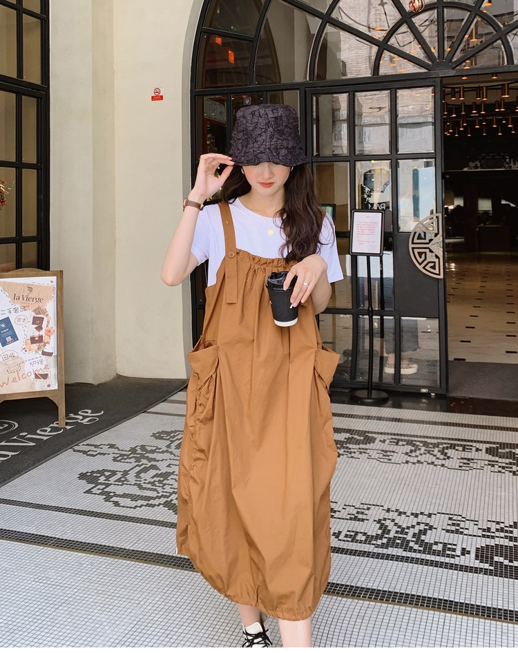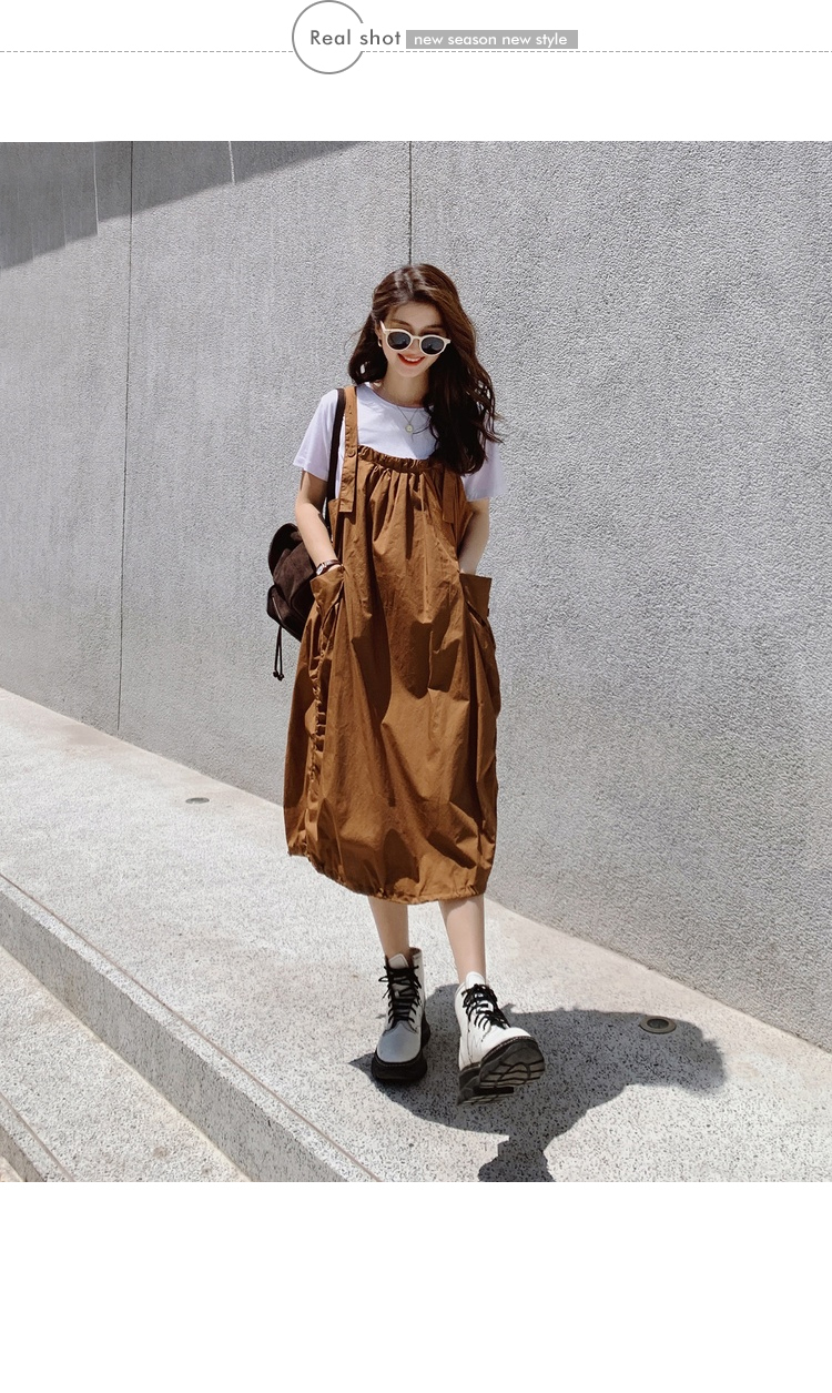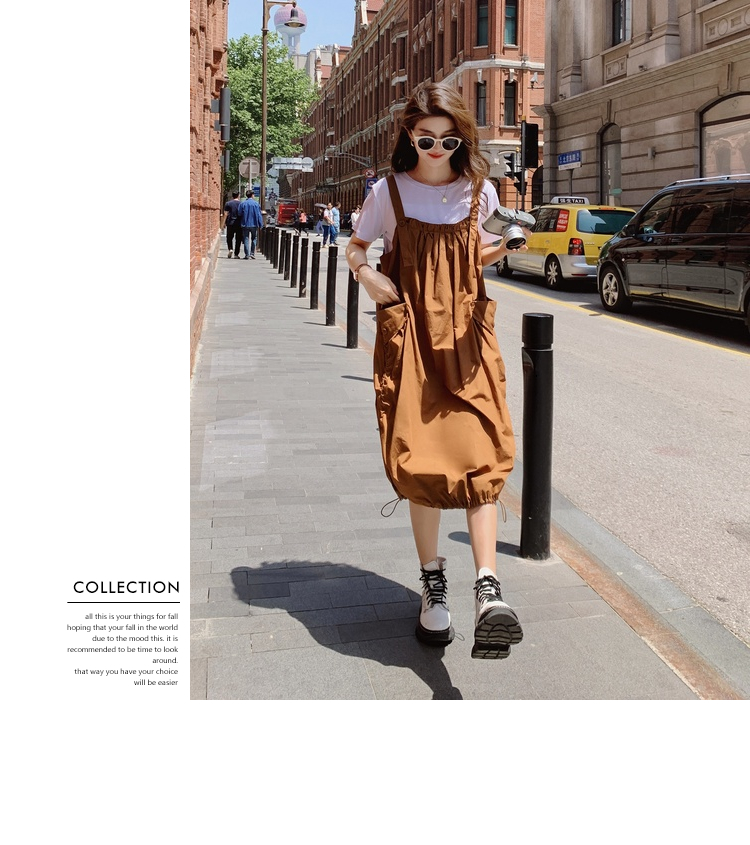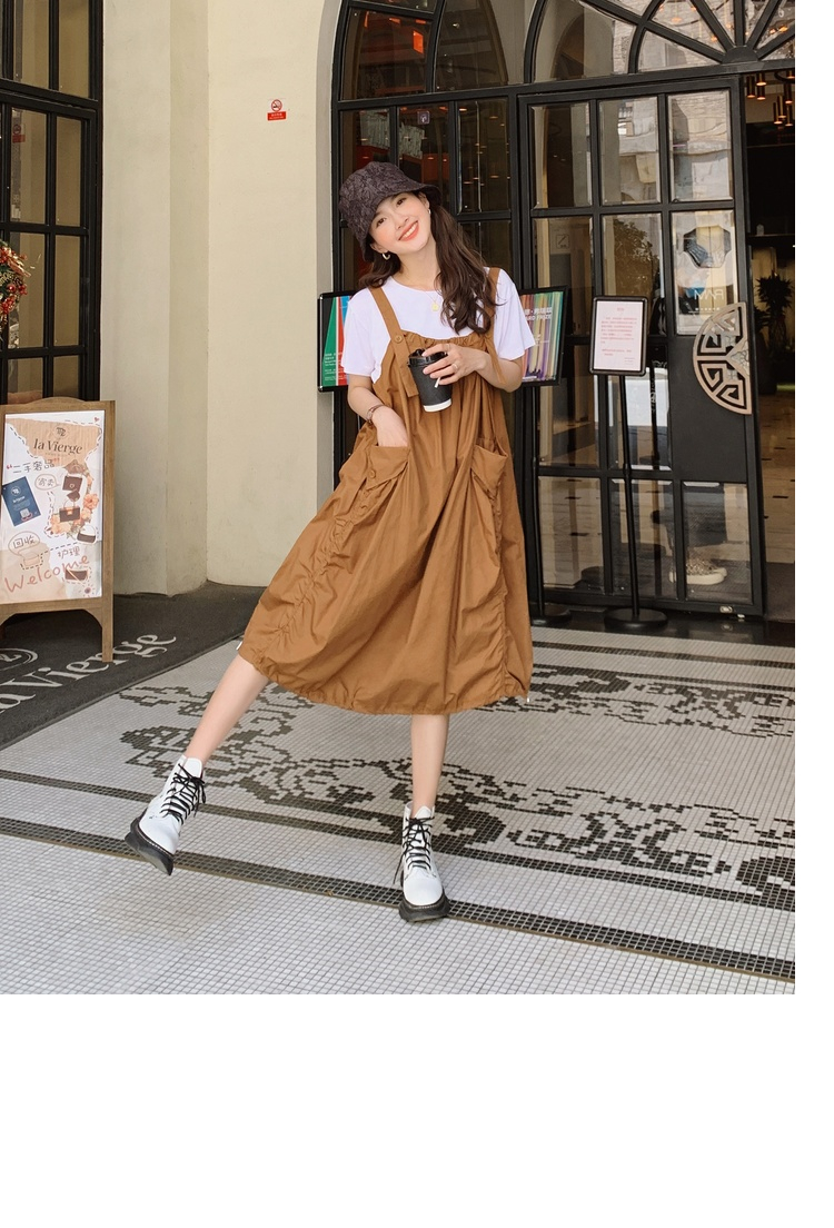 獨家訂製│韓系減齡設計感大口袋造型燈籠吊帶裙(03H22313)