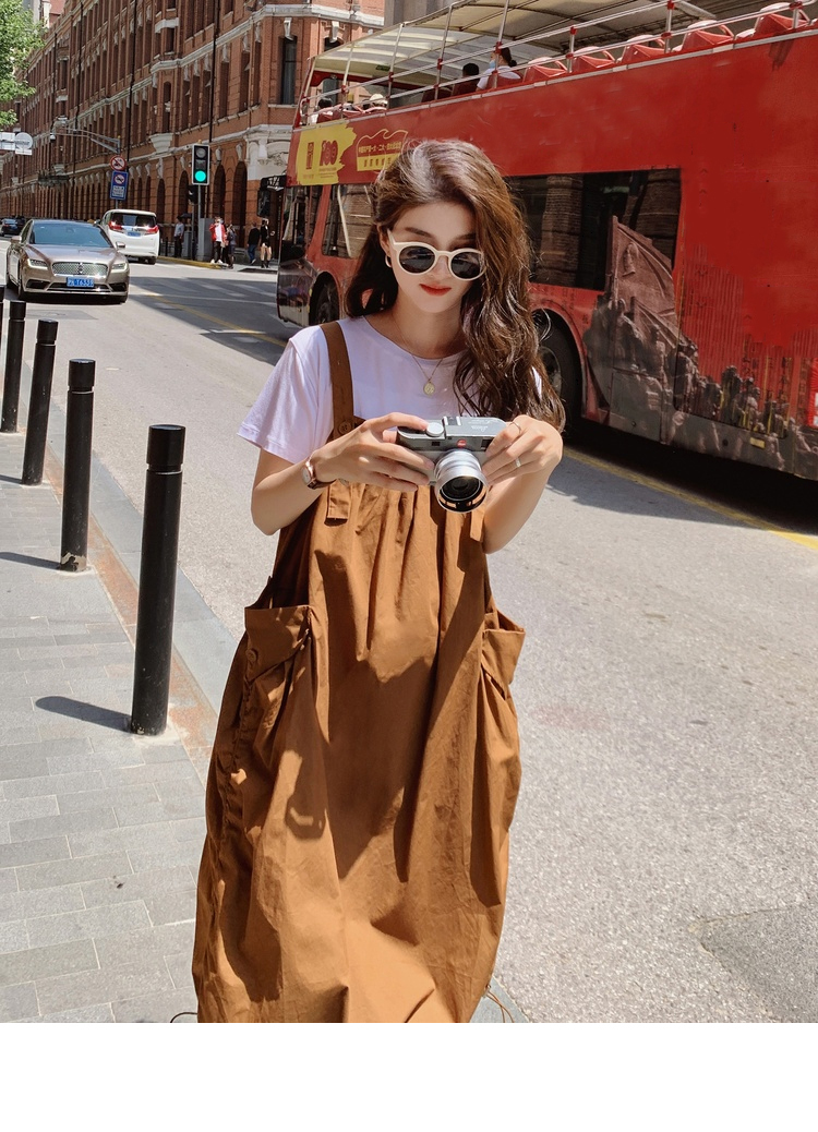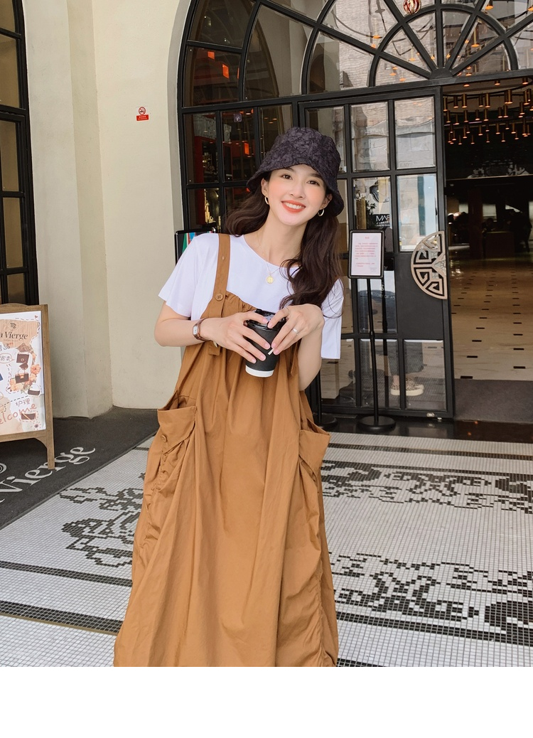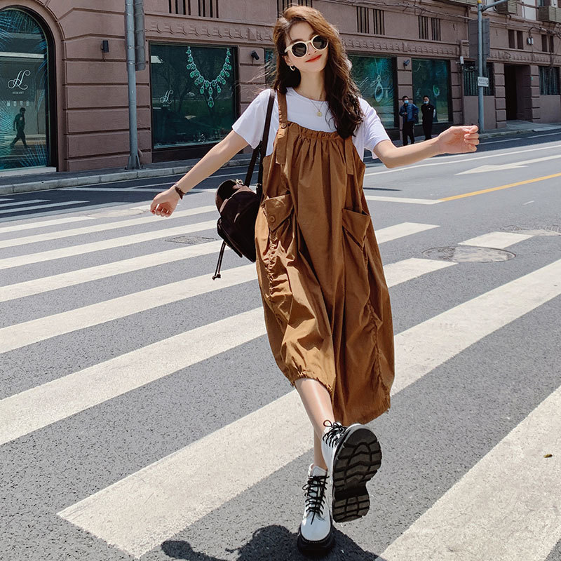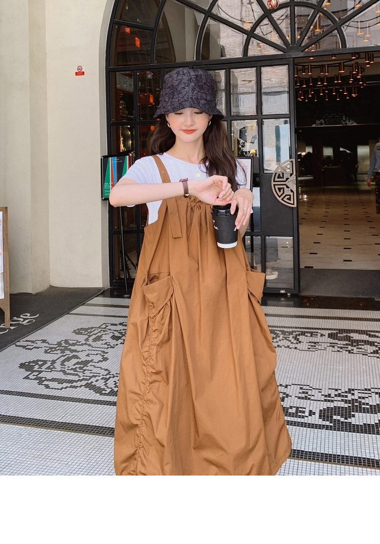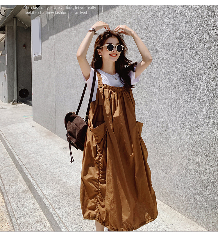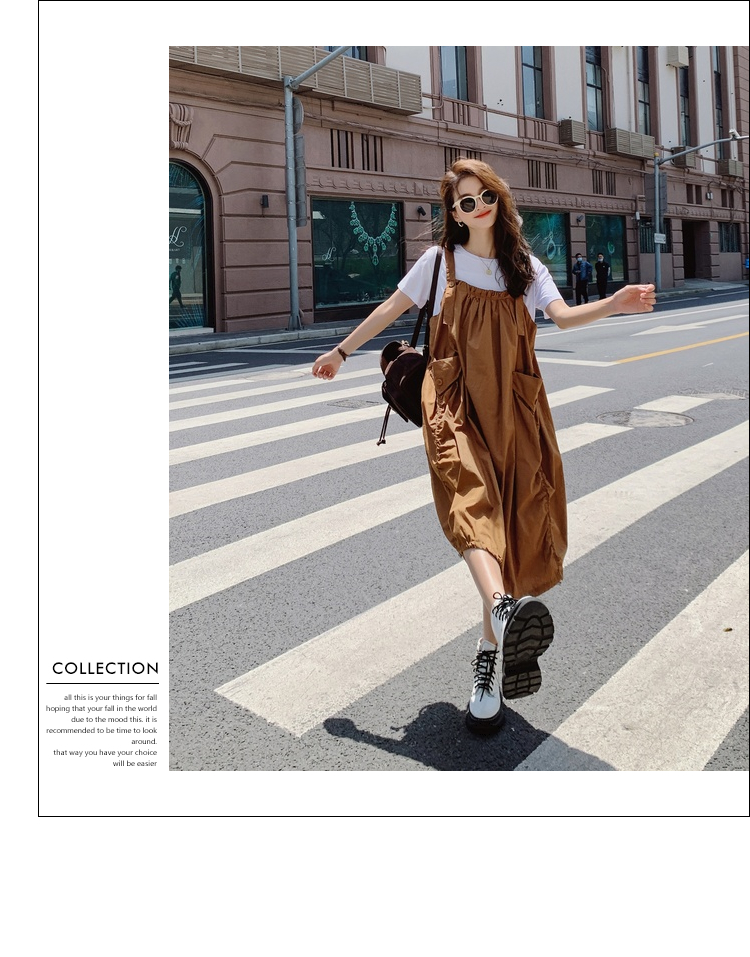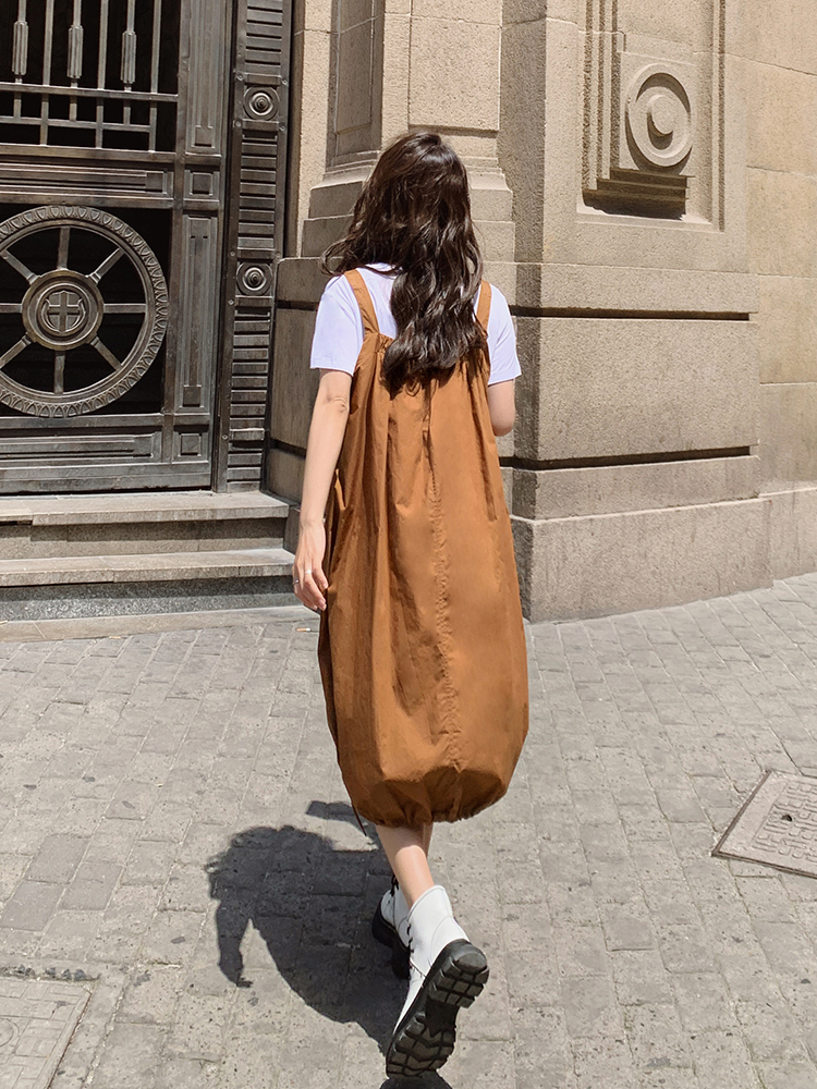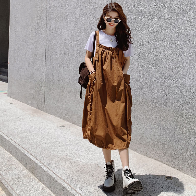獨家訂製│韓系減齡設計感大口袋造型燈籠吊帶裙(03H22313)