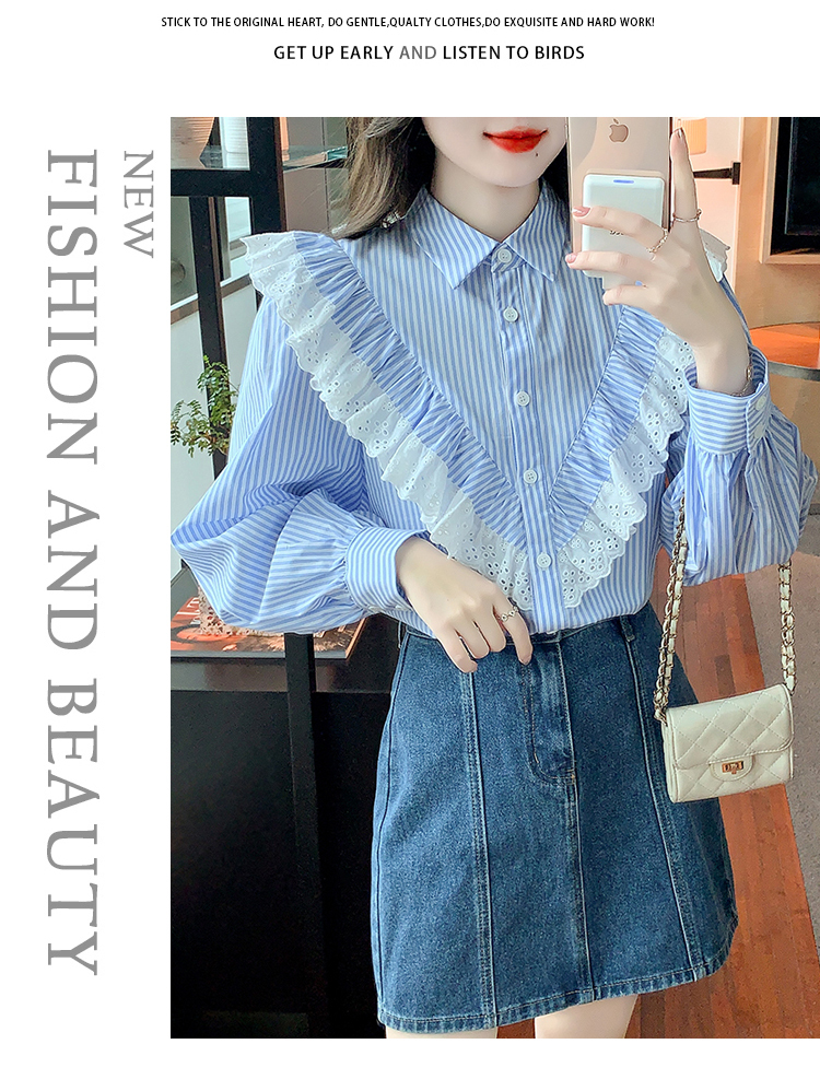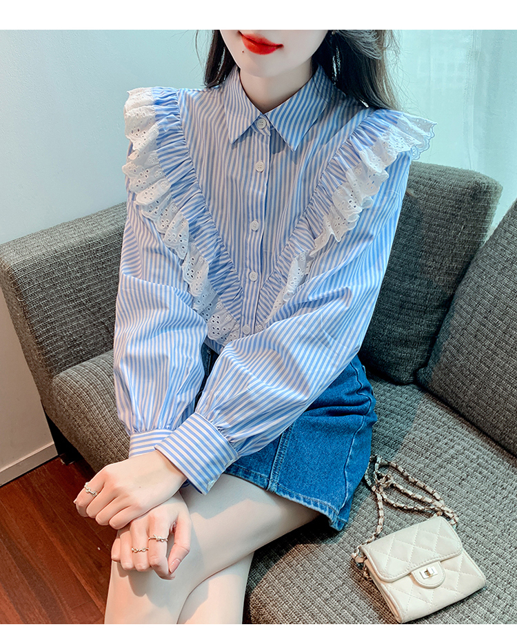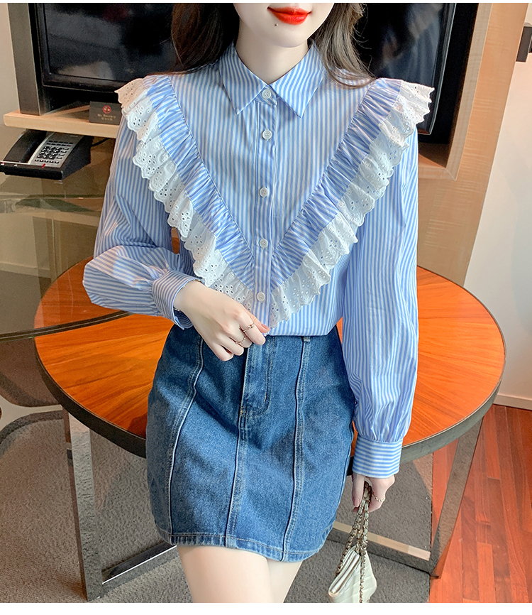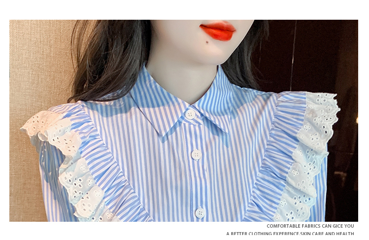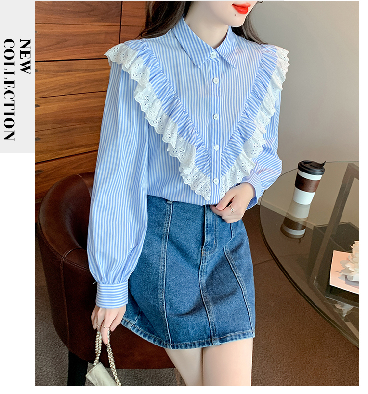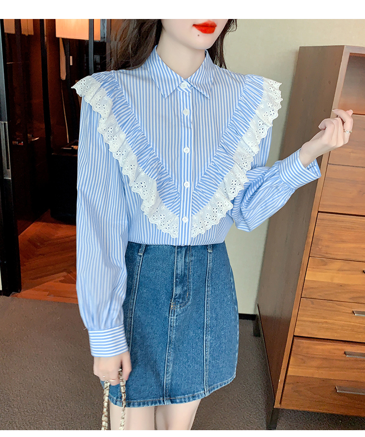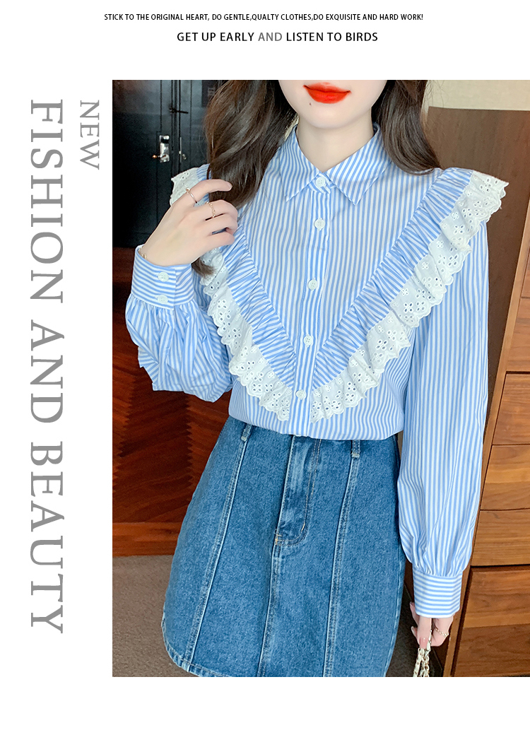 限量特惠|減齡拼接縷空鈎花條紋襯衫(03H3076)