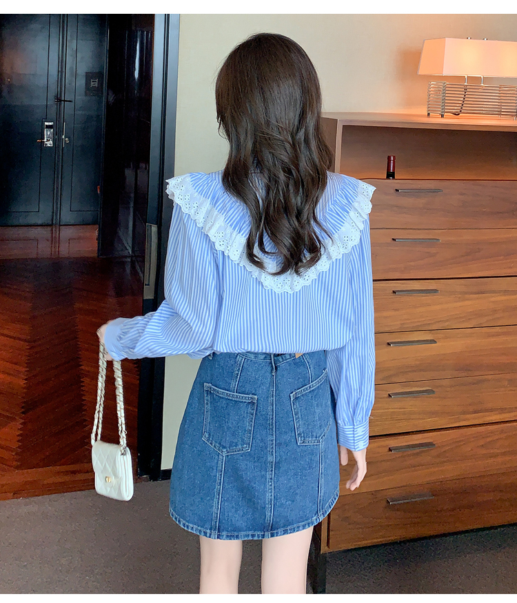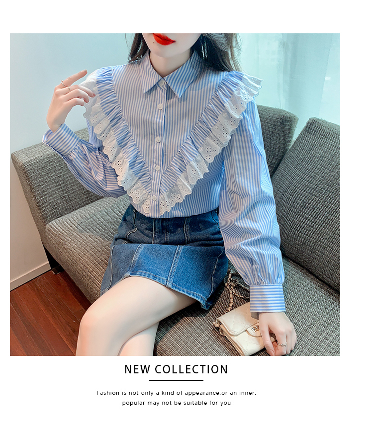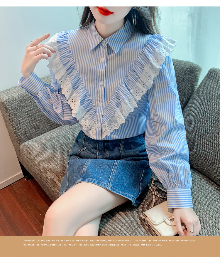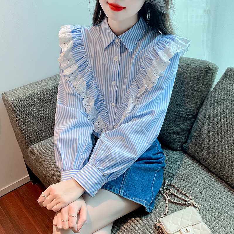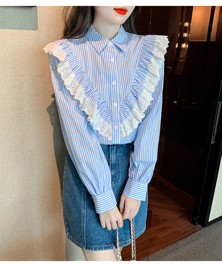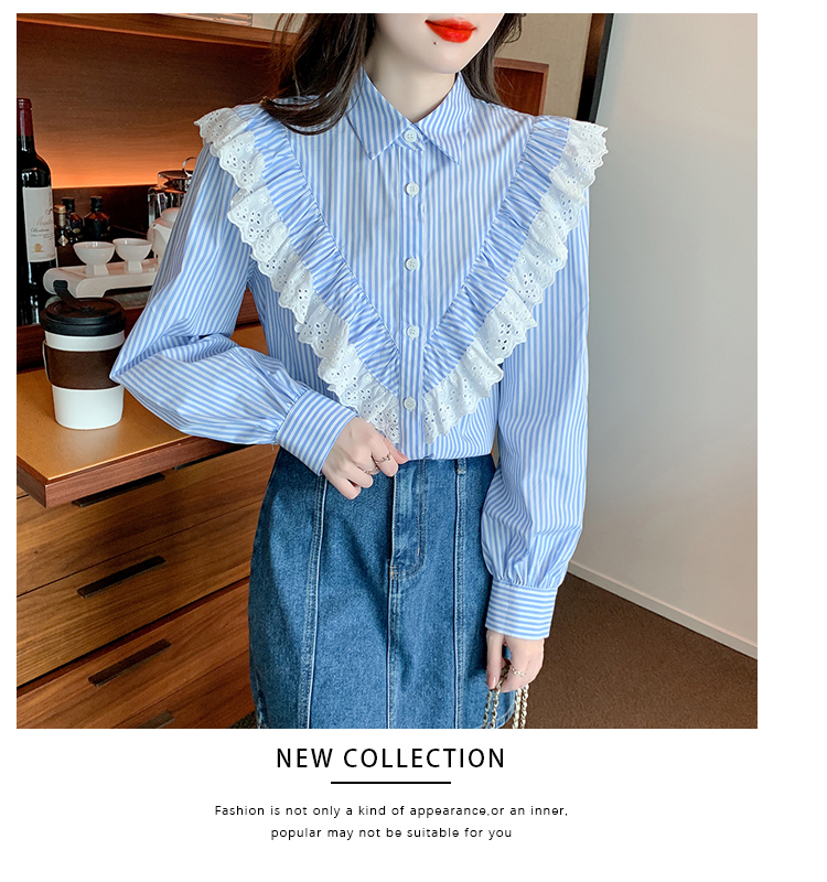 限量特惠|減齡拼接縷空鈎花條紋襯衫(03H3076)