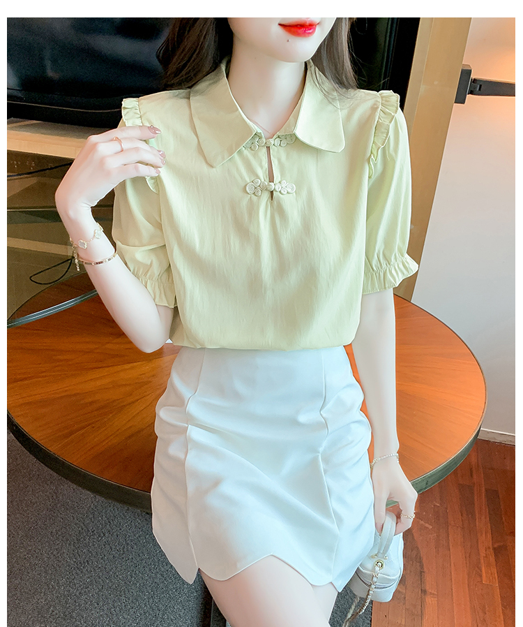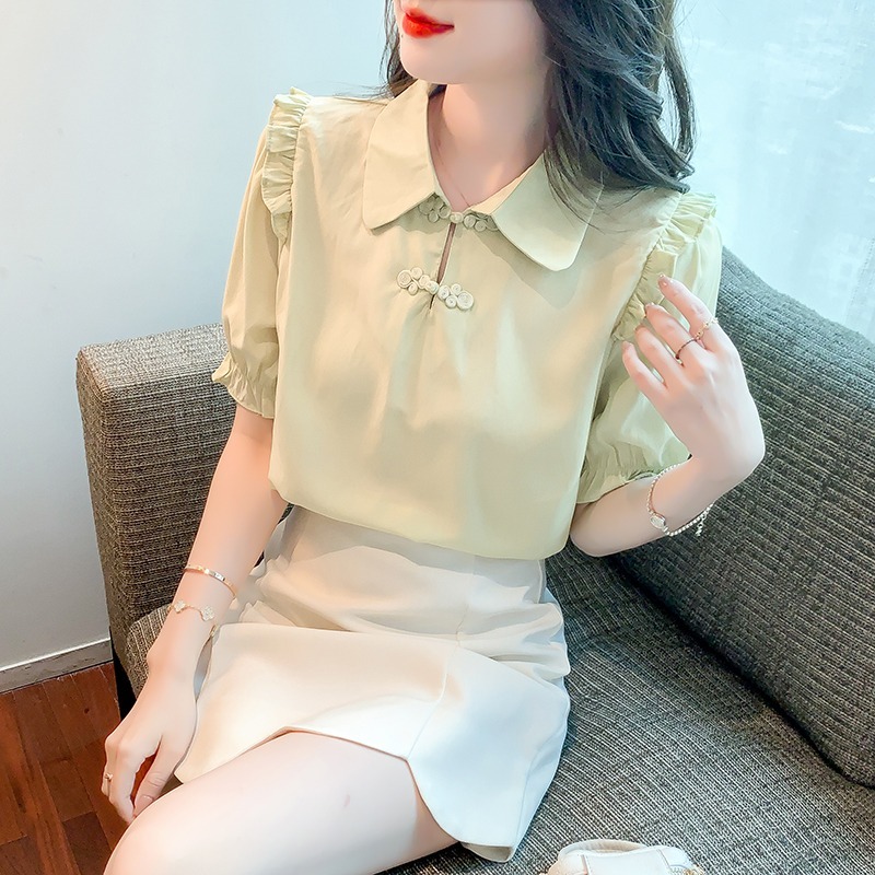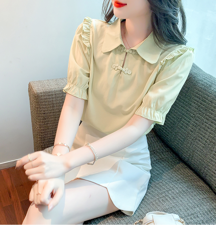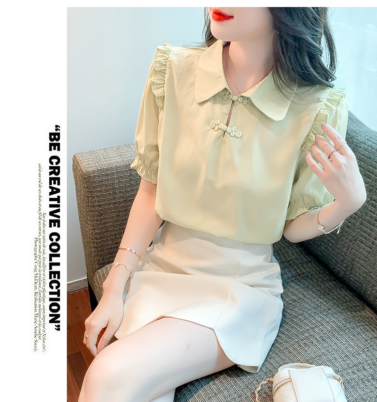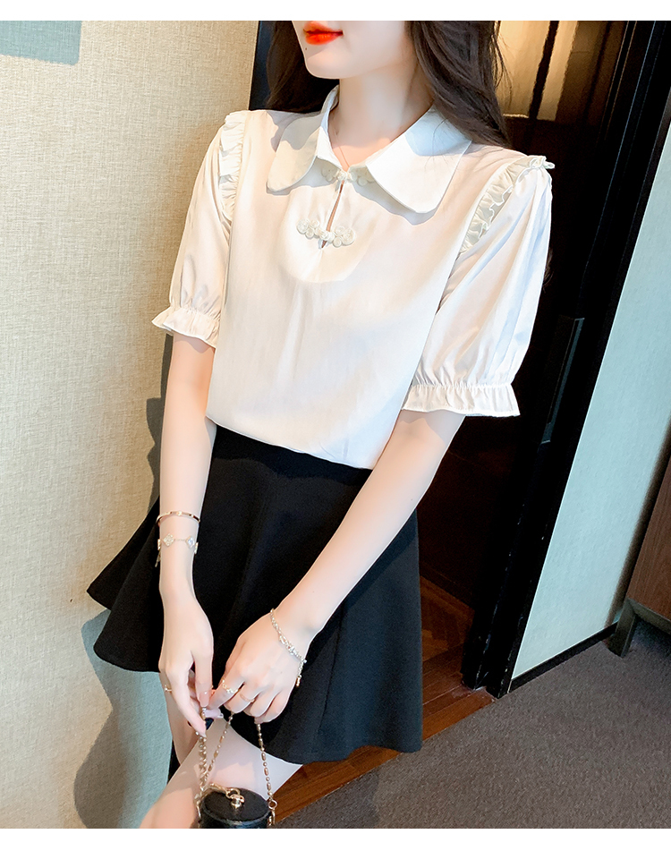 限量特惠|知性復古盤釦造型雪紡衫-2色(03H3077)