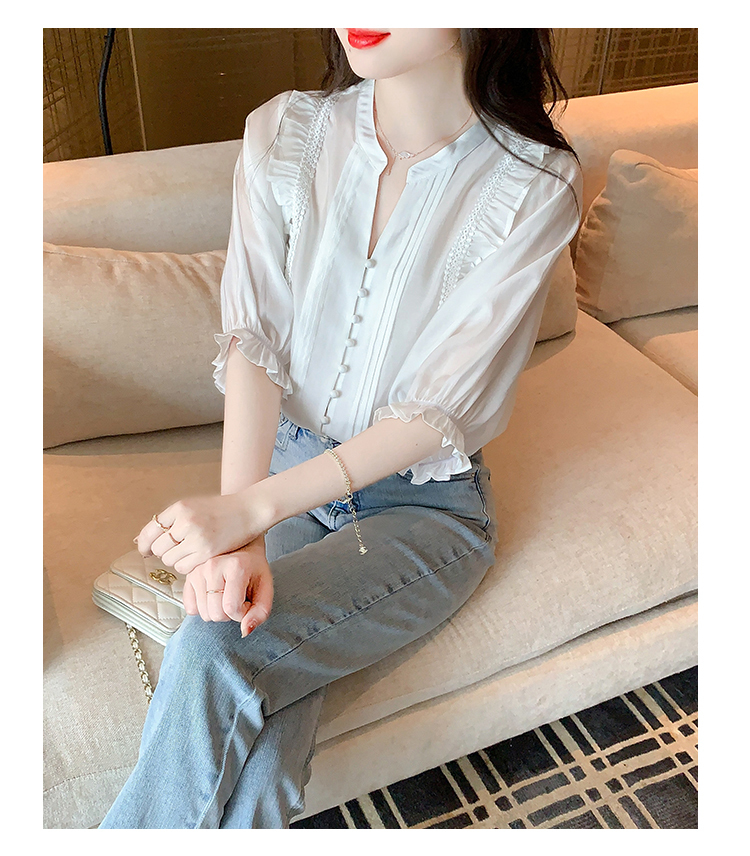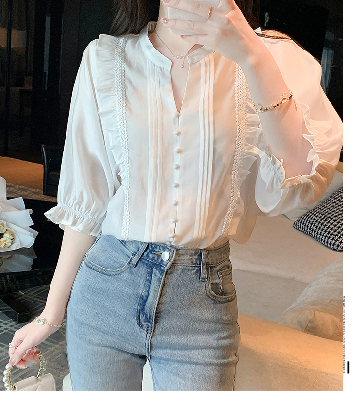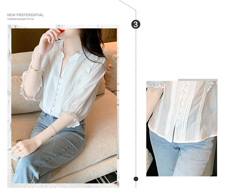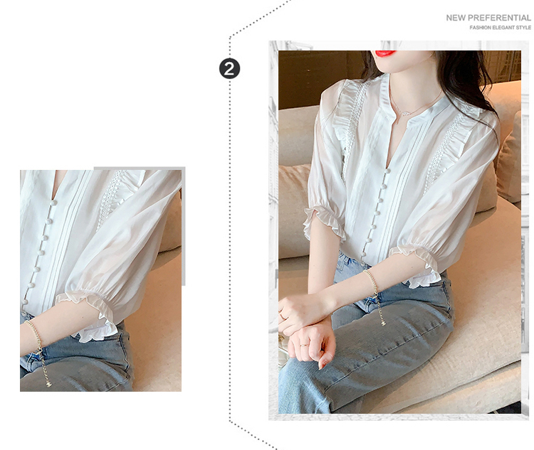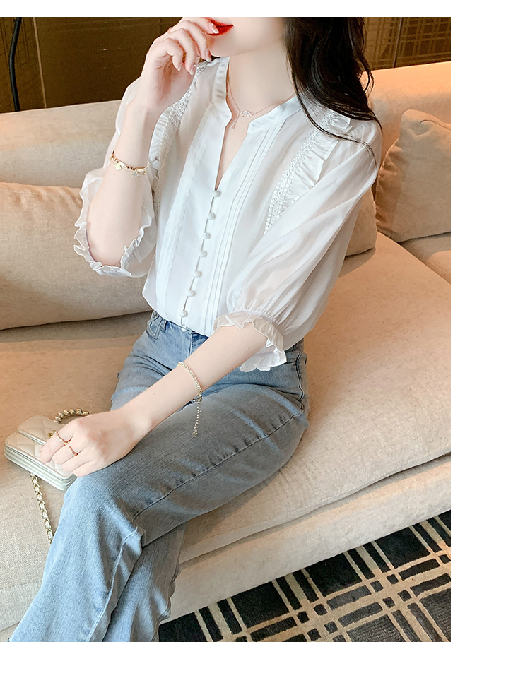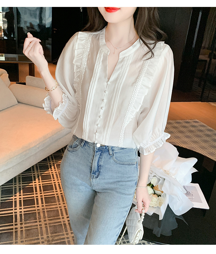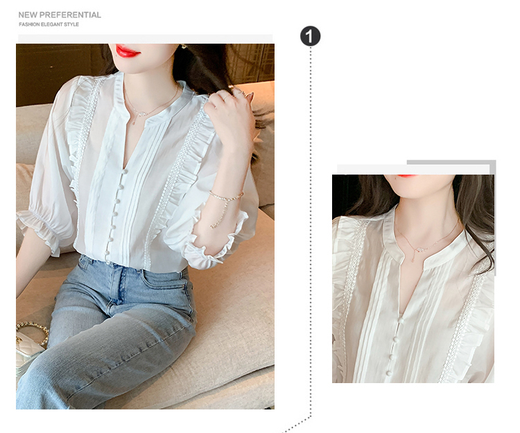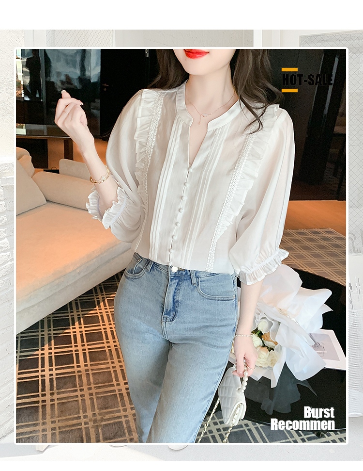 限量特惠|知性蕾絲刺繡荷葉邊雪紡衫(03H3108)