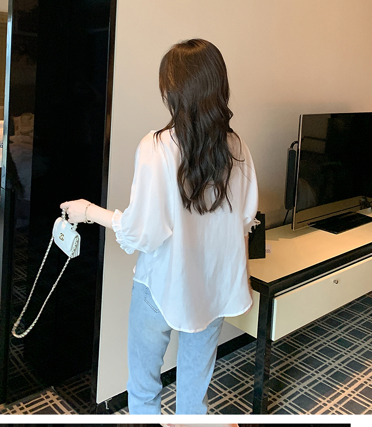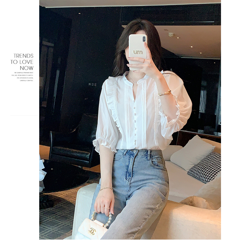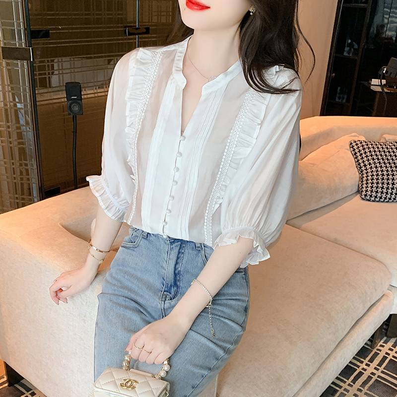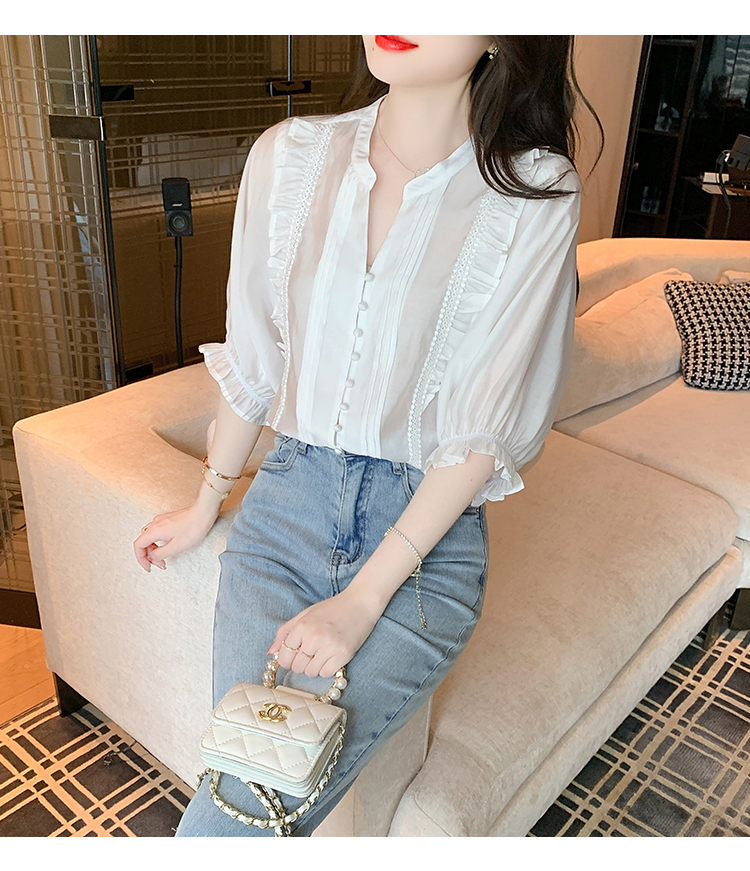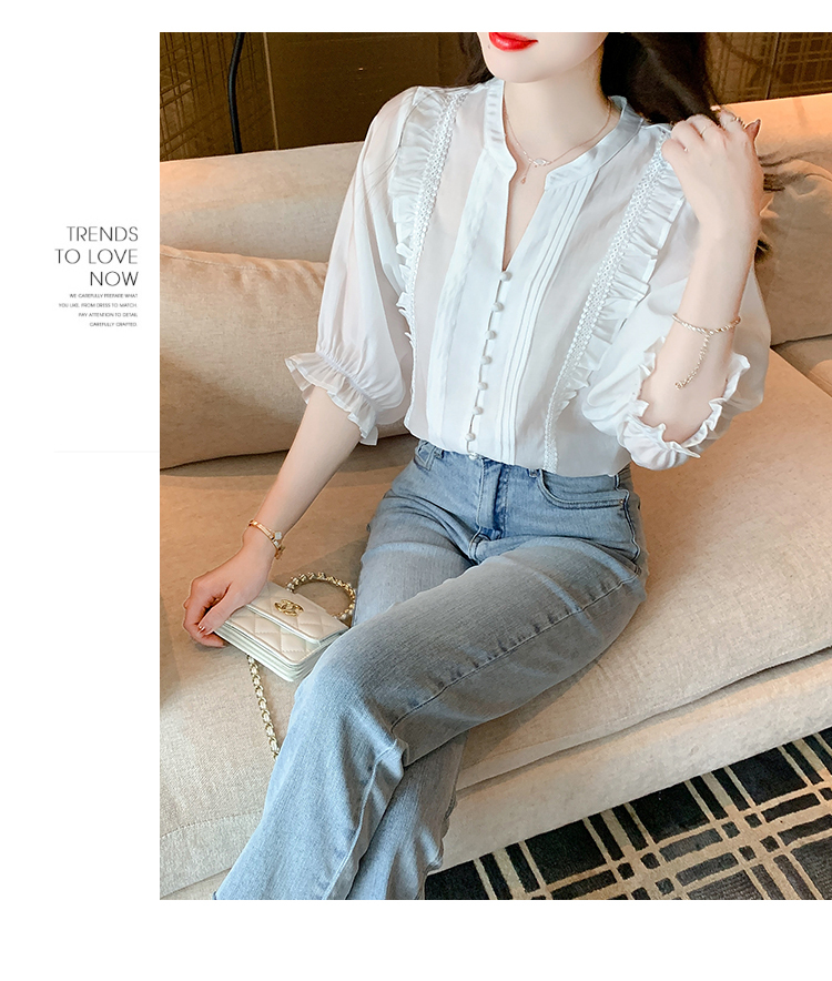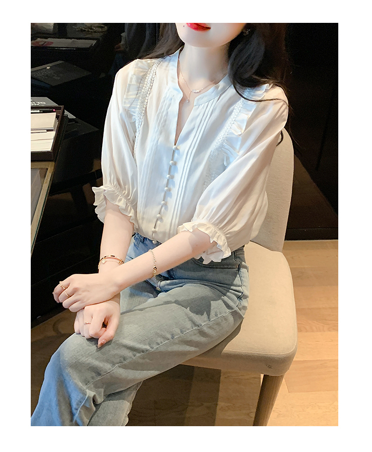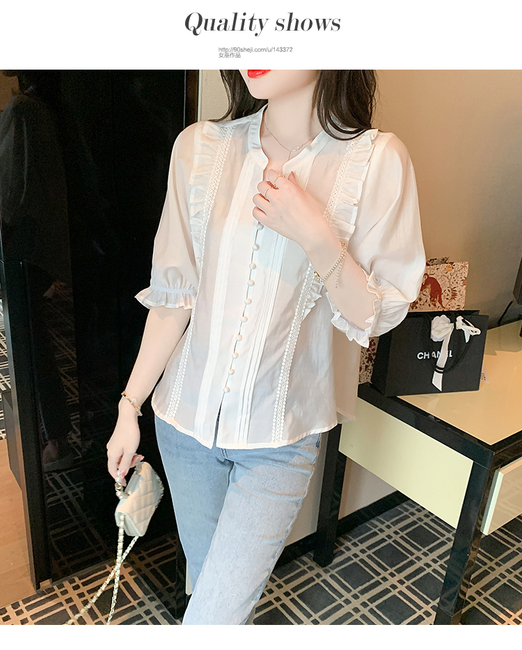 限量特惠|知性蕾絲刺繡荷葉邊雪紡衫(03H3108)